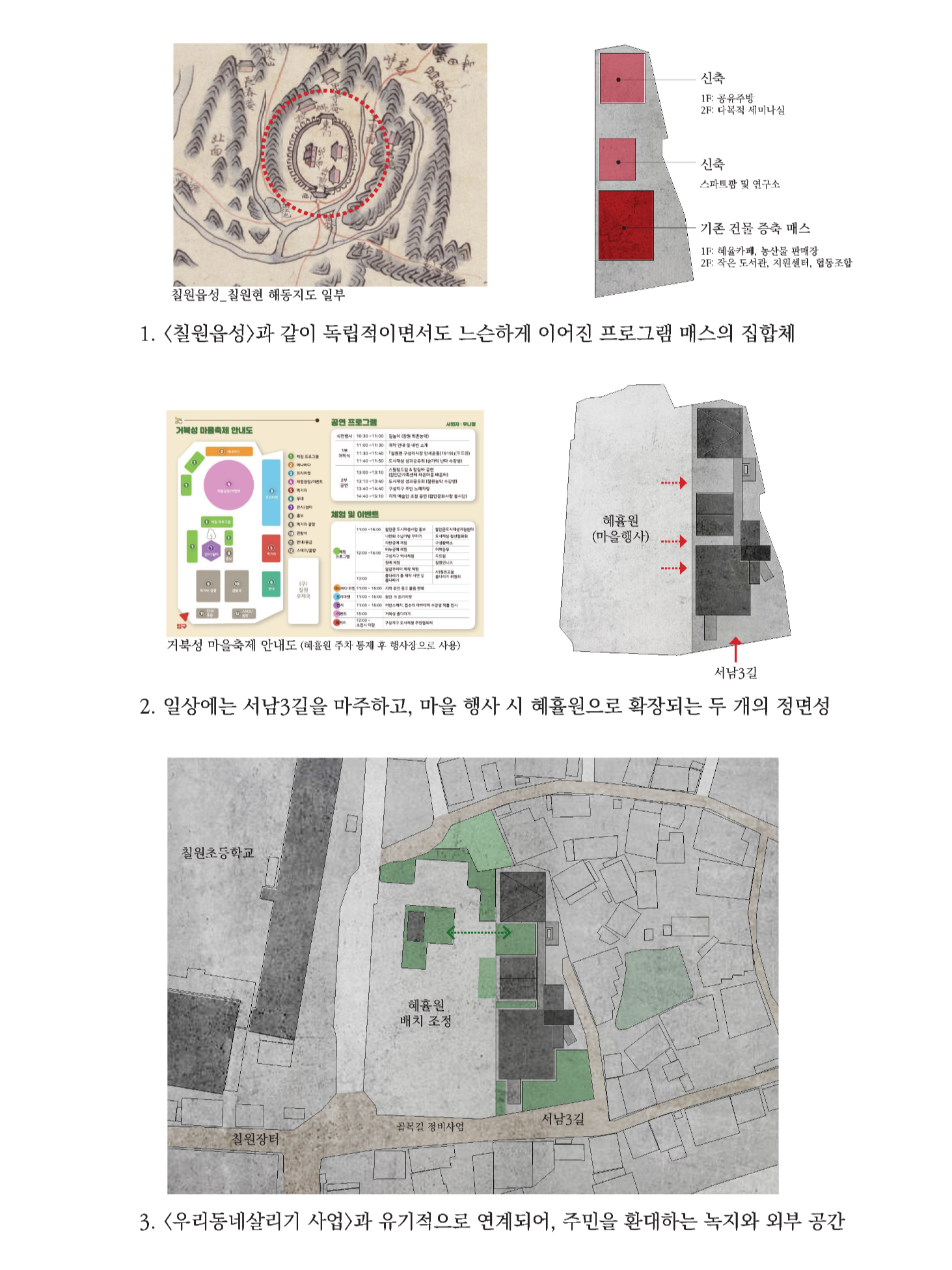 | 칠원 구성지구 도시재생사업(우리동네살리기) 혜휼당(커뮤니티센터) 조성사업 건축 설계공모_ 5등작 / 박희도 건축사사무소 (0) | 2025.09.08 |