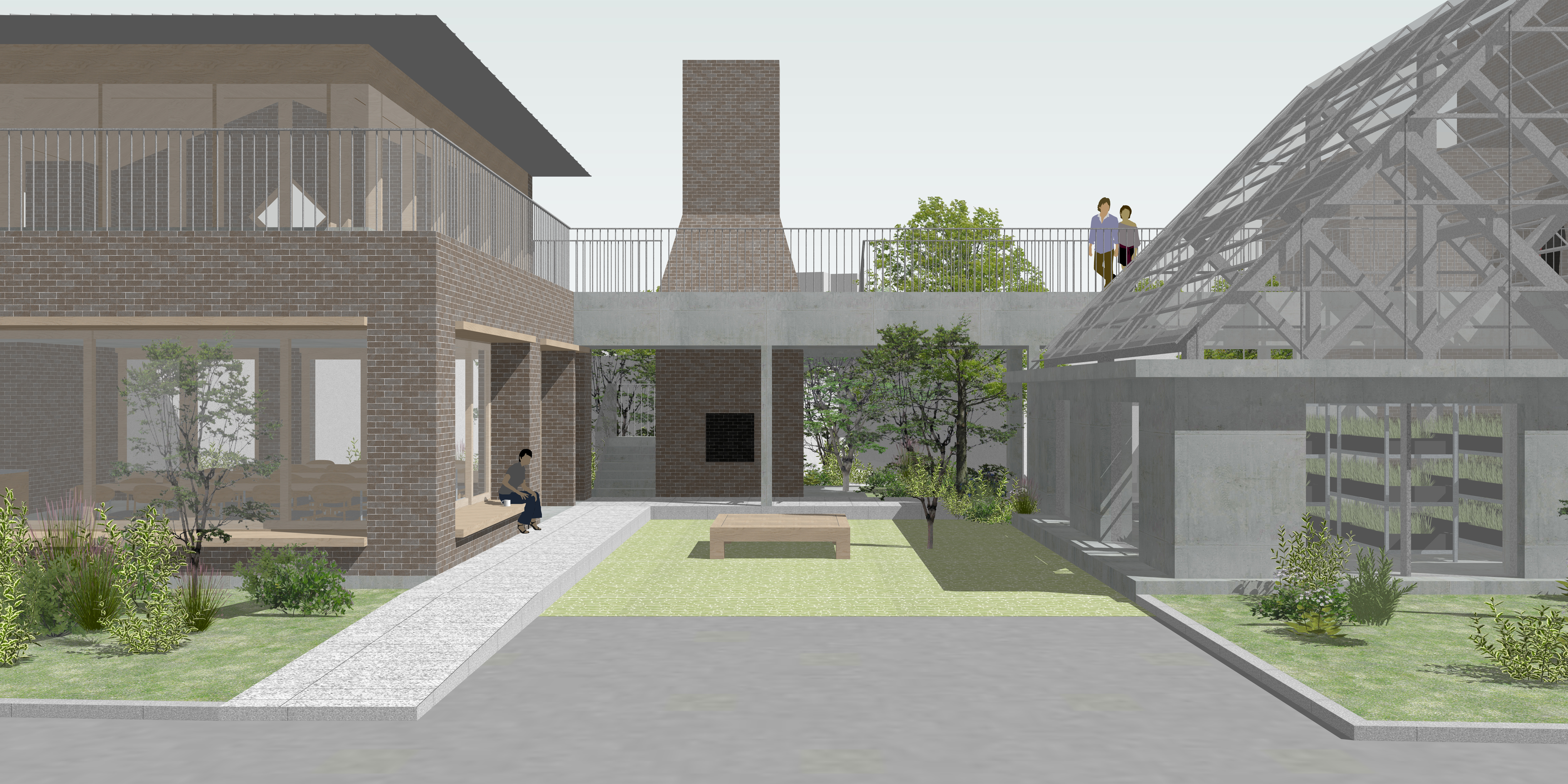 중심 외부 공간인 혜휼마당은 공유주방과 스마트팜과 연계되어 야외 식사나 행사 공간으로 활용된다. 화로는 고기나 고구마를 굽는 용도이자 브릿지의 구조를 겸하며, 공유주방 입면에는 벤치가 마련된다. 혜휼카페와 공유주방은 중앙의 스마트팜에서 재배된 과일과 채소를 활용한다. 1층의 내외부 공간은 독립적으로 구성되면서도, 조율된 창호를 통해 시각적으로 연결된다.