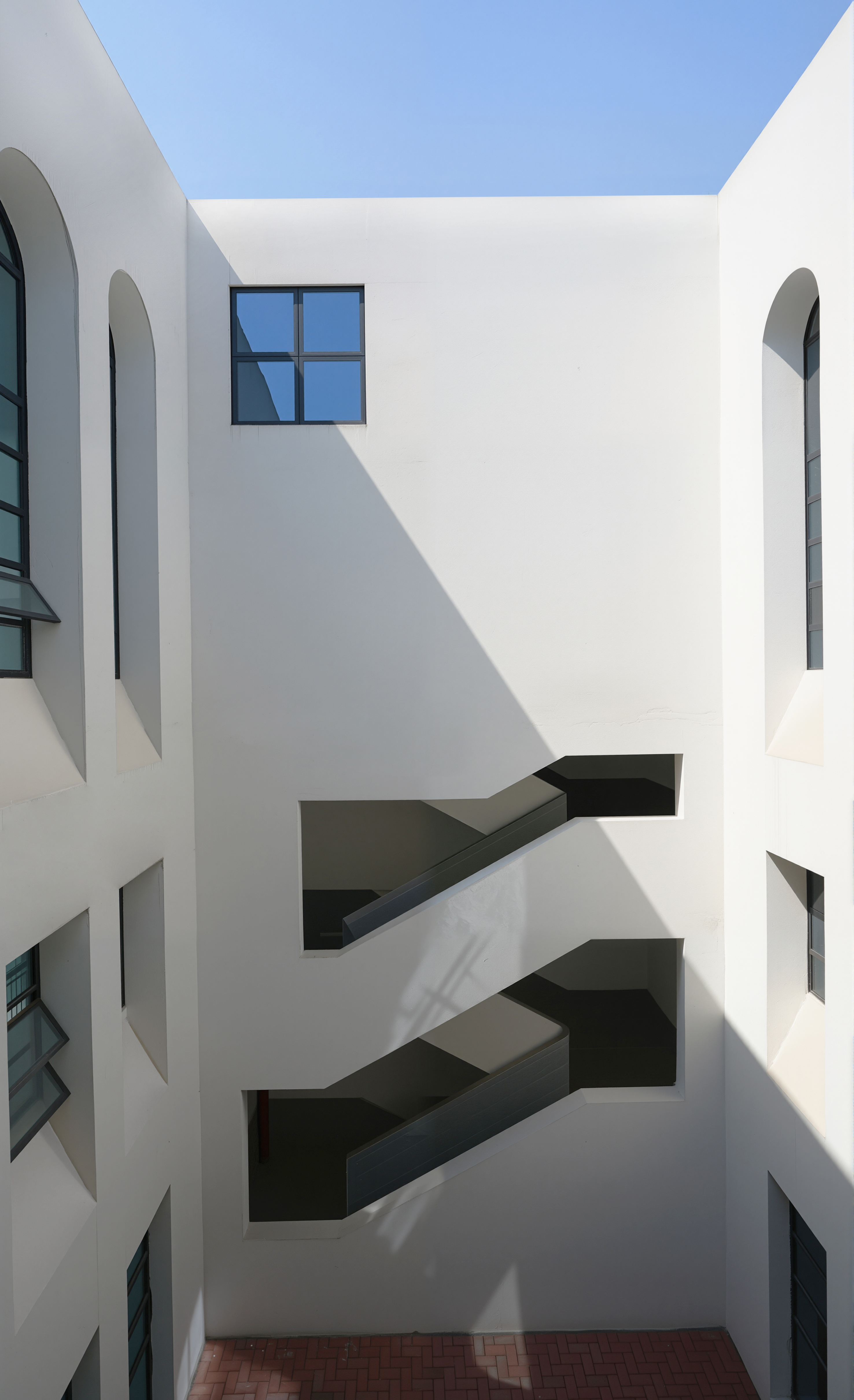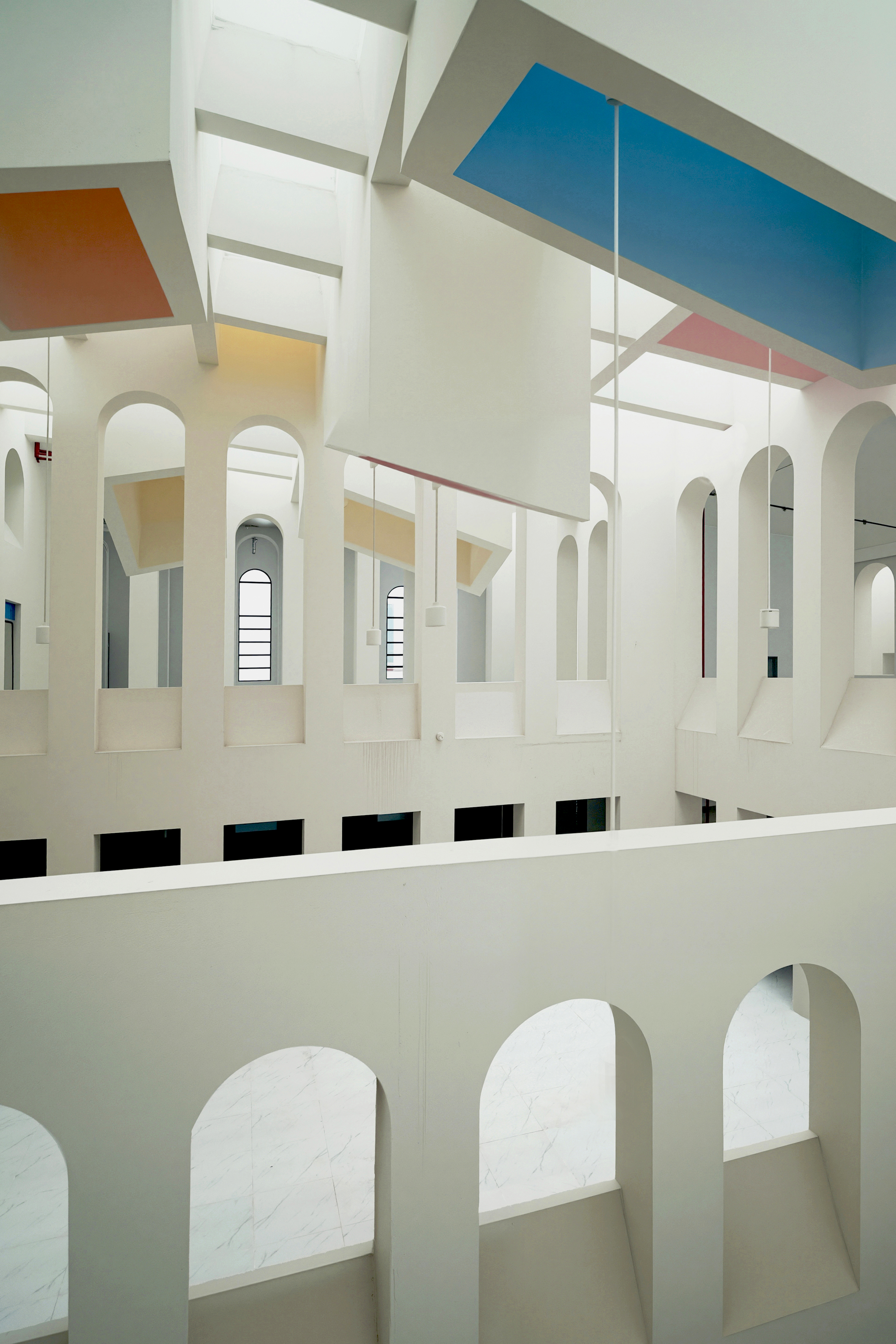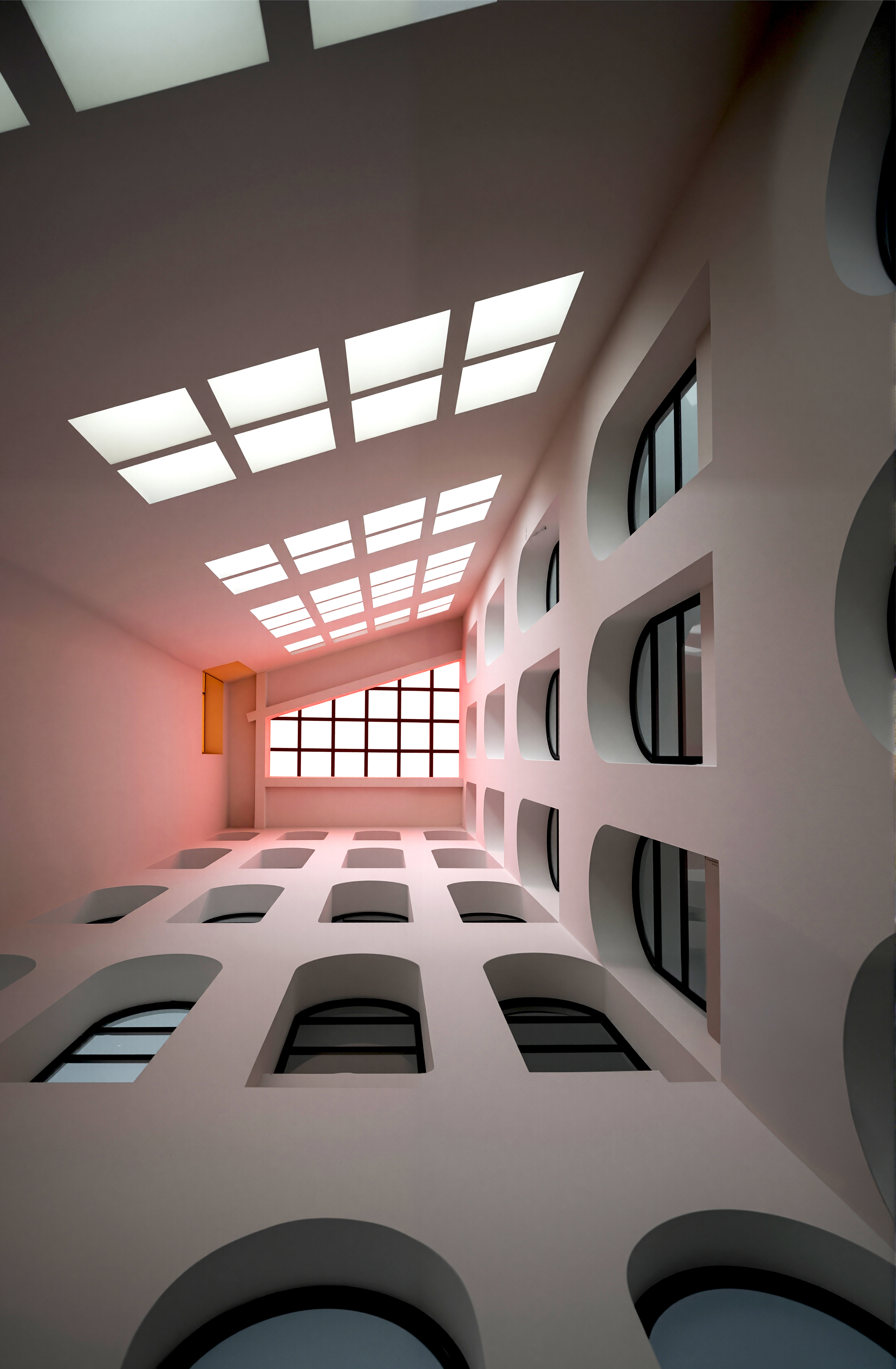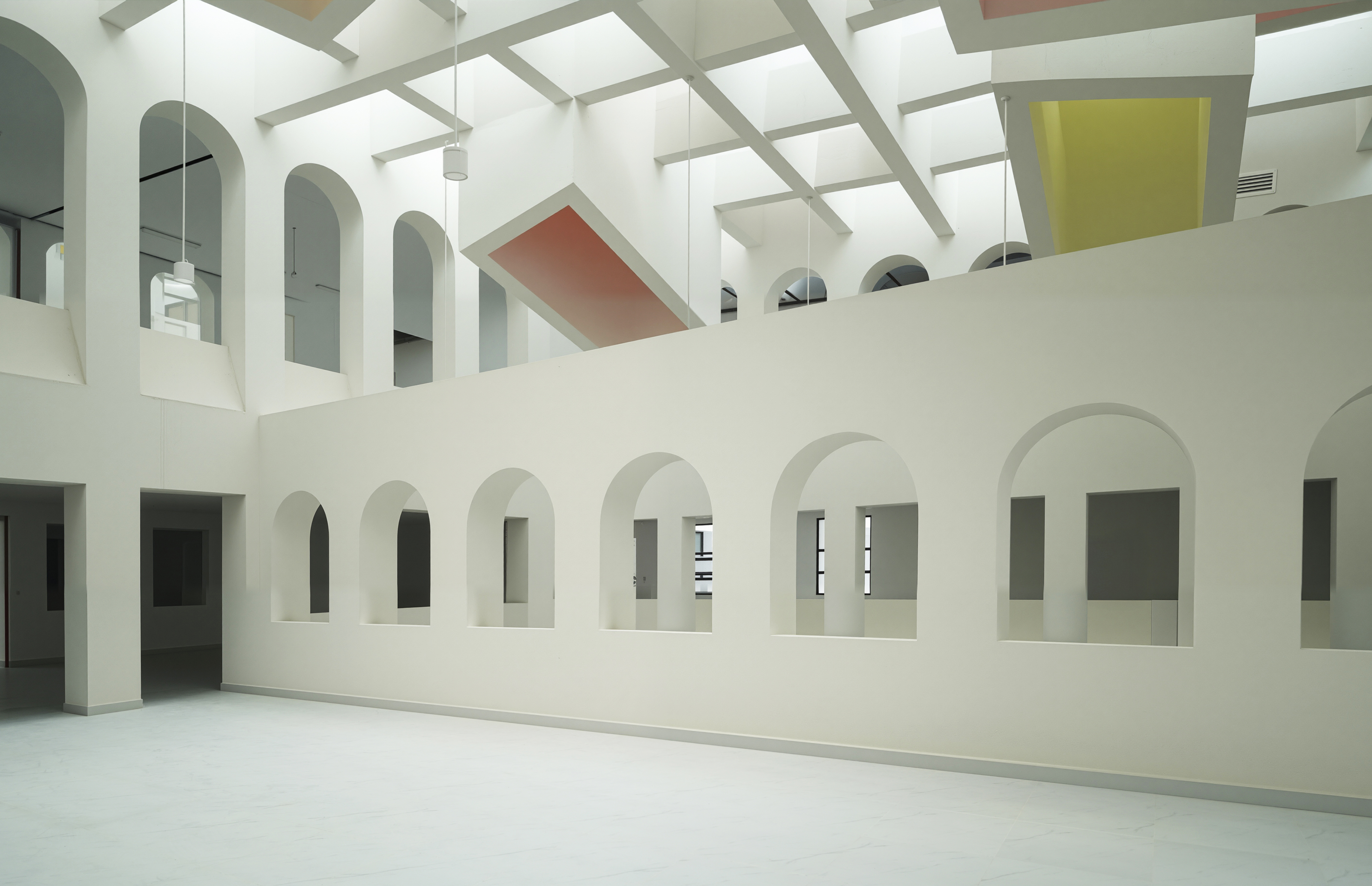 아치형 개구부가 중첩적으로 배치되어 시각적 네트워크와 다층적 원근감을 형성했다. 반복되는 개구부는 집단성과 개방성을 강화하는 동시에 사색의 순간을 유도했다.