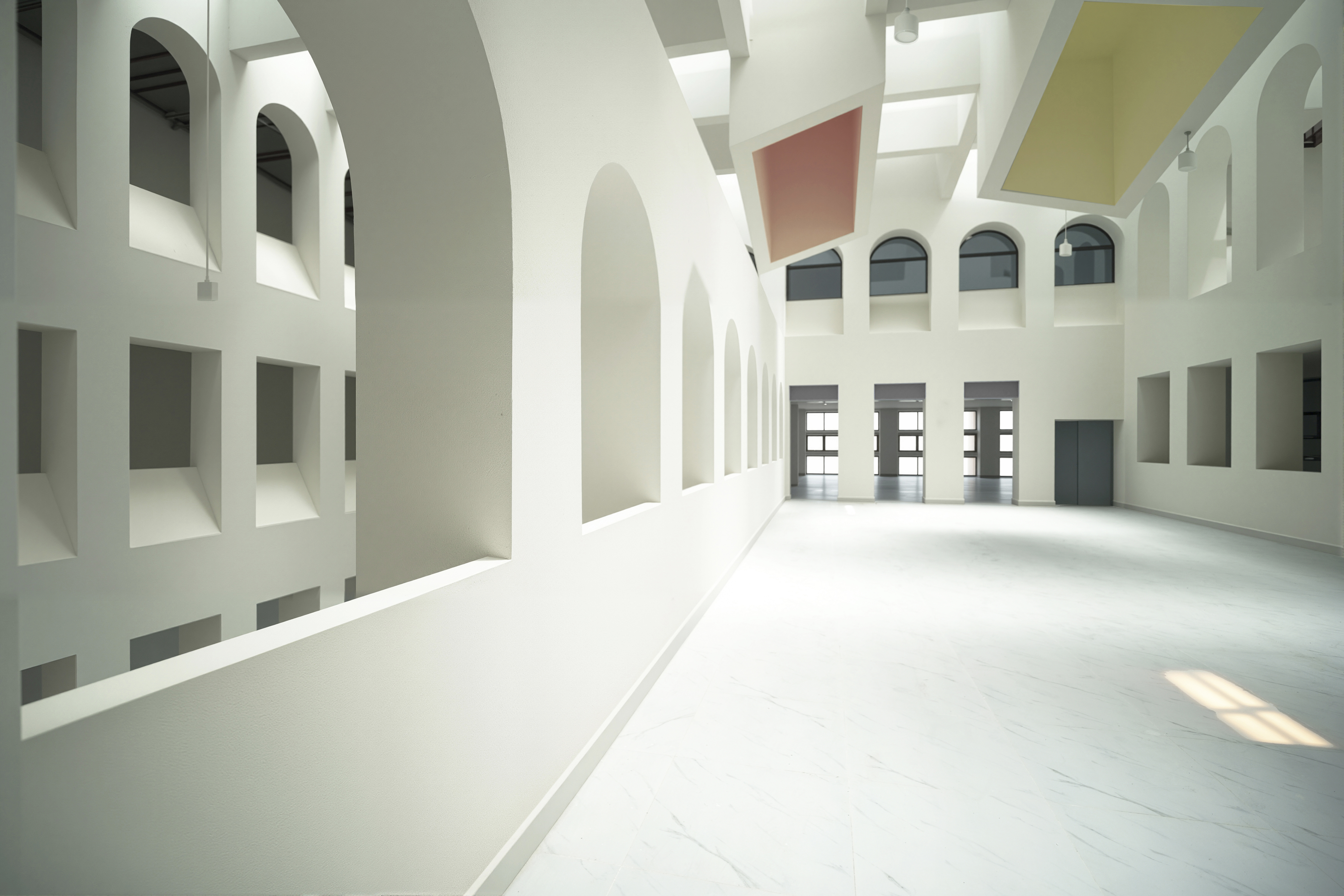 아치형 개구부가 중첩적으로 배치되어 시각적 네트워크와 다층적 원근감을 형성했다. 반복되는 개구부는 집단성과 개방성을 강화하는 동시에 사색의 순간을 유도했다.