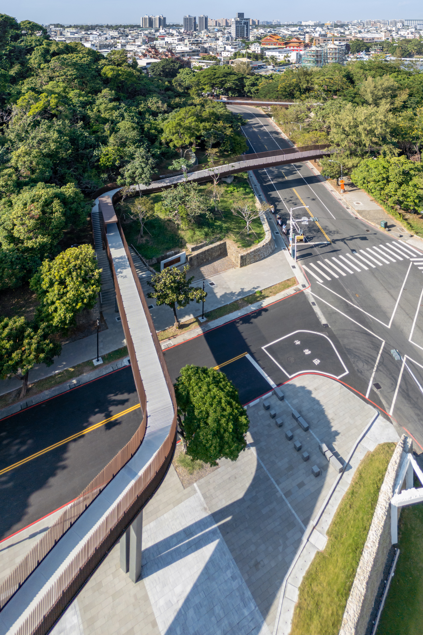 타이완에서 가장 오래된 성곽 도시인 구 펑산성은 200년이 넘는 사회경제적 변화를 품고 있으며, 이번 프로젝트는 그 유산을 존중하면서도 현대적 탐색 방식을 도입하고자 했다. 클라이언트의 재생 목표에 따라, 물리적·시각적 간섭을 최소화한 공중 산책로가 성벽을 따라 설치되었다. 이 산책로는 구간마다 다양한 조건에 대응하며 단일한 선형 구조 안에 복합적인 요소를 통합한다.