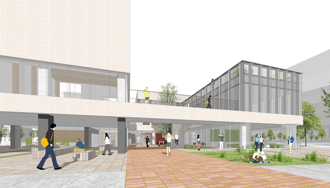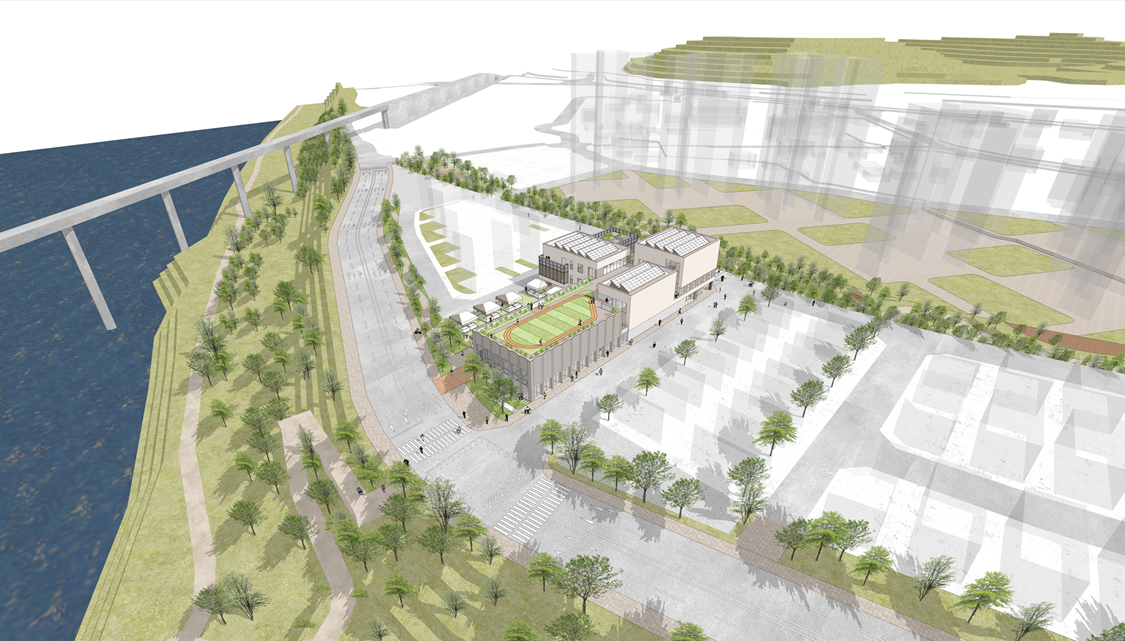 수평적 매스와 보행의 축은 건물 안팎을 관통하며 사람과 풍경을 자연스럽게 이어주고, 체육센터와 커뮤니티센터는 독립적으로 운영되면서도 공공공간과 중정을 통해 유연하게 연결된다.