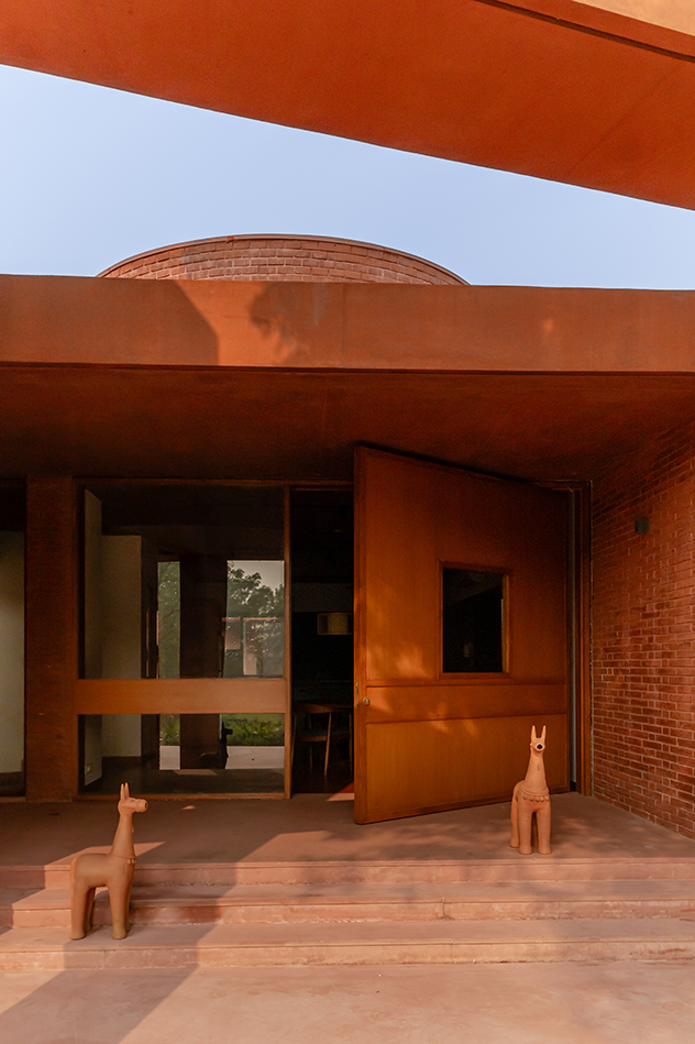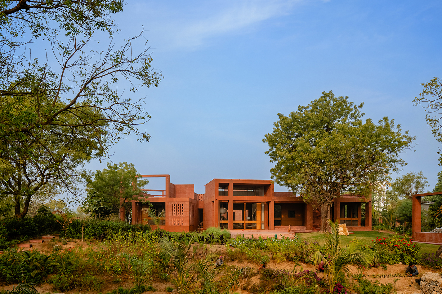 사브라마티강 근처의 완만한 언덕에 자리한 ‘알로아 힐 주말주택(Alloa Hills Weekend Home)’은 시골 지역의 마이크로파이낸싱 활동에 헌신해온 부부를 위한 안식처로 설계되었다. 바쁜 직업적 삶 속에서 자연과 다시 연결될 수 있는 장소이자, 작가, 예술가, 영화 제작자 등 창작자들이 머물며 영감을 얻을 수 있는 조용한 공간이다.