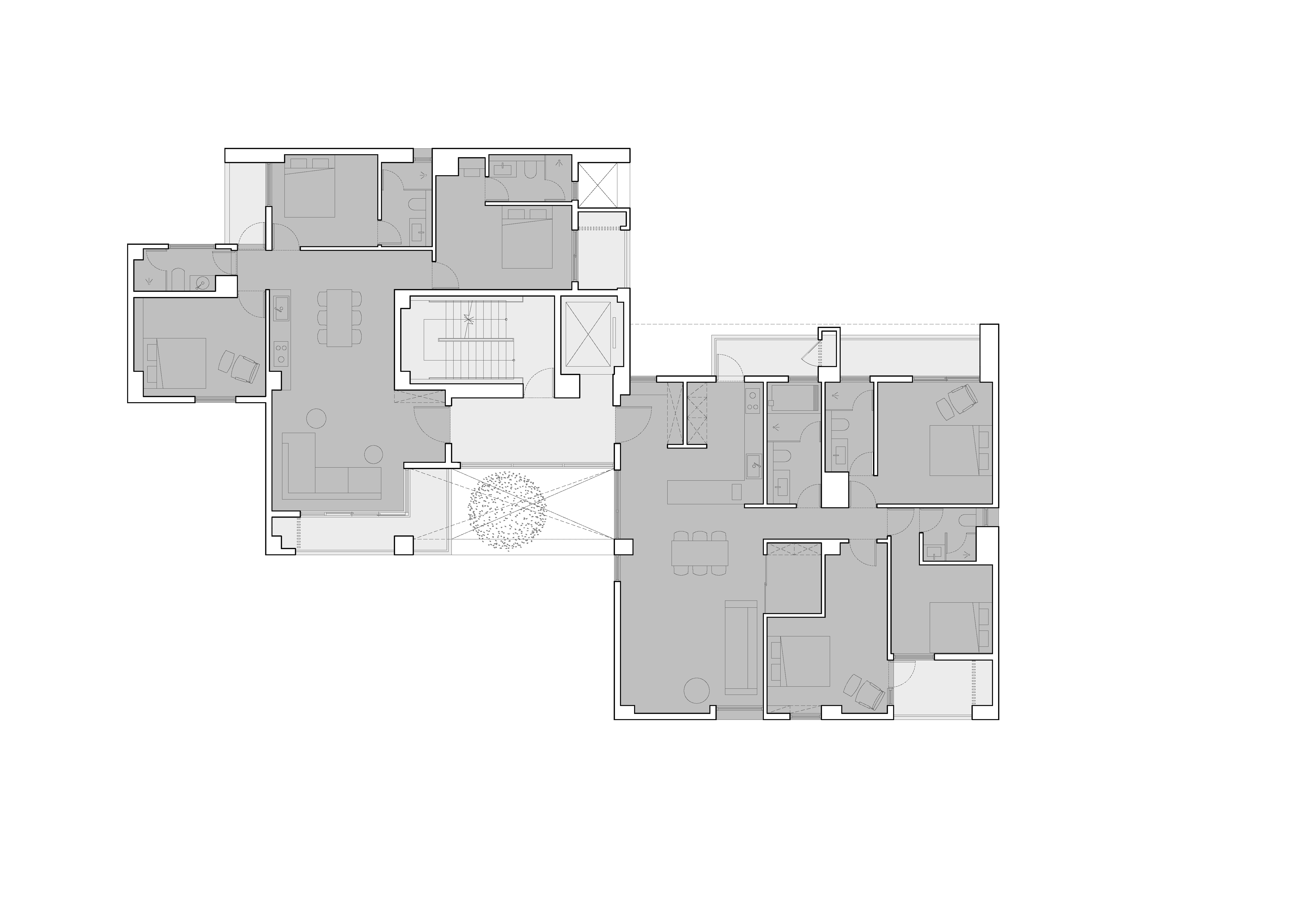 3층부터 6층까지는 유닛마다 다른 평면이 적용되었으며, 공유 계단실을 중심으로 전용 침실 공간은 거리와 골목 방향 양끝에 배치된다. 이는 각 세대가 도시와 관계 맺는 방식을 약간씩 다르게 구성하도록 유도하며, 특정한 ‘단독주택의 기억’을 새로운 집합주거 형식으로 재해석하려는 시도다.