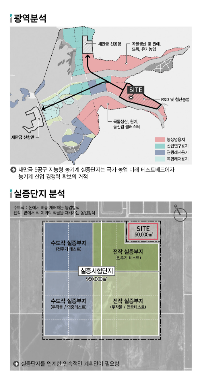지능형 농기계 실증단지는 새만금 5공구에 조성되는 농기계의 성능과 품질 경쟁력 확보를 위한 실증 인프라와 검정 시스템을 구축하는 사업으로, 자율주행 기반 지능형 농기계를 실제 농업환경에서 검증과 기술 고도화를 통한 실증단계의 효율성을 높여 다양한 산업분야로의 확장에 기여하고자 합니다.