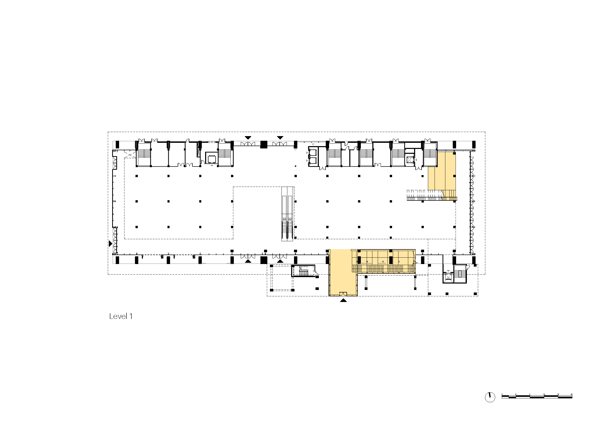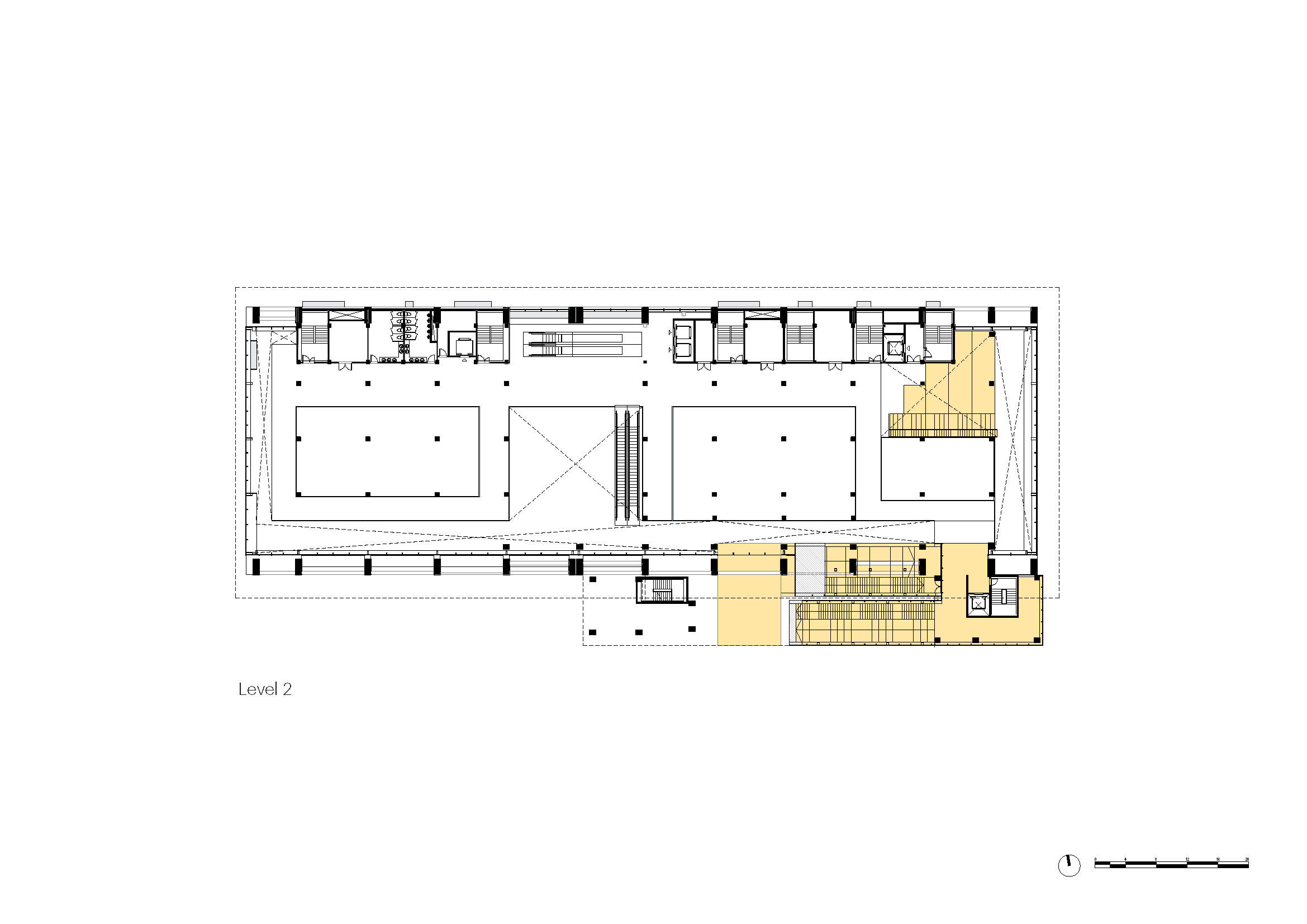 대형 사일로 건물 내부는 암벽등반 시설로 개조되었으며, 외부 오렌지색 경로를 따라 옥상과 1층 발코니로 이어져 시민들이 경관을 즐길 수 있는 전망대로 연결된다. 주변의 최근 미완성 건물들은 상점, 레스토랑, 호텔로 완성되었으며, 중립적인 파사드, 녹지 지붕, 야외 테라스를 통해 강변과 연결되는 공공 공간을 형성한다.