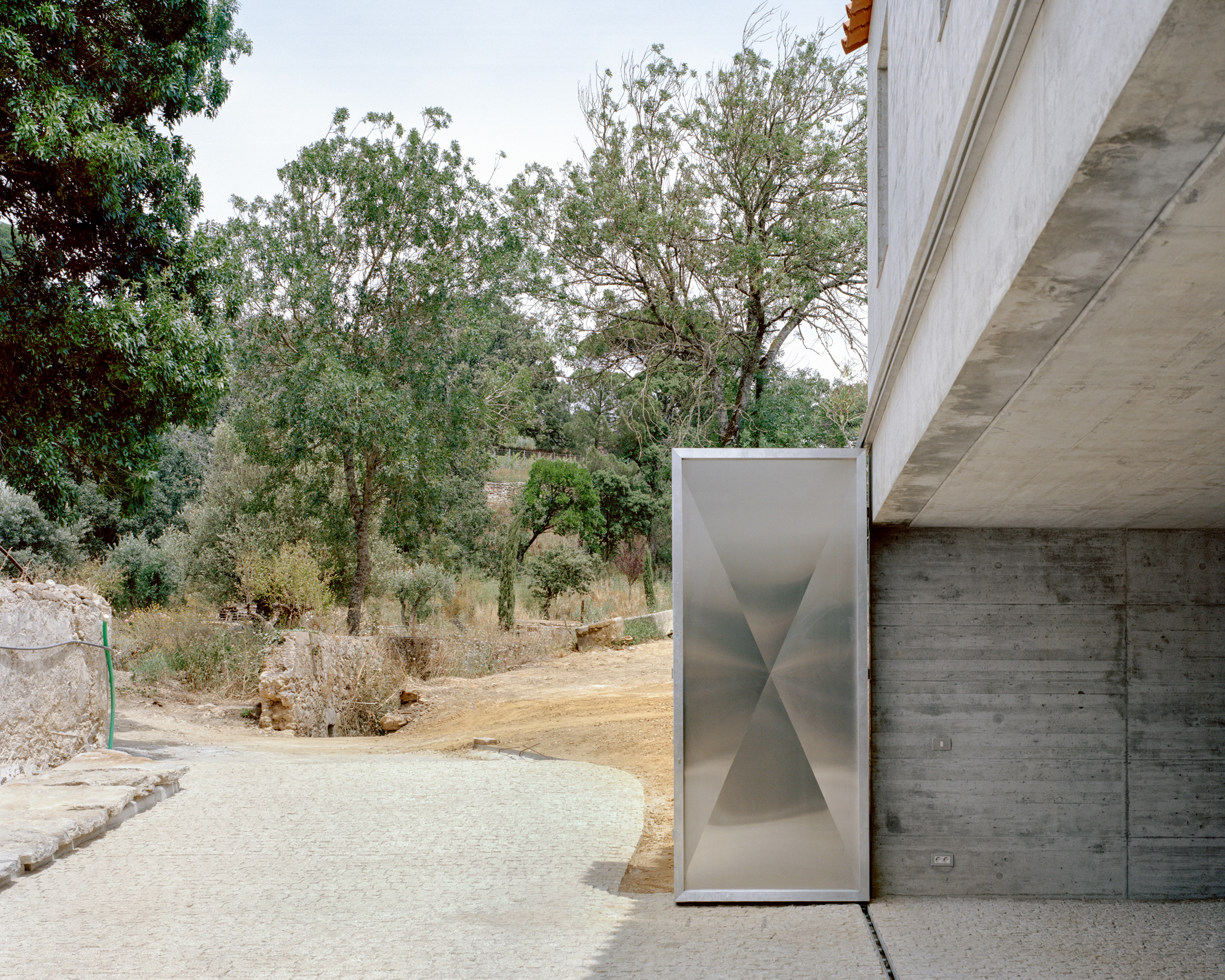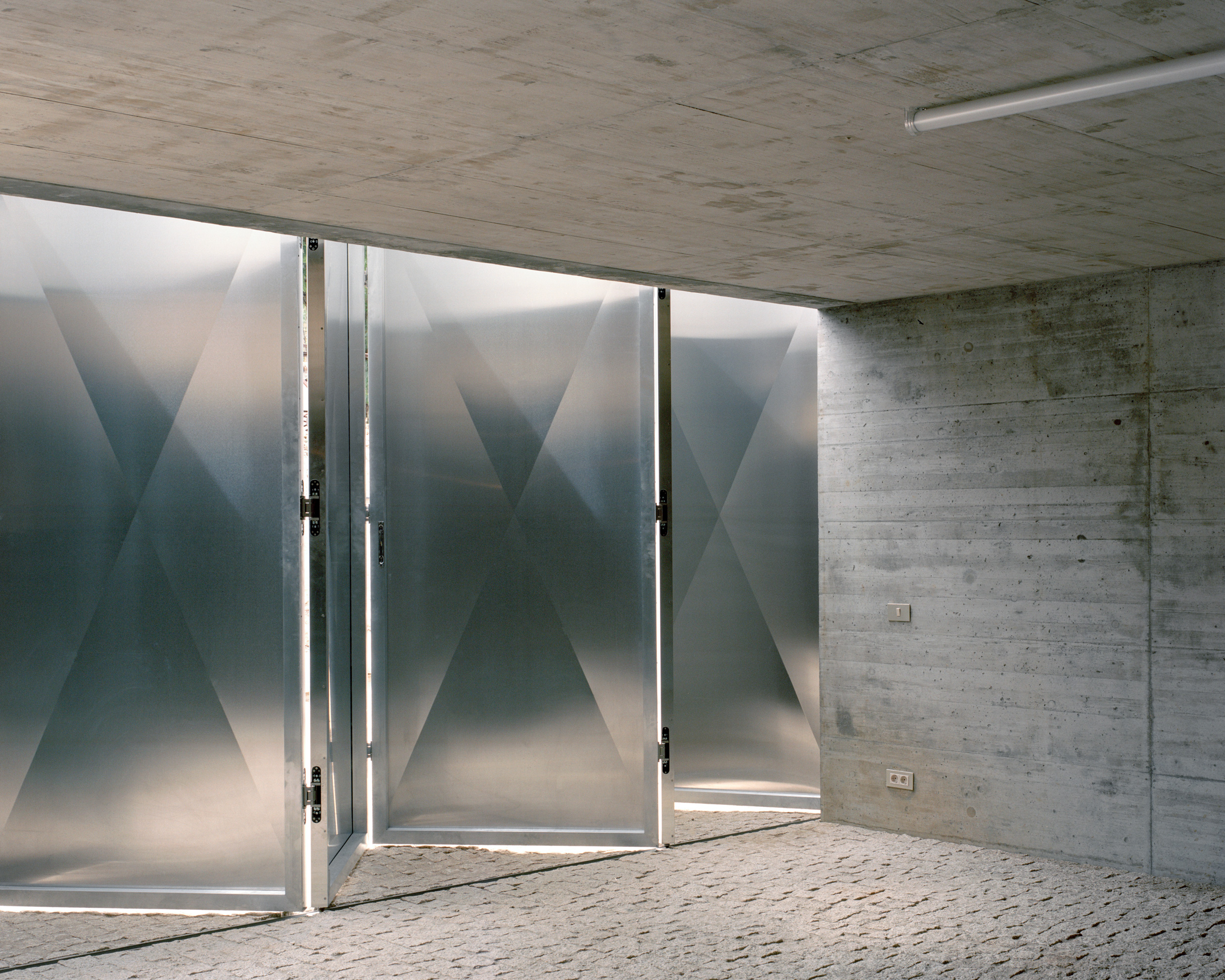 이 프로젝트는 농장 부지의 주요 차량 출입로 옆에 위치하며, 두 가지 목적을 가진다. 차량을 수용하고 농장 경비원의 거주 공간을 제공하는 것이다. 이 작은 건물은 원래 있던 보조 건물이 복구 불가능하게 무너져 이를 대체한다. 규정에 따라 건물의 바닥 면적, 전체 부피, 지붕 재료(세라믹 타일)는 이전 건물에서 계승된다. 하나의 지붕 아래, 이 부피에는 내부 연결이 없는 두 개의 독립된 요소가 각기 다른 층에 위치한다. 북쪽을 향한 개방형 차고와, 남쪽을 향한 단층 거주 공간이다. 정해진 부피 내에서 구조를 최적화하여 넓은 개구부를 가진 차고를 만들었으며 내부 기둥은 없다. 상층의 북쪽 전체 외벽이 보 역할을 하며, 측면 외벽이 양 끝을 지지한다. 이 자체 지지형 구조는 경량 목조 지붕 구조와 결합되어 있으며, 지붕 구조는 구조 자체와 남측 외벽의 스팬을 나누는 굴뚝에 의해 지지된다. 타일 지붕 외에도, 프로젝트는 굴뚝과 북쪽 창문과 같은 특징적인 요소를 포함하여 농장 내 다른 건물의 건축 언어와 연결된다. 북쪽 창문의 크기는 부지 내 다른 주택과 동일하게 맞추어졌다.