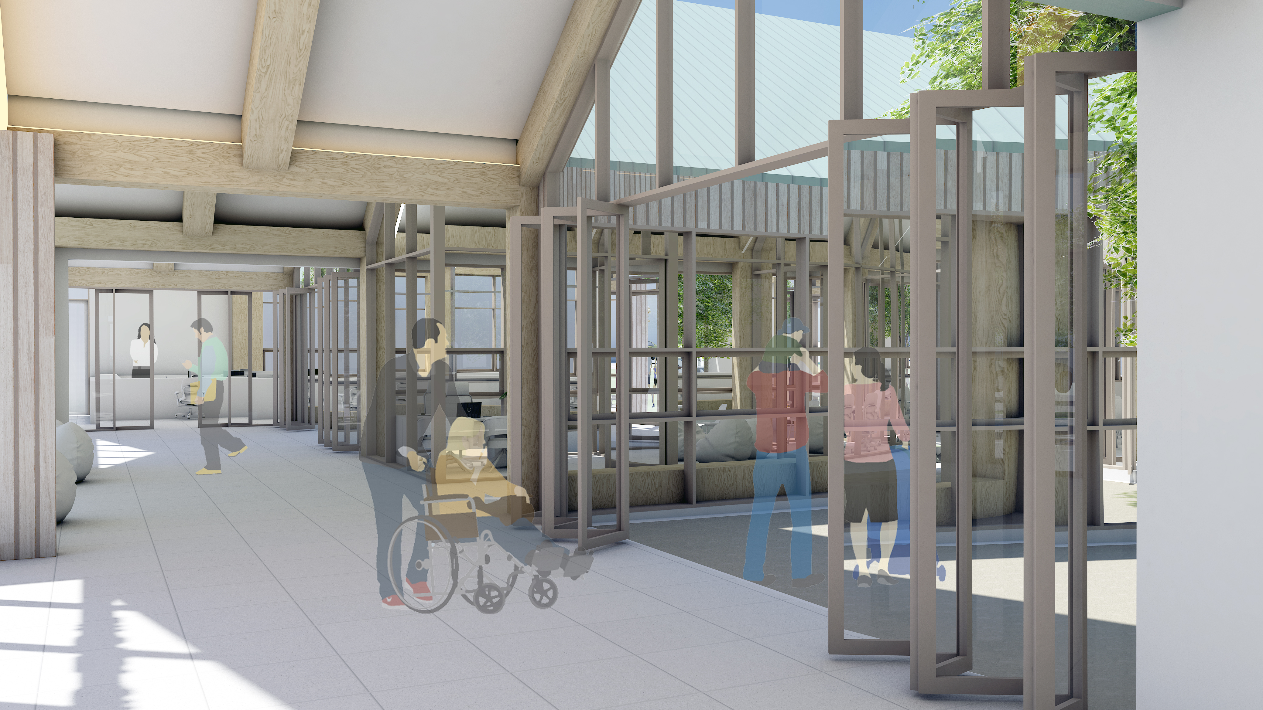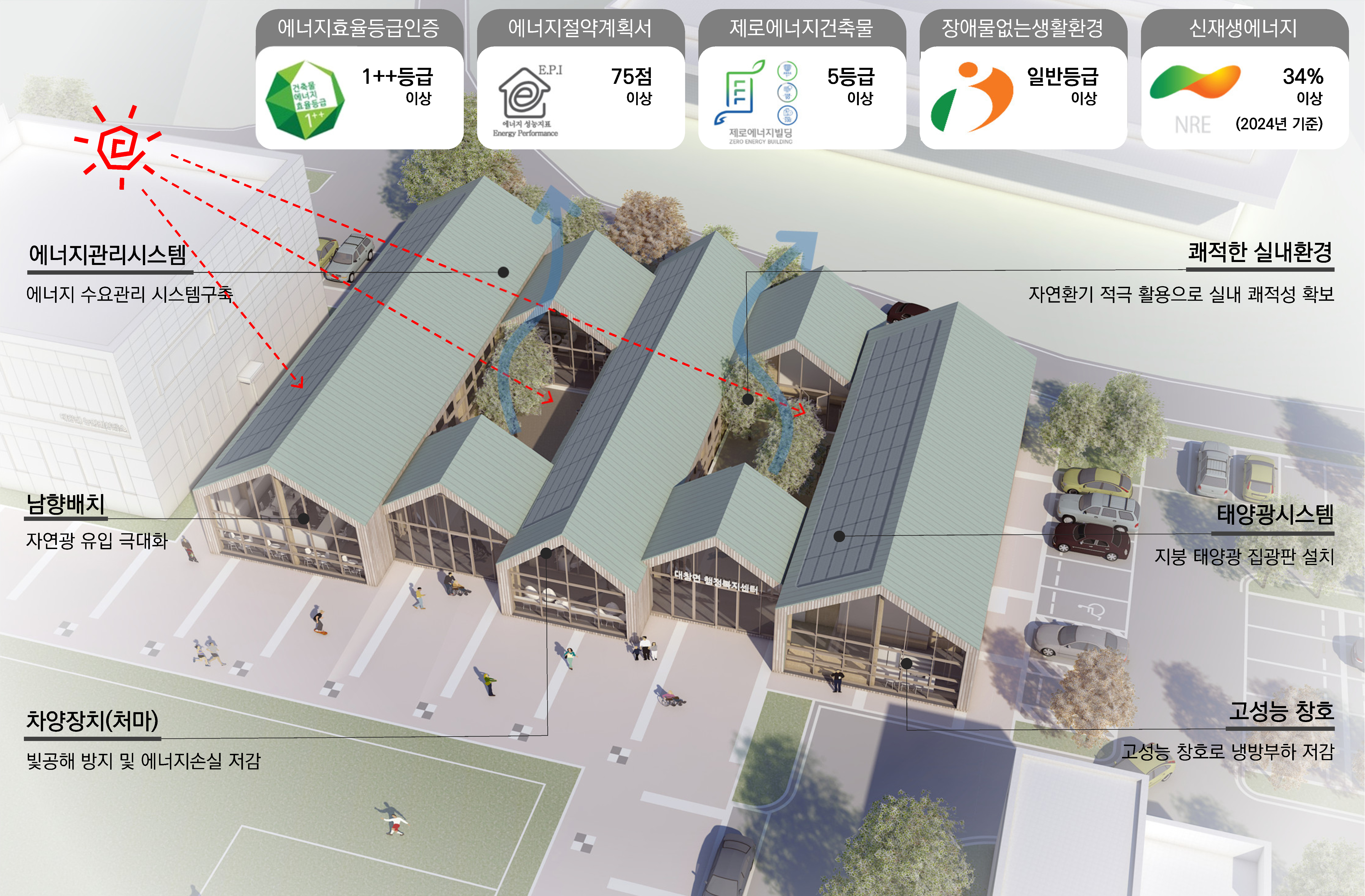 아이에서 어르신까지 모두가 편히 드나들 수 있도록 단층 구조로 계획된 행정복지센터는 누구에게나 열려 있는 수평의 길을 제안한다. 경계를 낮춘 공간은 서로의 시선을 맞닿게 하고, 모임과 휴식, 생활과 업무가 자연스럽게 이어진다. 전통의 공간 질서를 현대적으로 계승한 이 행정복지센터는 대창면의 과거와 현재, 그리고 미래를 아우르는 새로운 중심으로서, 사람과 자연, 세대와 세대를 이어주는 따뜻한 품이 되고자 한다.