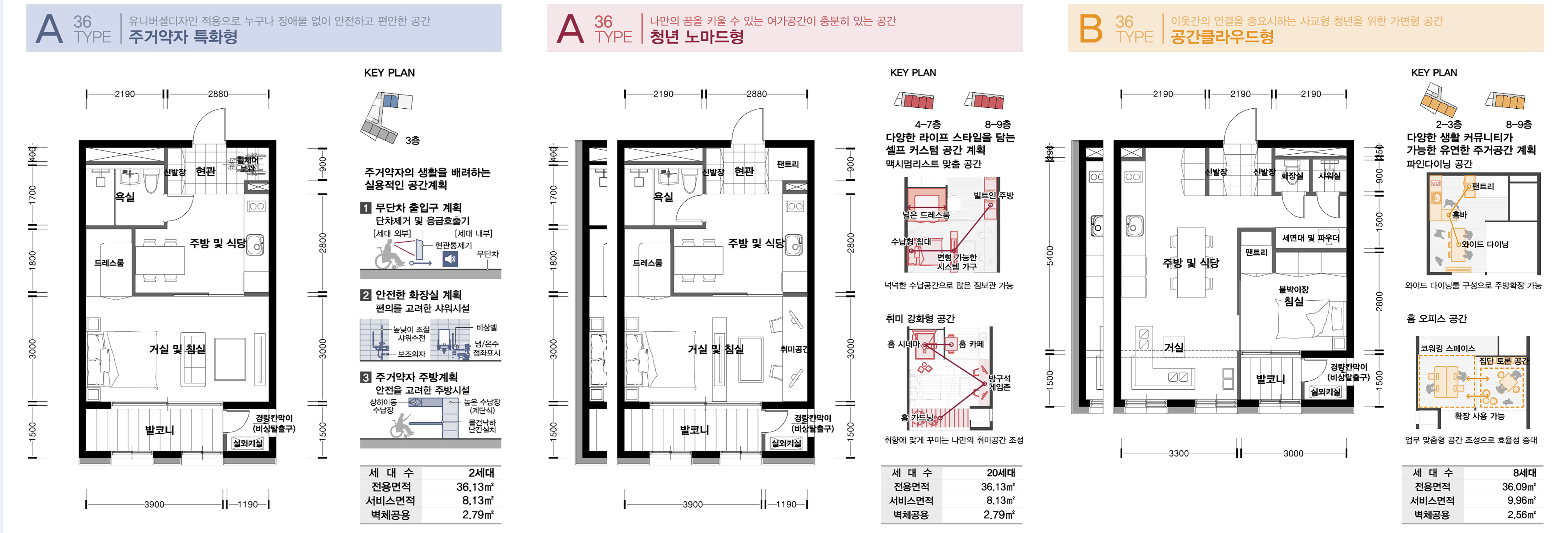 청년들의 다양한 주거 취향(취미, 소통, 자기개발 집중형)과 라이프 스타일을 반영한 주거공간 계획 및 사람, 자연, 사회와 Mingle(어울리다) 할 수 있는 커뮤니티 중심공간(도시의 숲, 커뮤니티 데크) 조성으로 경계없이 이웃과 소통하고 성장하길 바라며 합천군의 청년 맞춤형 공공 주거 공간을 제안하고자 합니다.