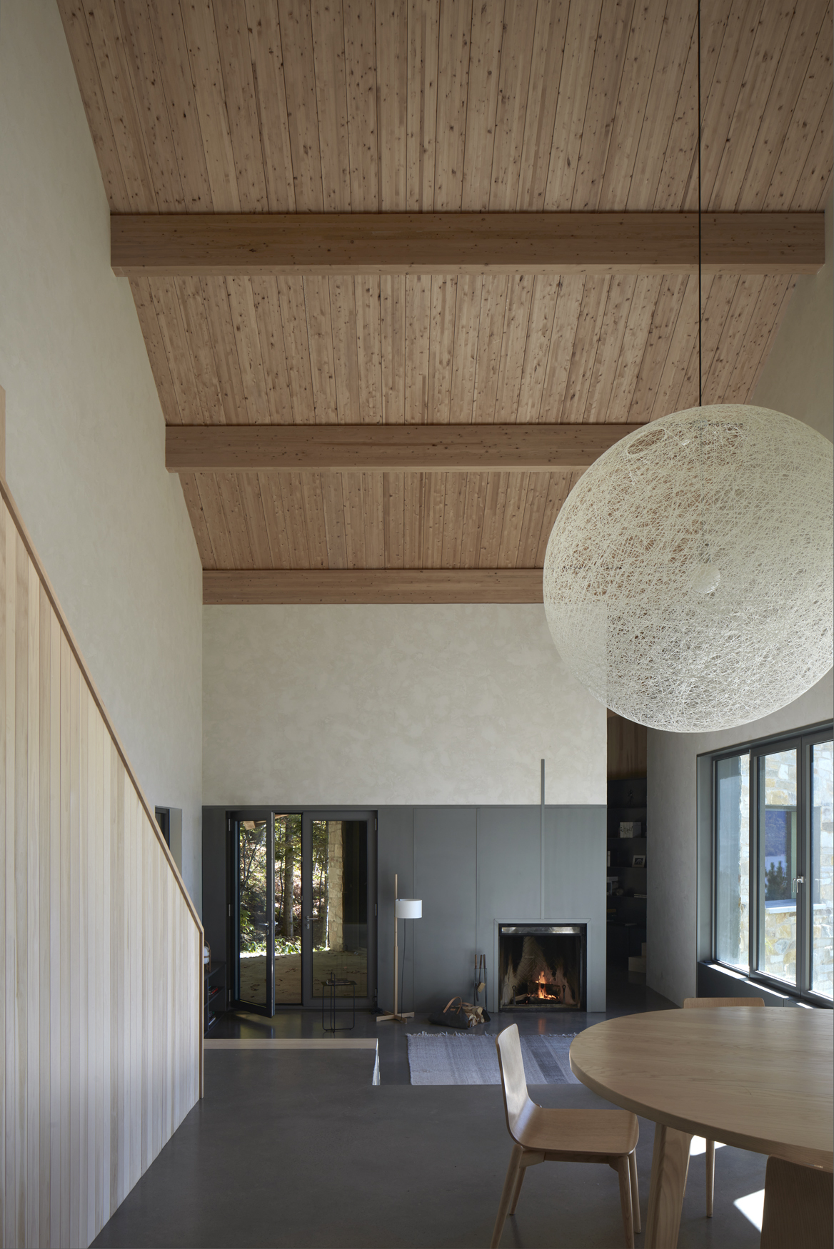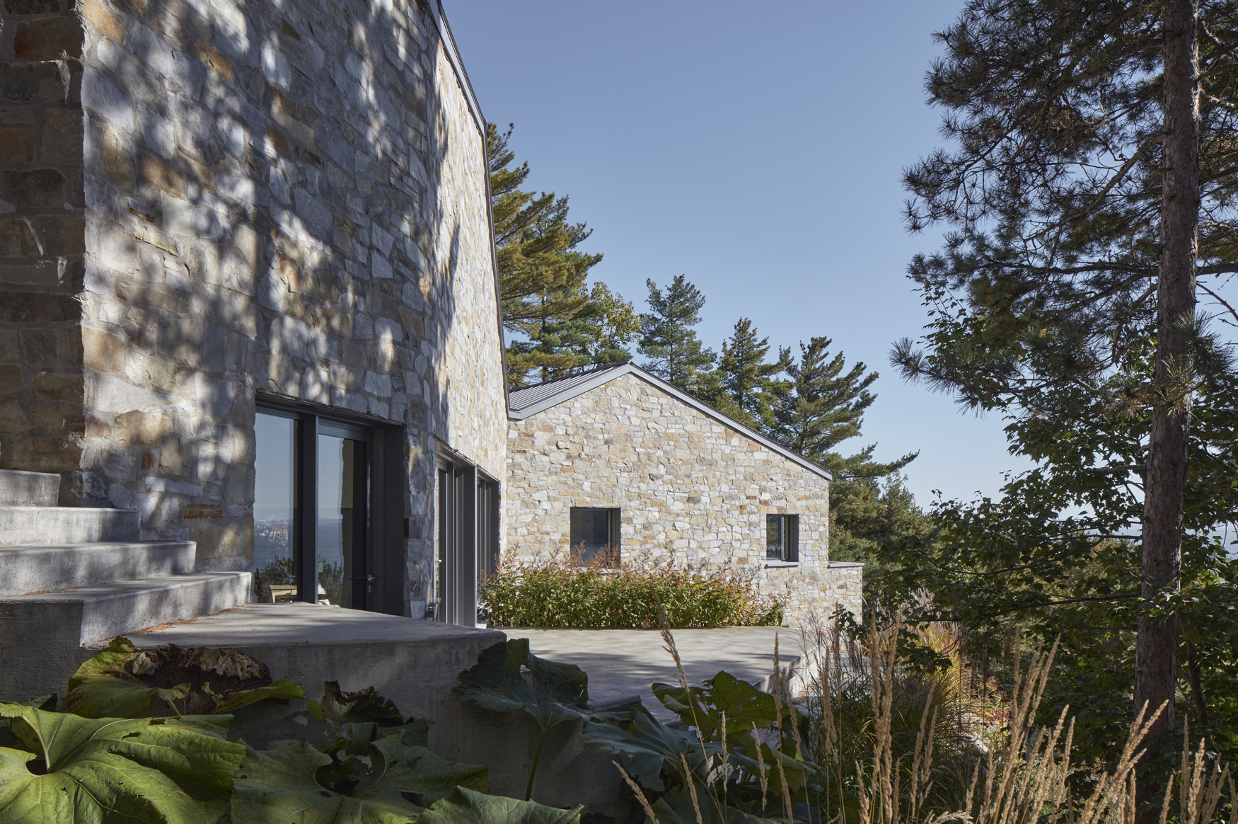 건물은 다양한 크기와 형태의 생활 공간으로 분절되며, 강력한 지형성과 관계 맺는다. 세인트 로렌스 강을 향한 대형 파노라마 테라스는 주요한 조망 지점을 형성하지만, 동시에 다른 외부 공간들도 내부에서 직접 연결된다. 이로써 감각적 체험이 단일 경관에 종속되지 않고, 절벽이라는 불안정한 대지와 적극적인 상호작용을 이끌어낸다.