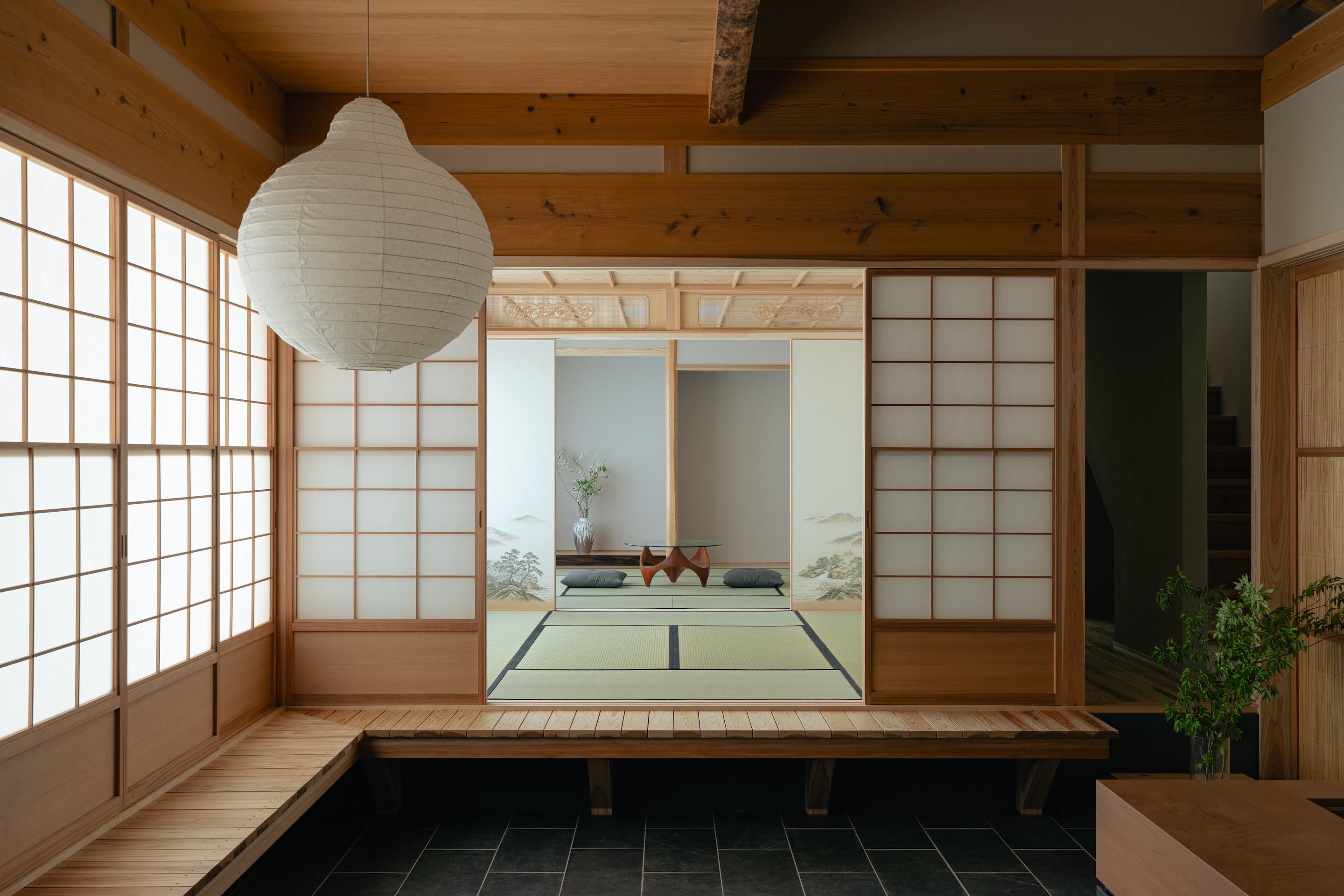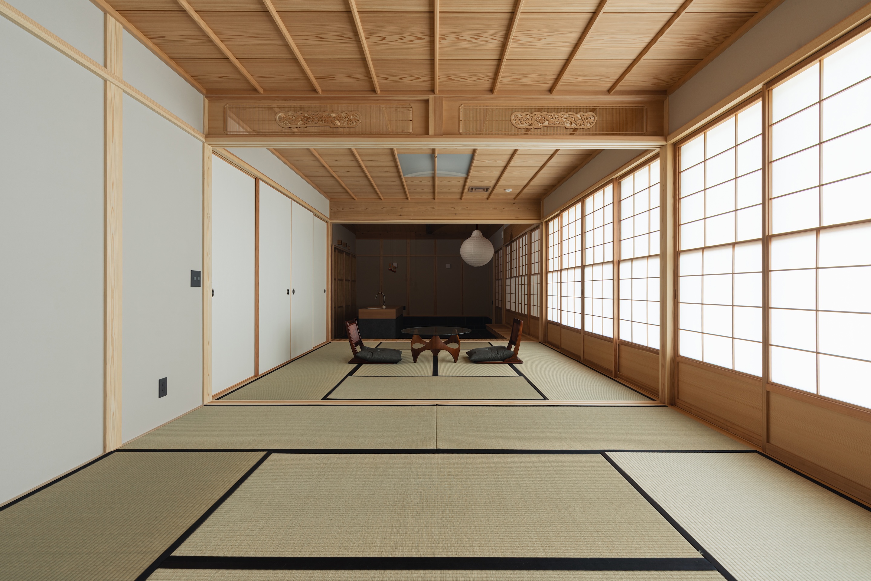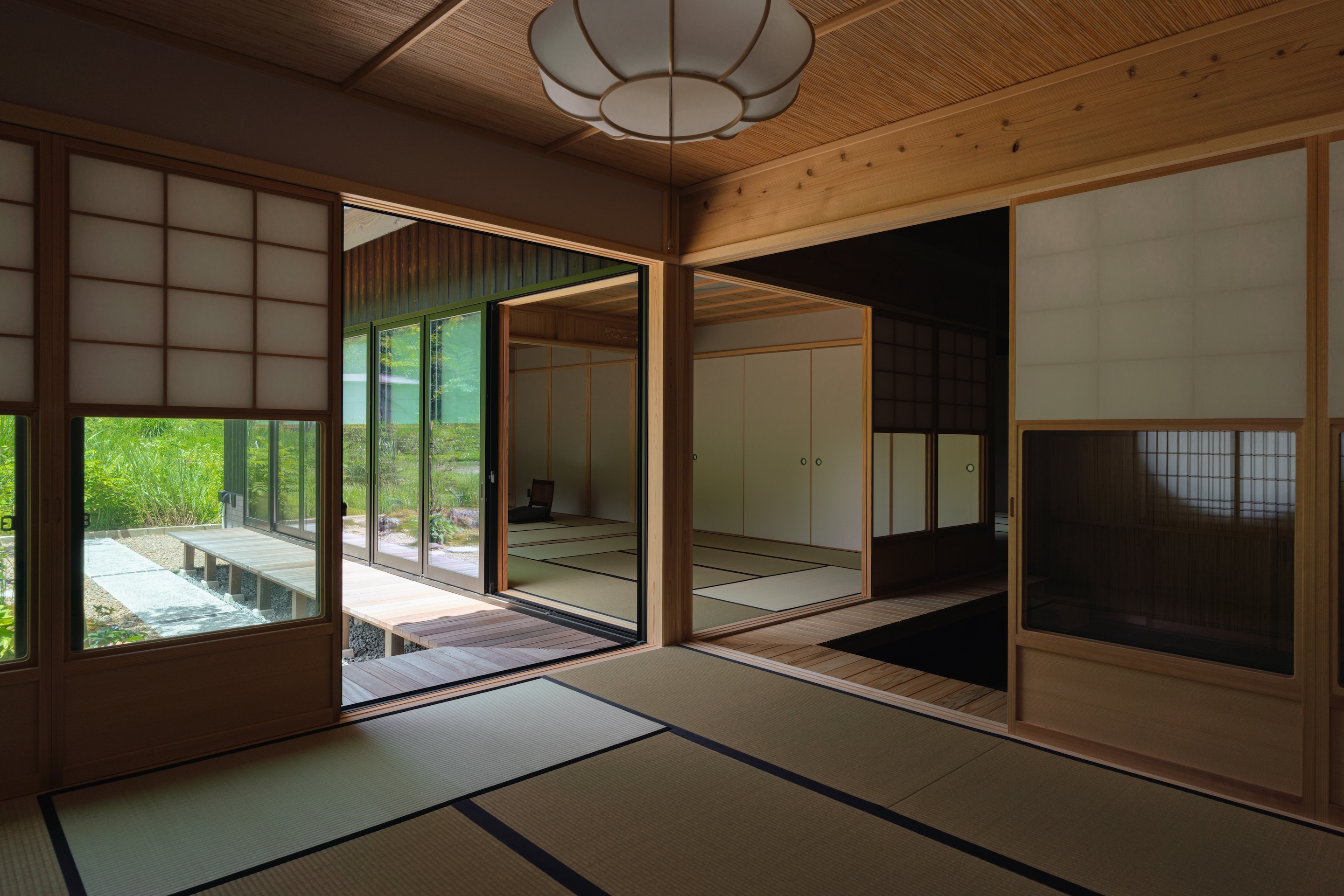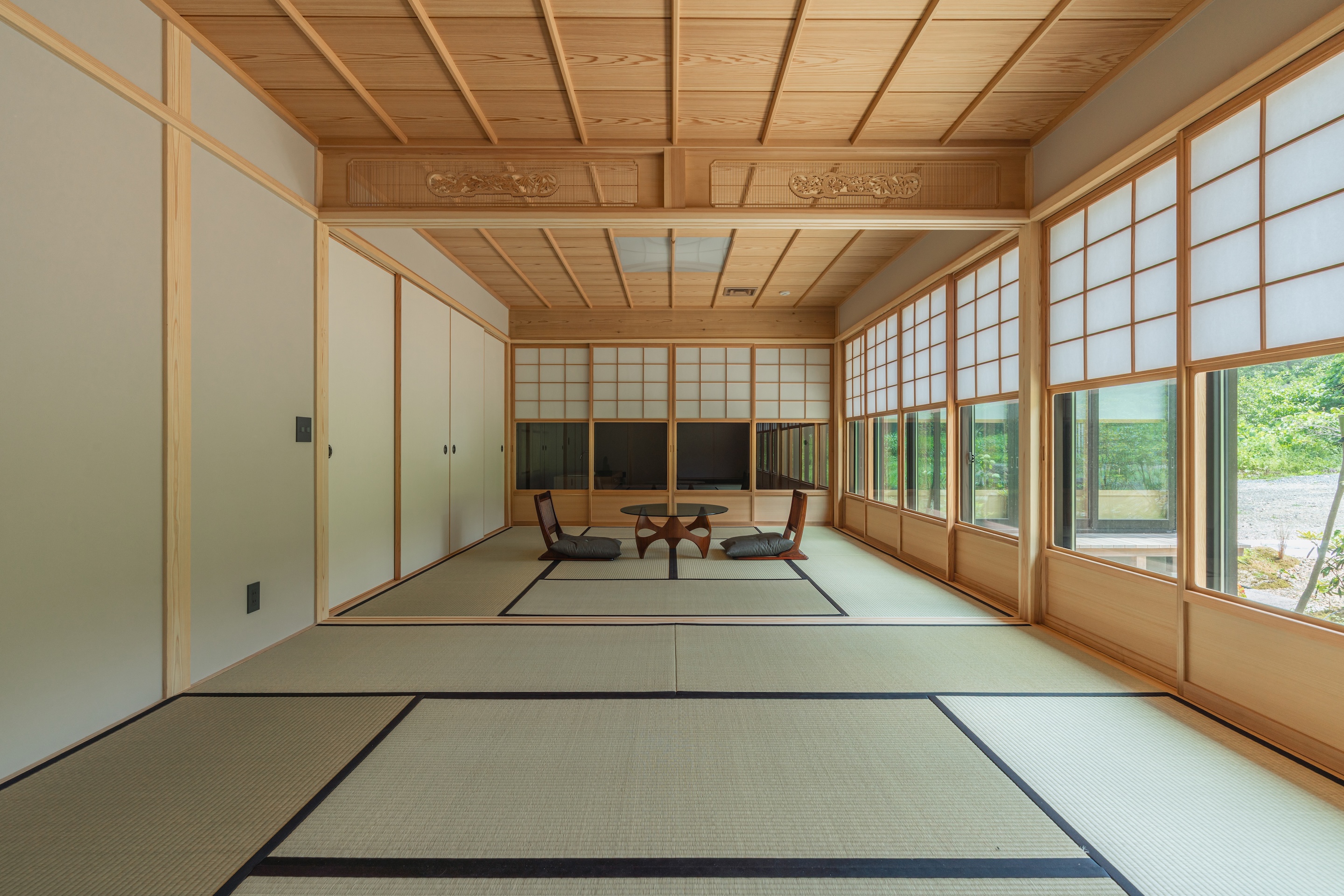 일본 전통 건축은 다다미 방과 쇼지, 후스마를 활용해 공간의 쓰임과 외부와의 관계를 유연하게 조절했다. 이 건물은 그러한 유연성을 계획에 담아, 다수의 손님을 수용하거나 계절과 생활 방식에 따라 다양한 용도로 대응할 수 있도록 했다.