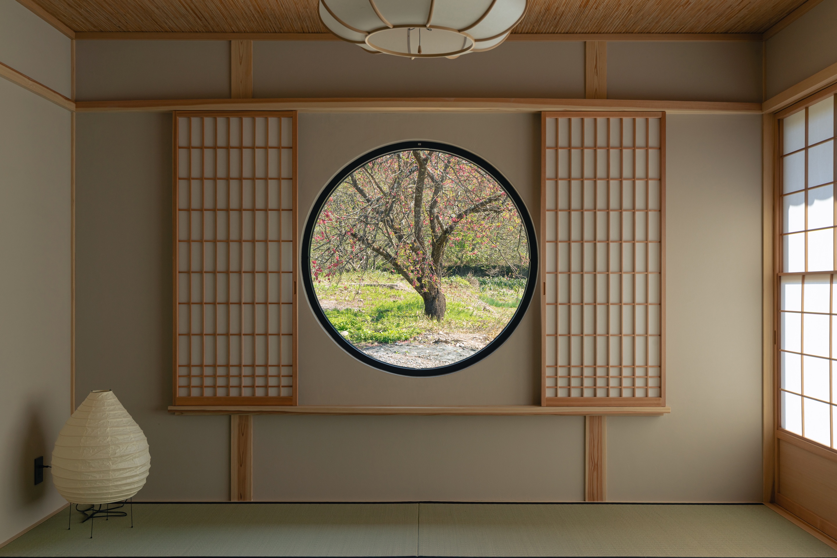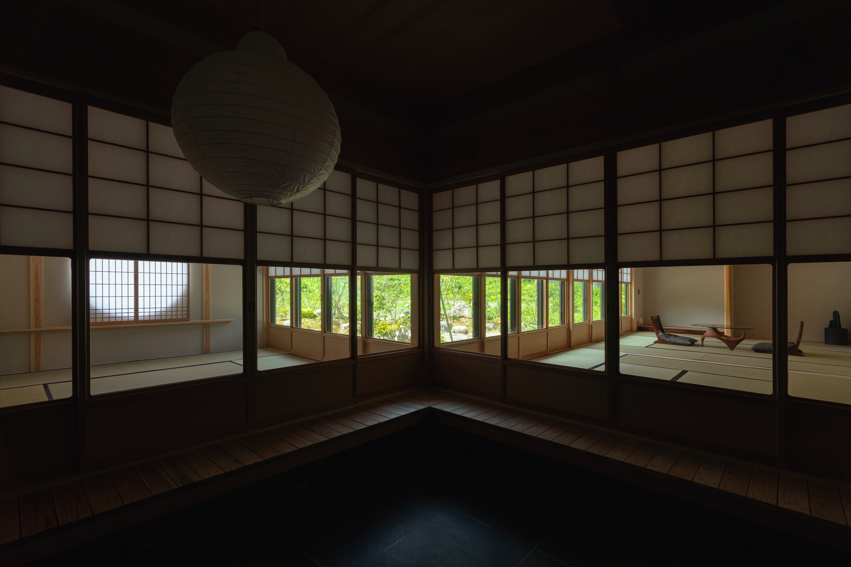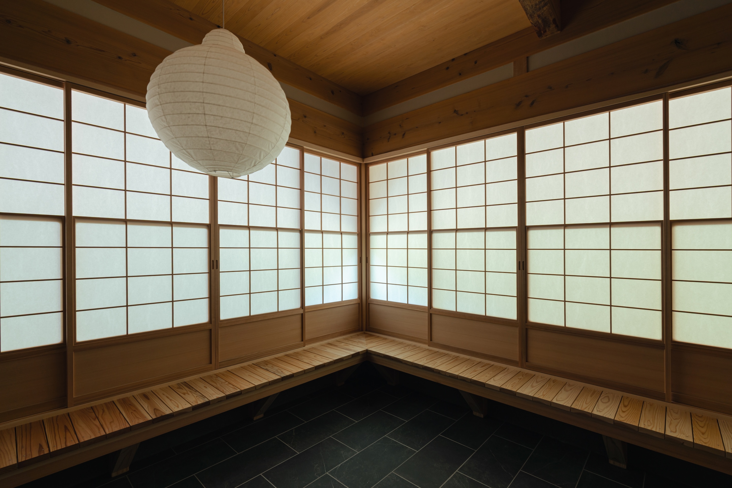 하부에 유리 패널을 넣은 설경 쇼지(雪見障子)를 선택했다. 같은 공간, 같은 면적임에도 외부를 비추는 방식에 따라 전혀 다른 분위기가 연출된다. 시간과 공간의 확장, 그리고 기온의 차이마저도 느낄 수 있다.