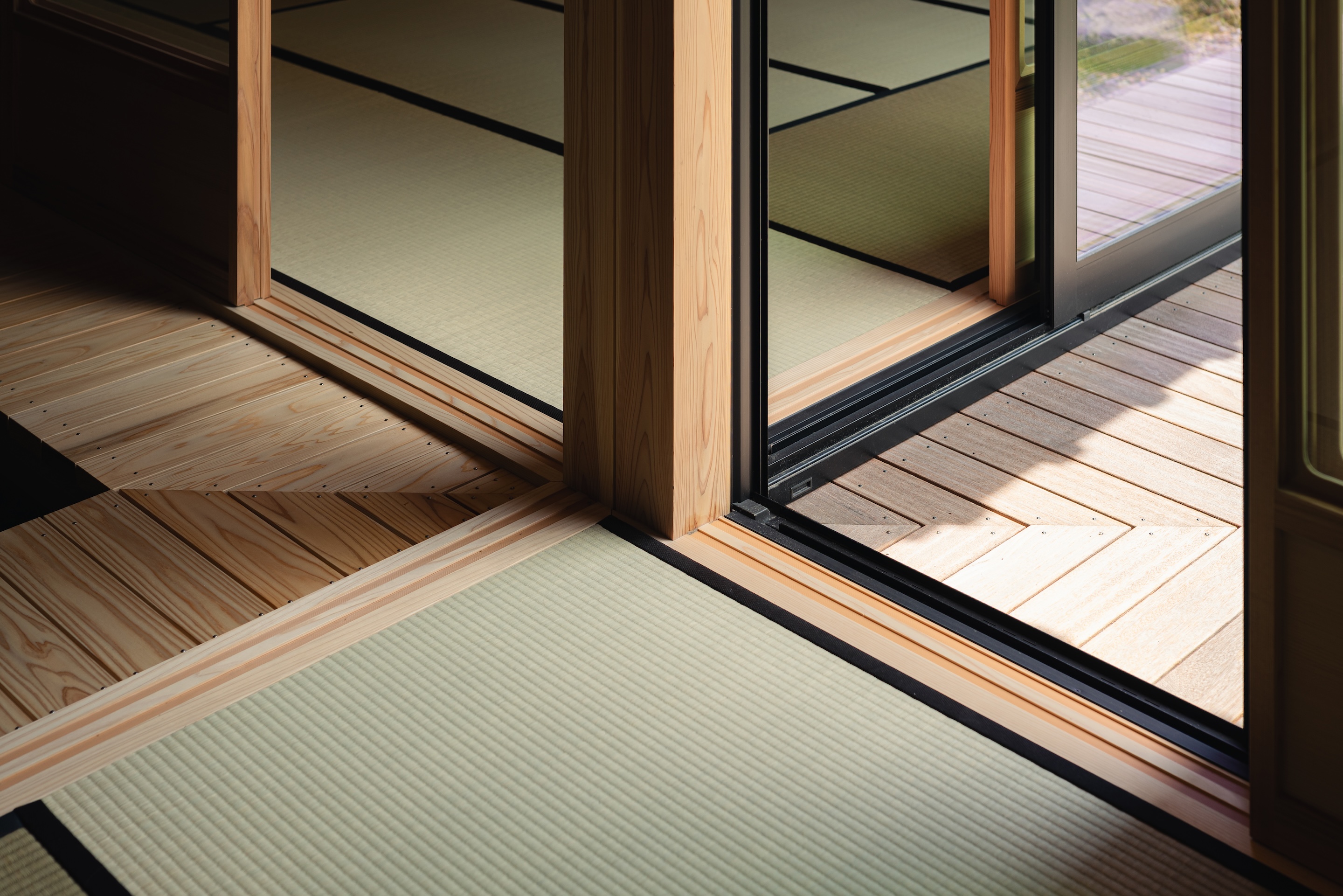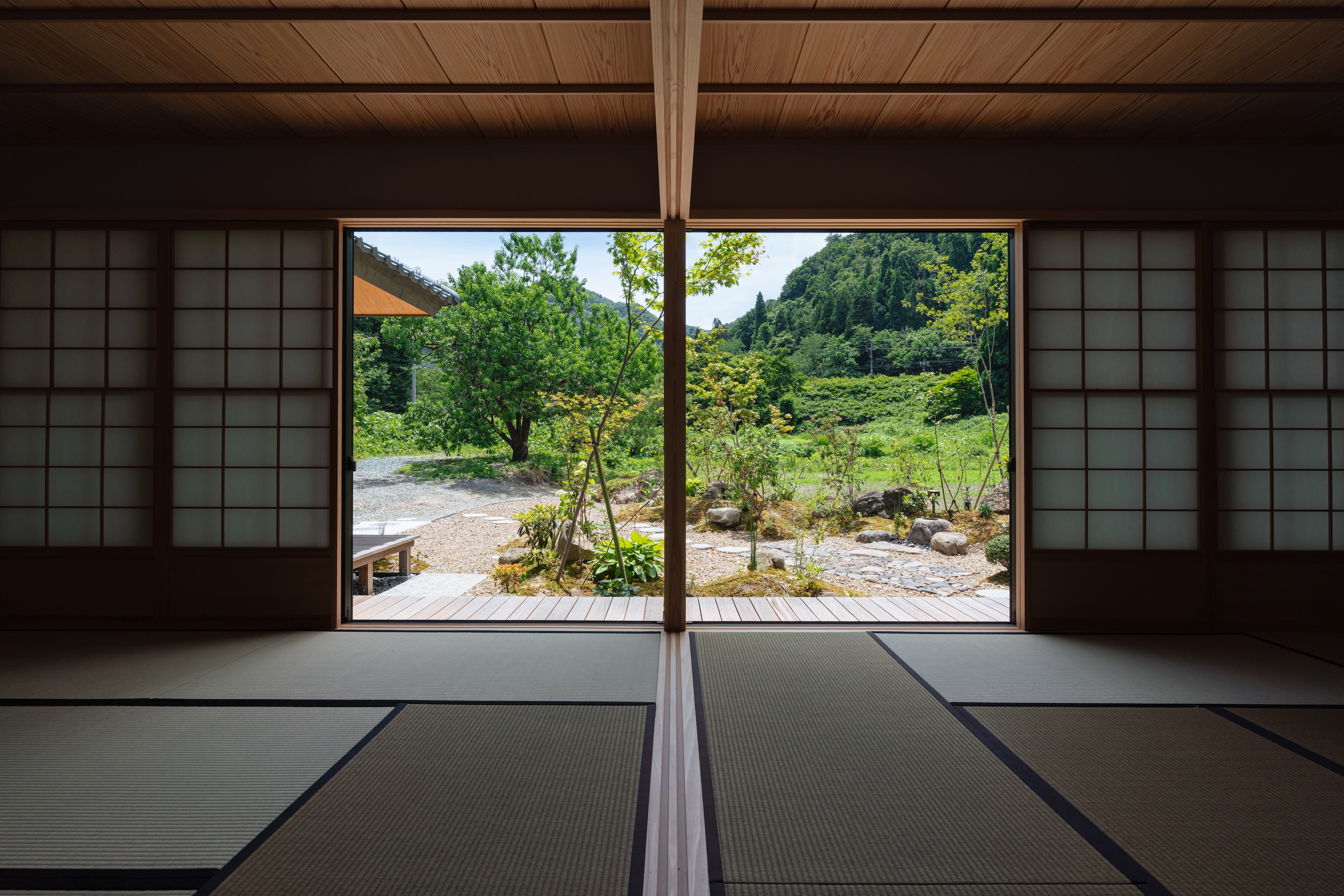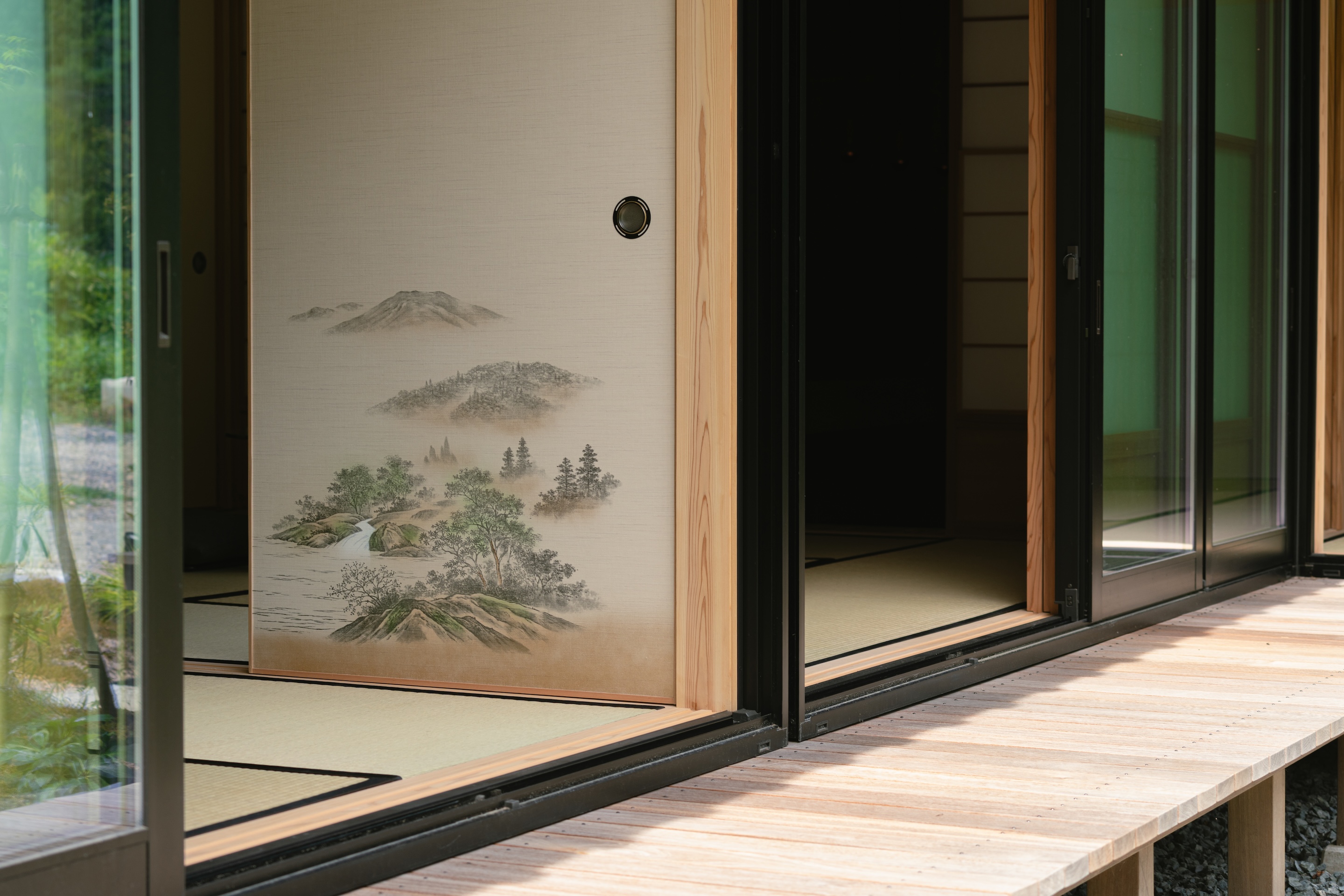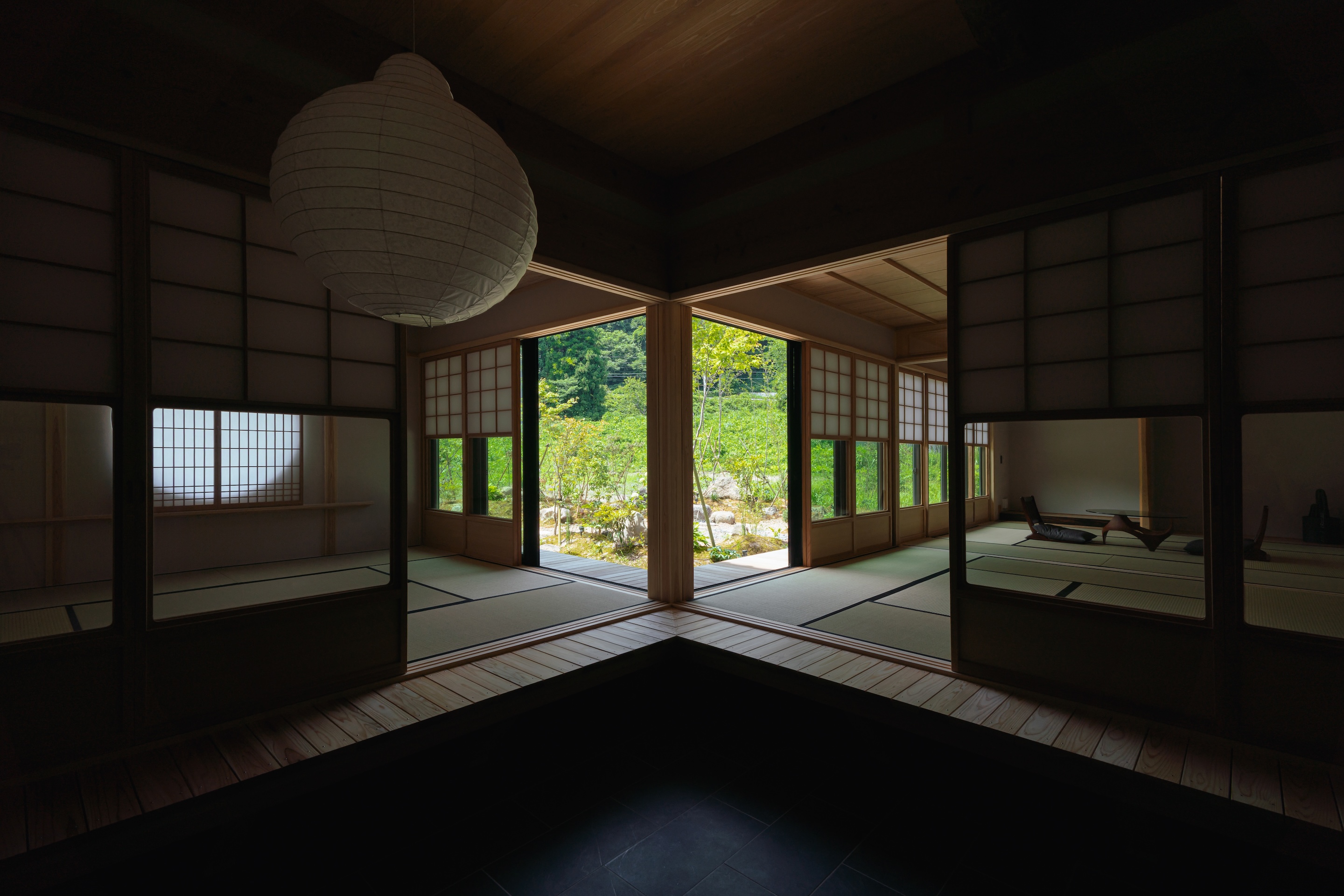 하부에 유리 패널을 넣은 설경 쇼지(雪見障子)를 선택했다. 같은 공간, 같은 면적임에도 외부를 비추는 방식에 따라 전혀 다른 분위기가 연출된다. 시간과 공간의 확장, 그리고 기온의 차이마저도 느낄 수 있다.