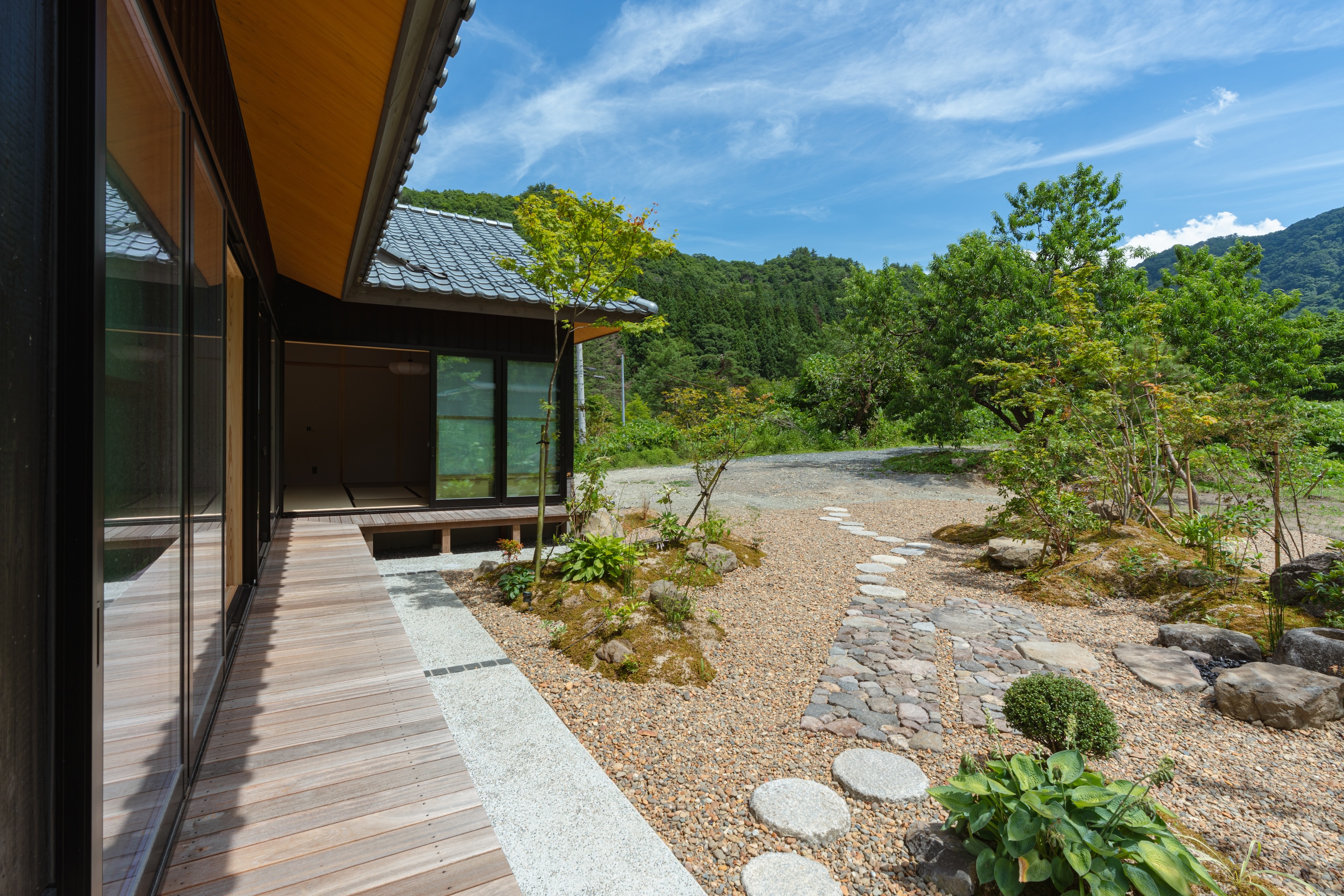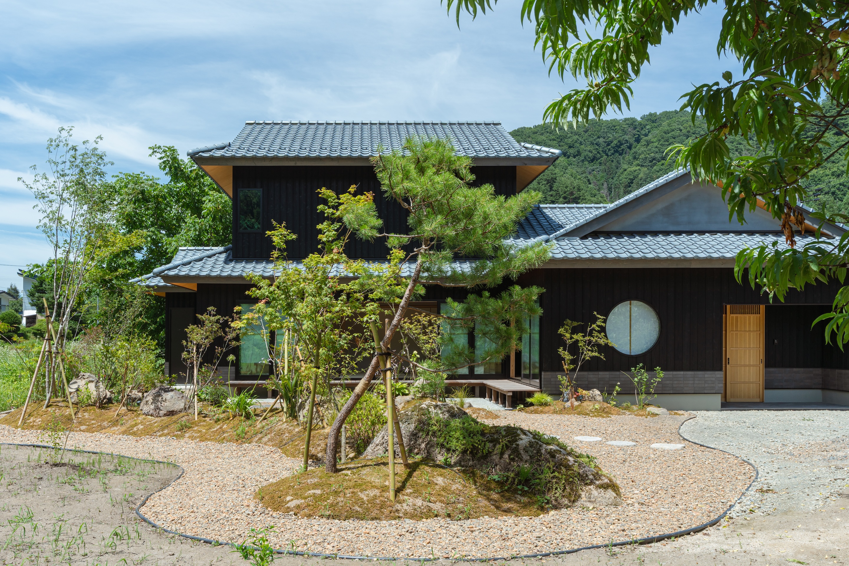 우리는 야마가타현 요네자와시에 새로운 휴가용 주택을 설계하고 건설했다. 대지는 산악 지대에 위치하며 사방이 산으로 둘러싸인 자연이 풍부한 곳이다. 클라이언트는 미국 마이애미에 거주하며 일본을 방문할 때 머물 거점으로 이 건물을 계획했다. 산이 거의 없는 마이애미와 달리, 이 땅의 뚜렷한 일본적 풍경에 매료되어 이곳을 주택 부지로 선택했다.