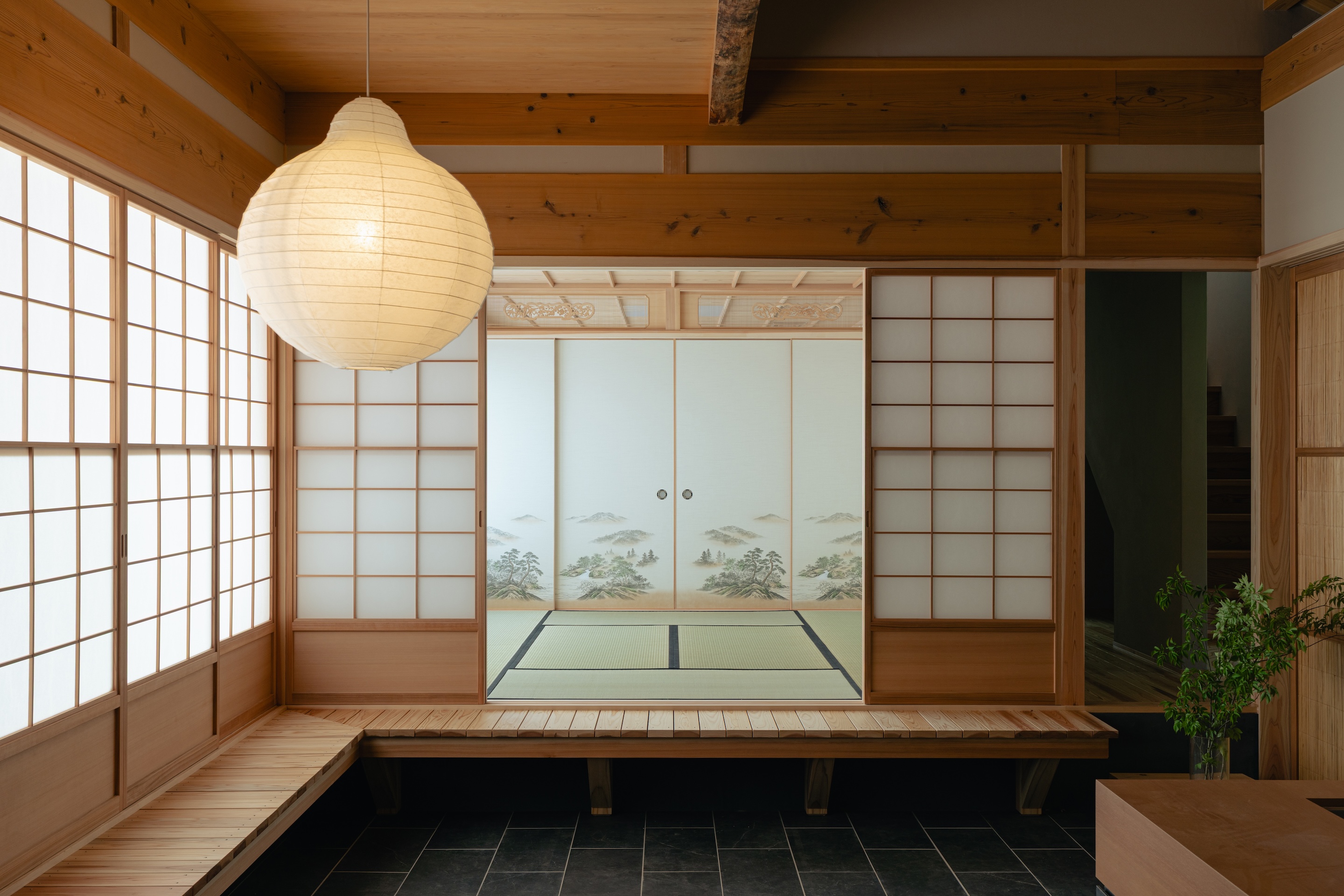 일본 전통 건축은 다다미 방과 쇼지, 후스마를 활용해 공간의 쓰임과 외부와의 관계를 유연하게 조절했다. 이 건물은 그러한 유연성을 계획에 담아, 다수의 손님을 수용하거나 계절과 생활 방식에 따라 다양한 용도로 대응할 수 있도록 했다.