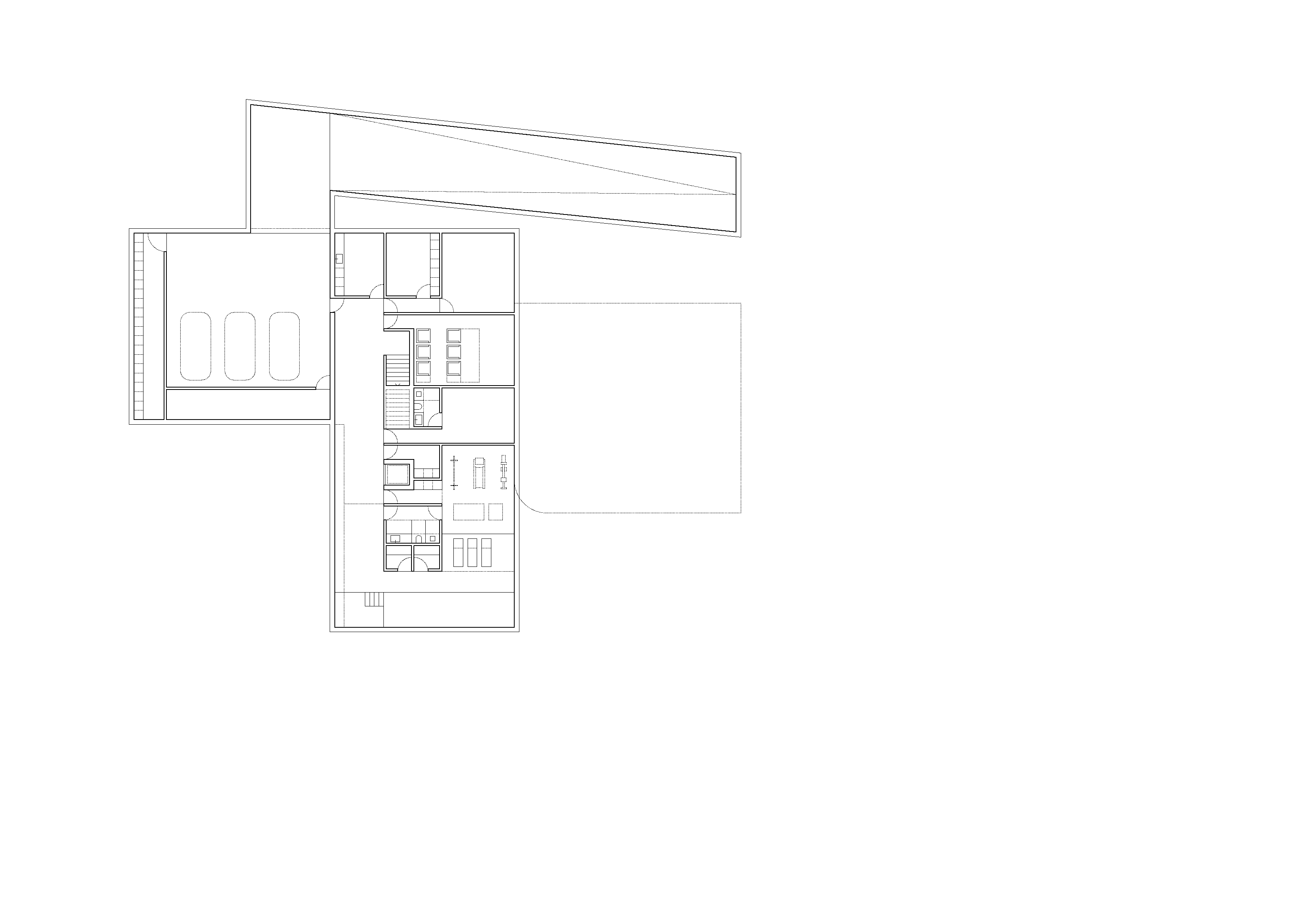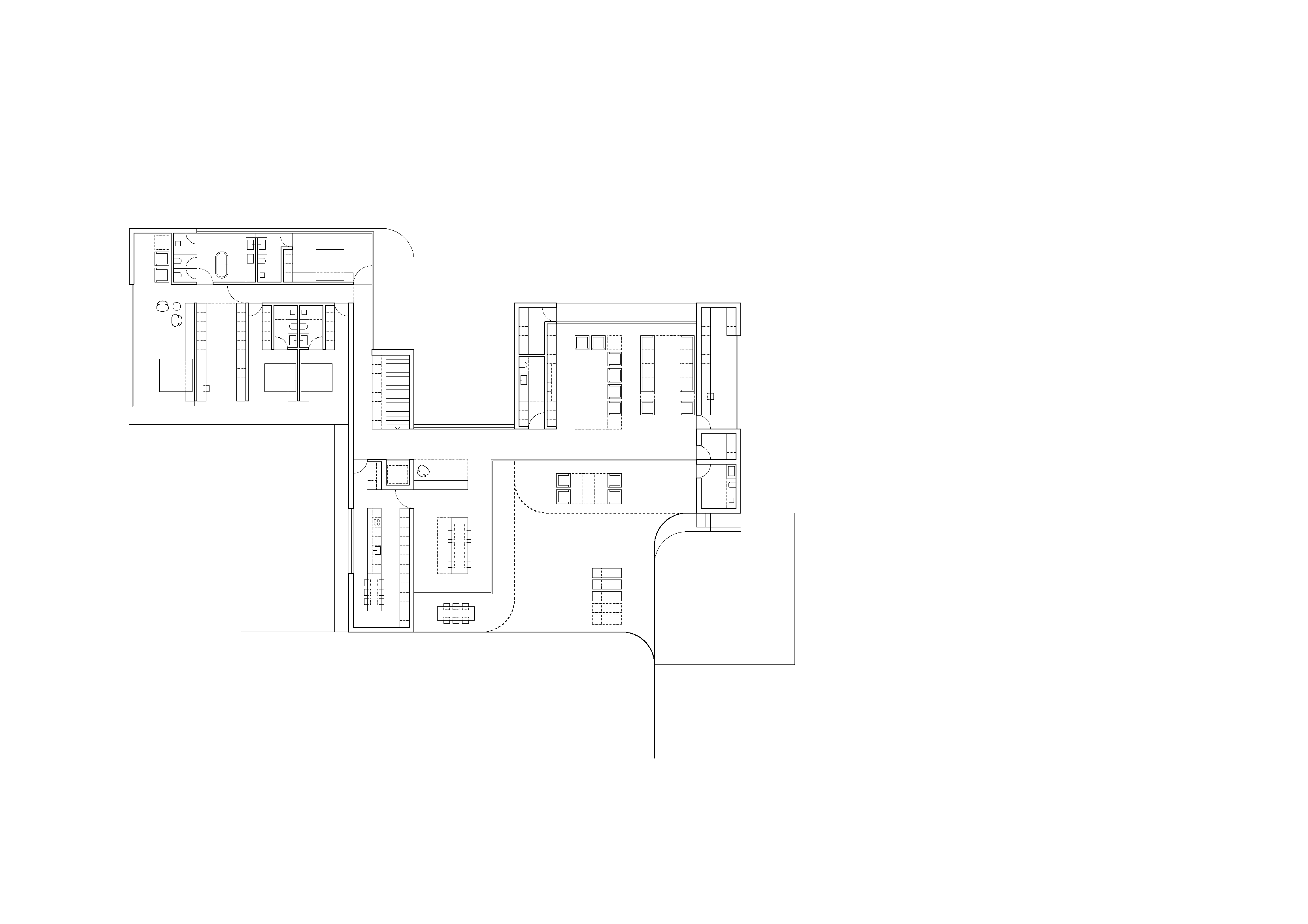 세 개의 매스가 얽히며 북측에 입구 마당을 형성하고, 이는 진입 경험에 뚜렷한 성격을 부여한다. 구조적 기능을 지닌 이러한 배치는 풍경을 지지대 없이 조망할 수 있도록 하여, 향후 새로운 용도와 사용자에 맞게 유연하게 변화할 수 있는 가능성을 열어두었다.