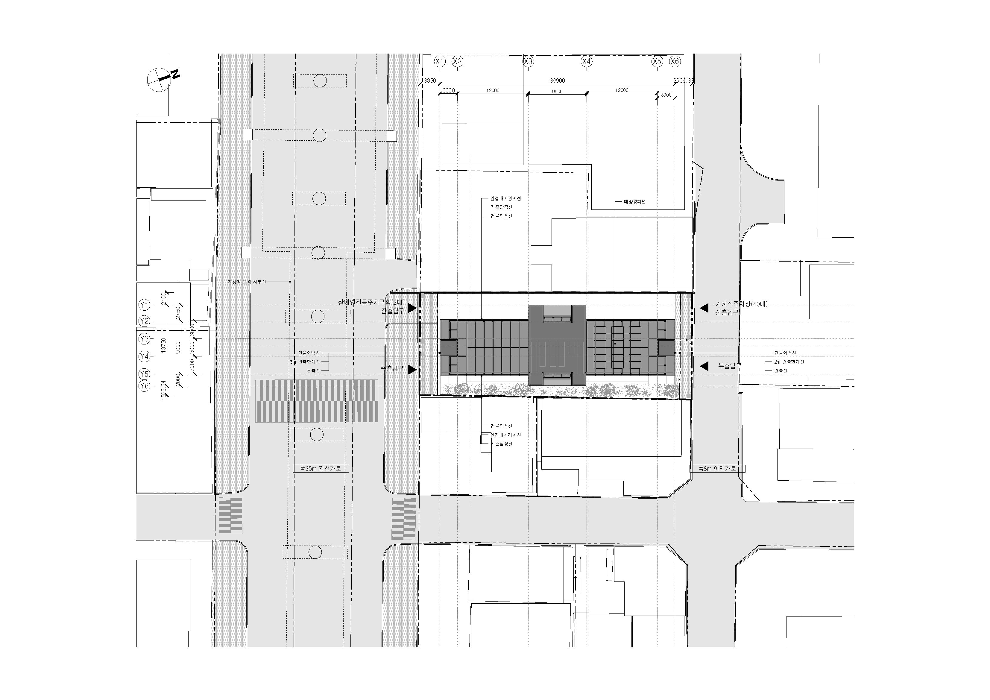 대지 정중앙에 가위계단을 놓는다. 그리고 건축물 양 끝단에 승강기를 놓고, 넓은 복도로 연결했다. 넓은 복도 양옆으로 업무공간을 매달고, 계단과 가까운 중앙부에 화장실, 편의공간, 설비공간을 배치했다.