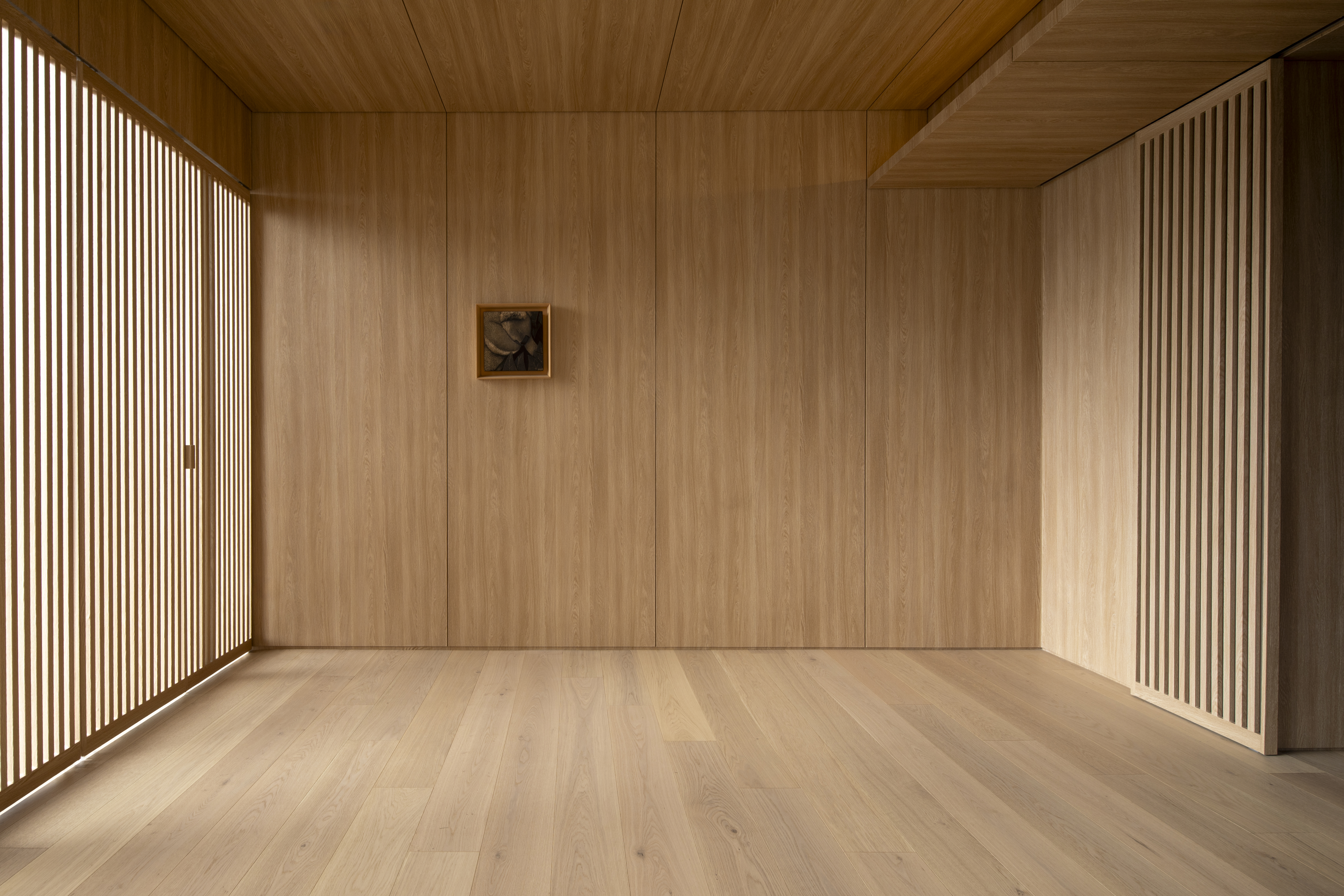 여백의 조각으로 존재하는 이 공간은 특정한 형태나 감성을 선취하지 않고, 자연과 예술, 그리고 인간의 삶이 유기적으로 어우러지는 환경 속에서 온전한 휴식을 가능케 한다. 1층은 내부와 외부, 공간 간의 경계를 유연하게 넘나들며, 행태의 자유로움을 통해 휴식의 주체적인 감각을 일깨우고, 함께 머무르는 이들에게 조화와 존중의 감각을 환기한다. 2층은 공동의 경험과 개인의 고요가 공존할 수 있도록 구성하여, 경계를 통해 명확히 구획된 사적인 공간에서 독립적이고 평온한 시간을 사유하게 한다. 이는 내면의 리듬을 회복하고, 일상으로부터 이완을 돕는 치유적 장치로 작동한다.