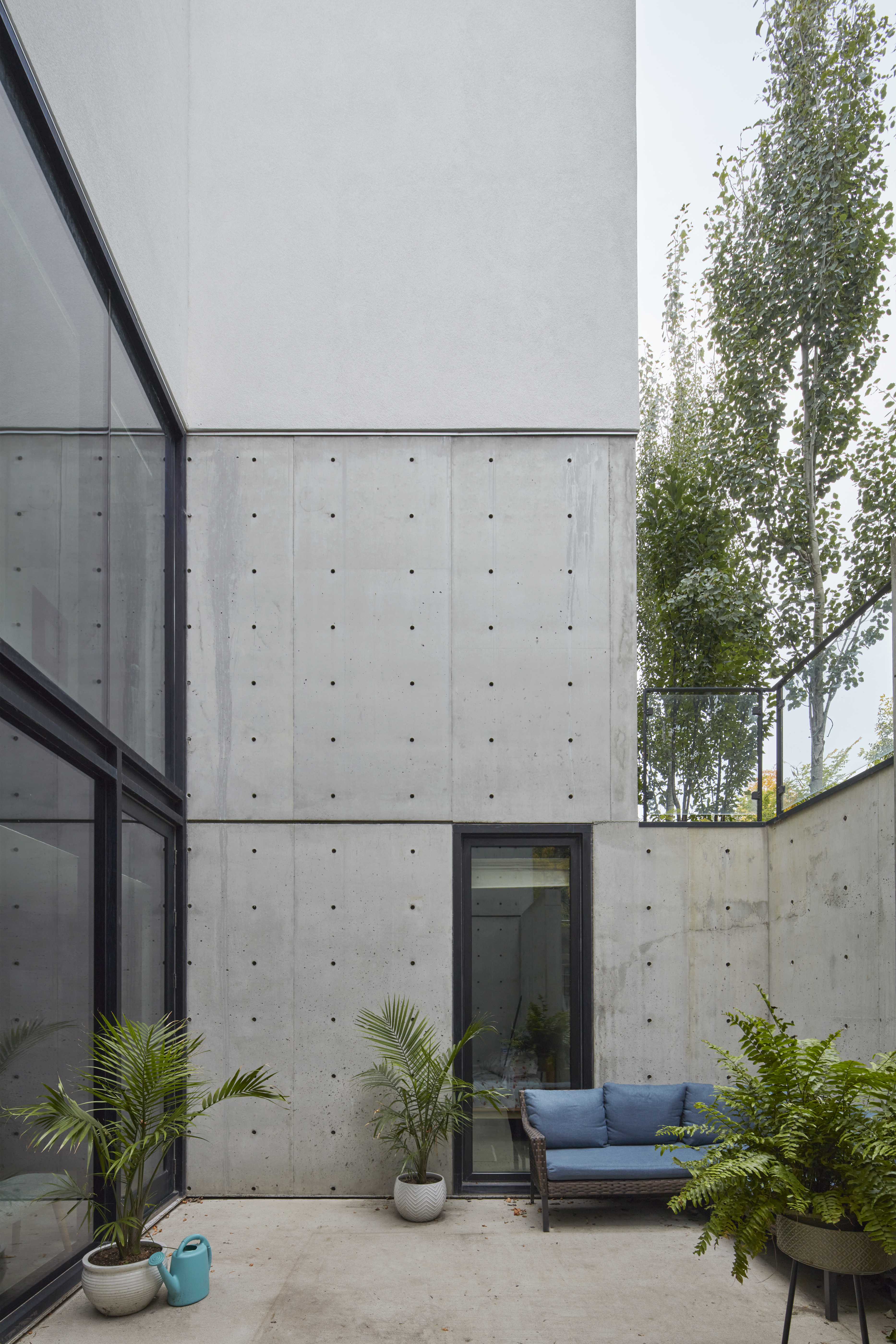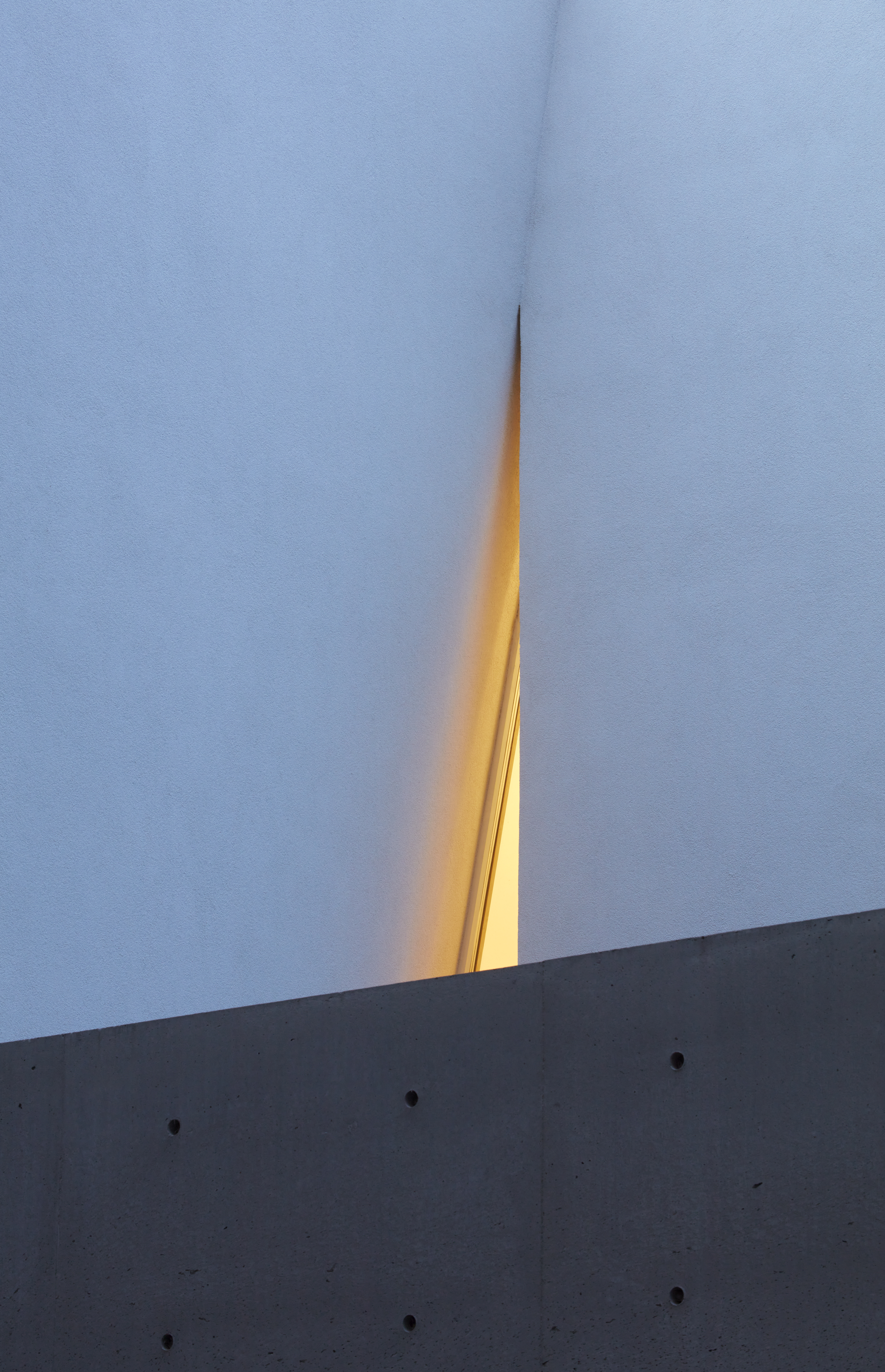 단단함과 가벼움, 활동성과 휴식성은 이 집의 이중고 높이 거실과 식당에서 교차한다. 매끈하고 곡선적인 회반죽 벽은 확산된 자연광을 반사하며, 노출 콘크리트 위에 놓여 재료·공간·빛의 촉각적, 감각적 특성을 강화한다. 이 집은 단순하지만 결코 엄격한 미니멀리즘에 머무르지 않는 주택의 본질을 구현한다.