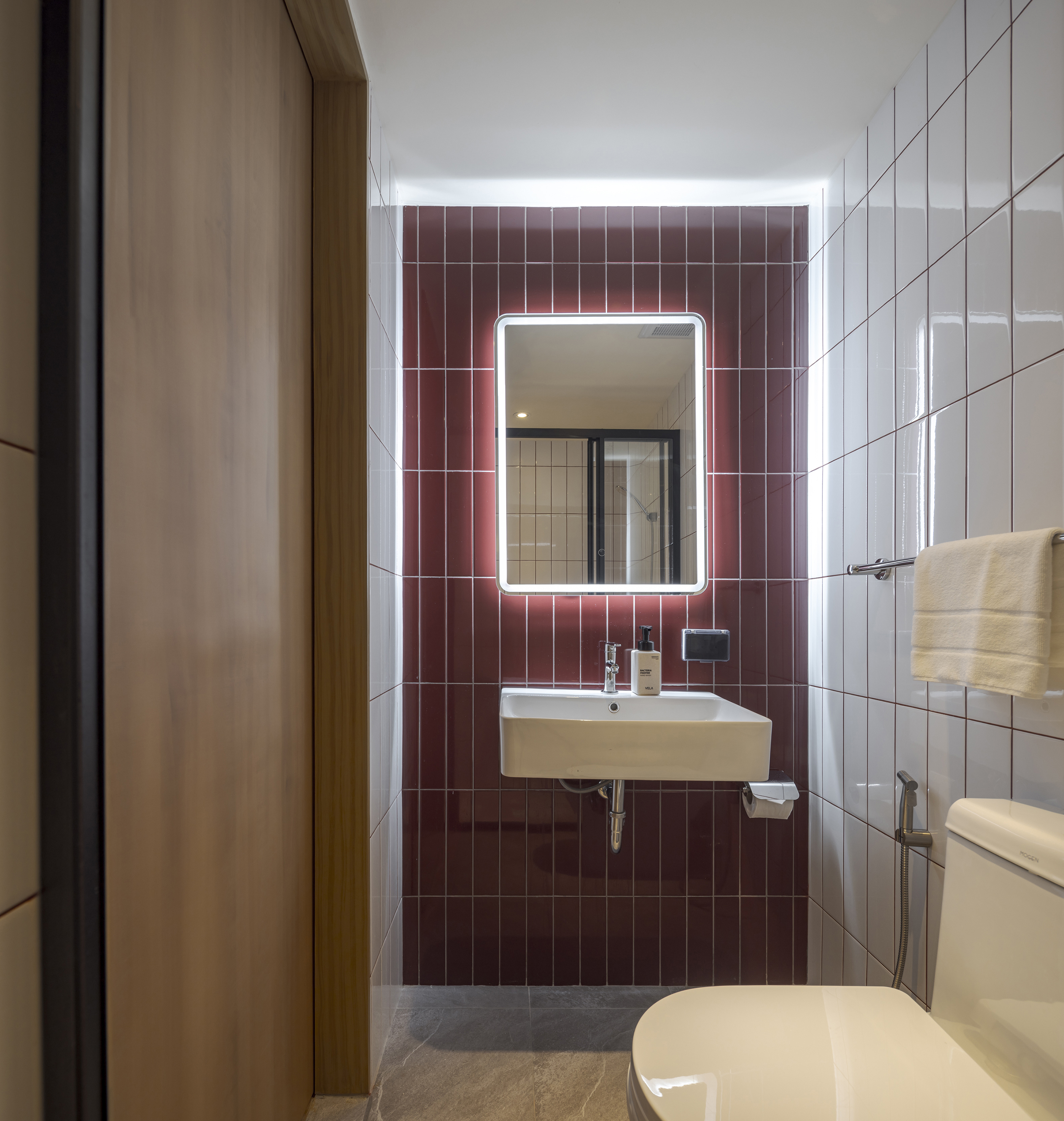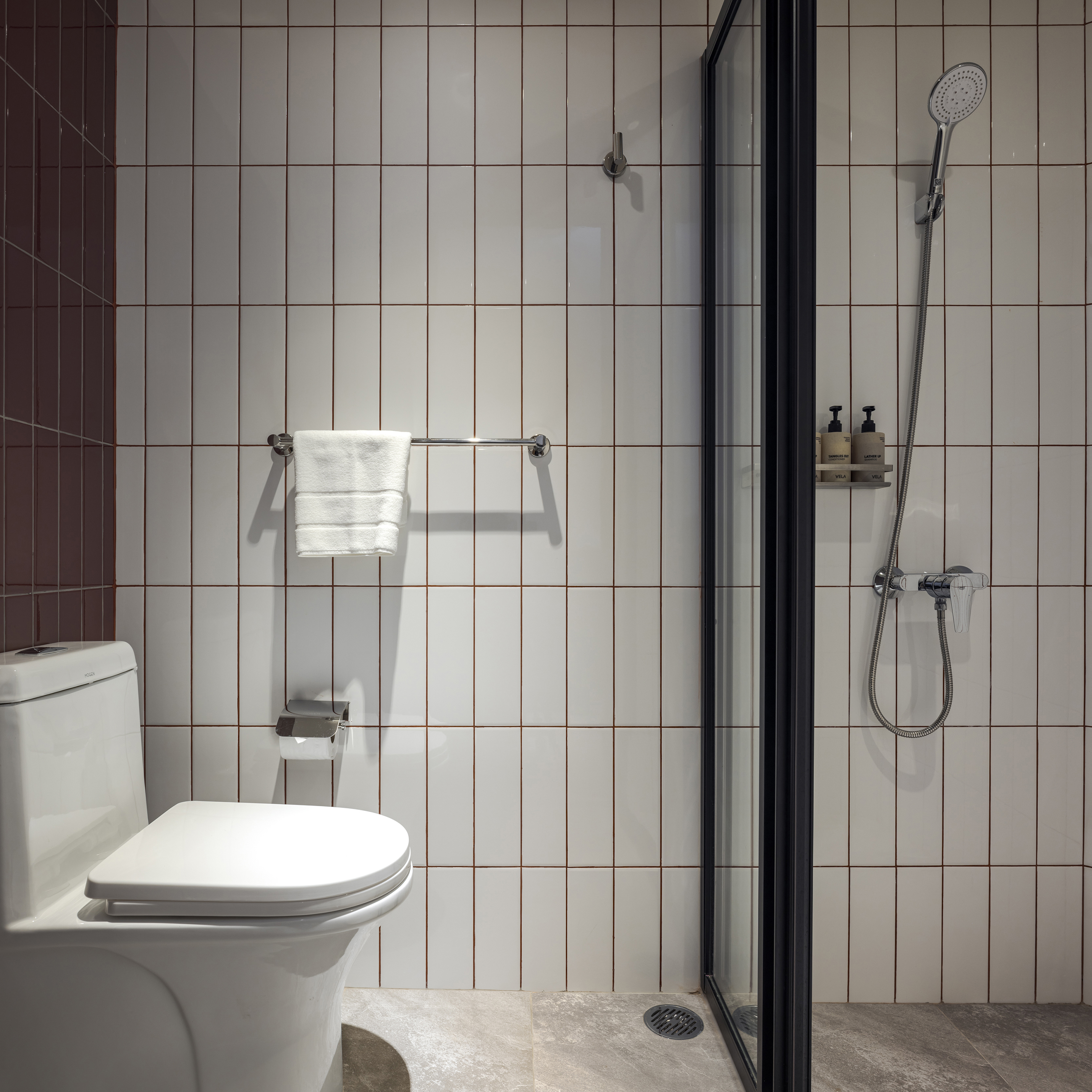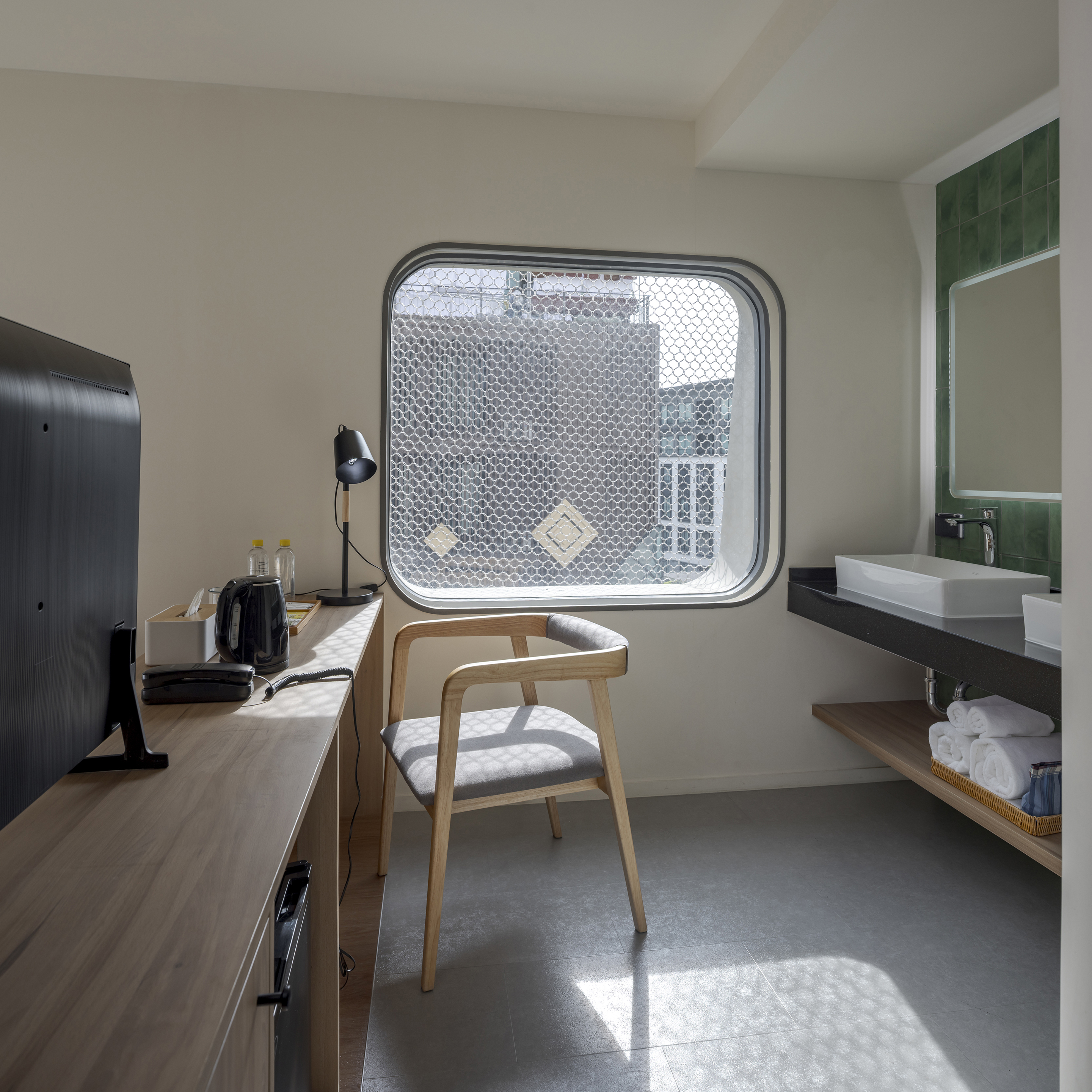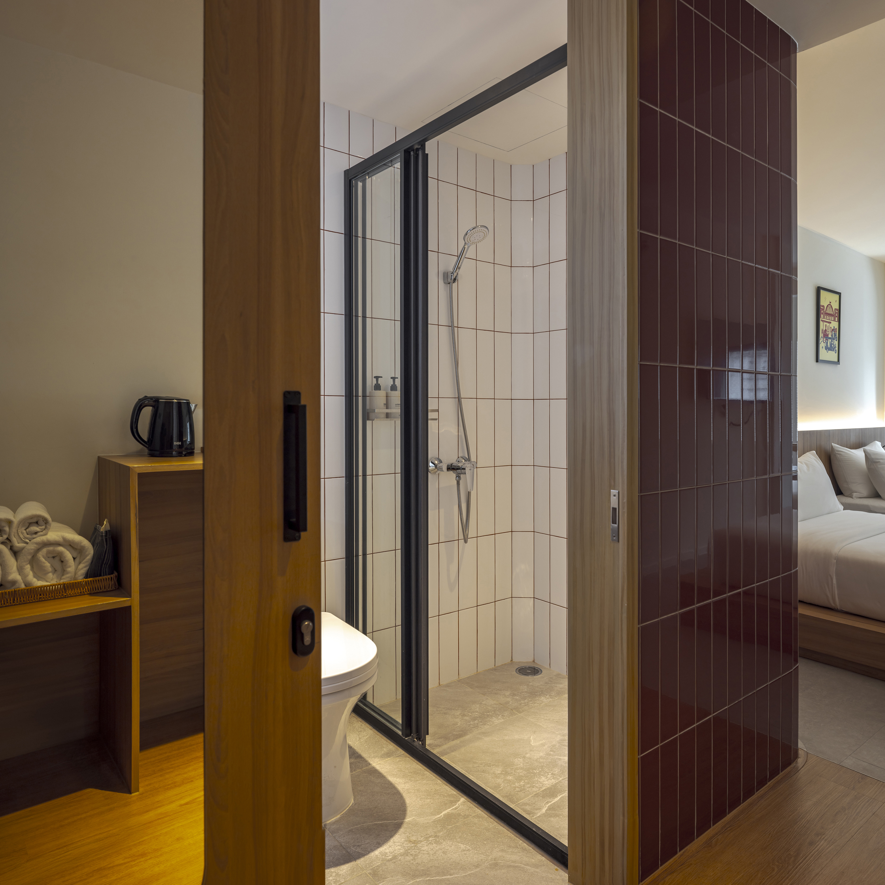각 층은 층수를 표시하는 고유한 색으로 디자인된 엘리베이터 홀을 통해 개성을 드러낸다. 객실에 가까워질수록 색은 점차 차분하고 은은하게 전환되며, 숙면을 위한 안정적인 분위기를 조성한다. 그러나 차분함 속에서도 장난스러운 요소는 이어진다. 욕실 외벽은 다채로운 타일 패턴으로 마감되어 즐거운 리듬감을 공간에 불어넣는다.