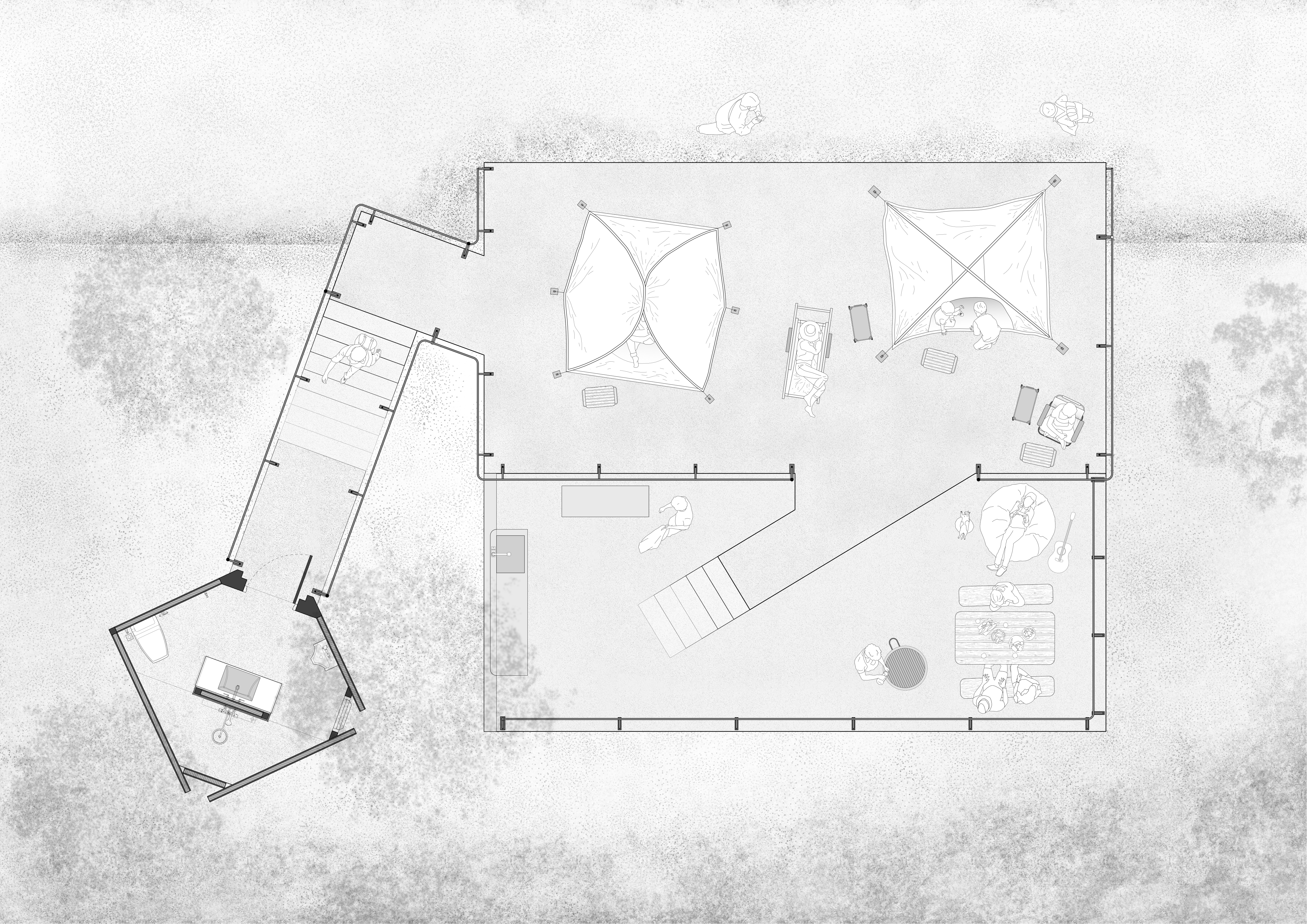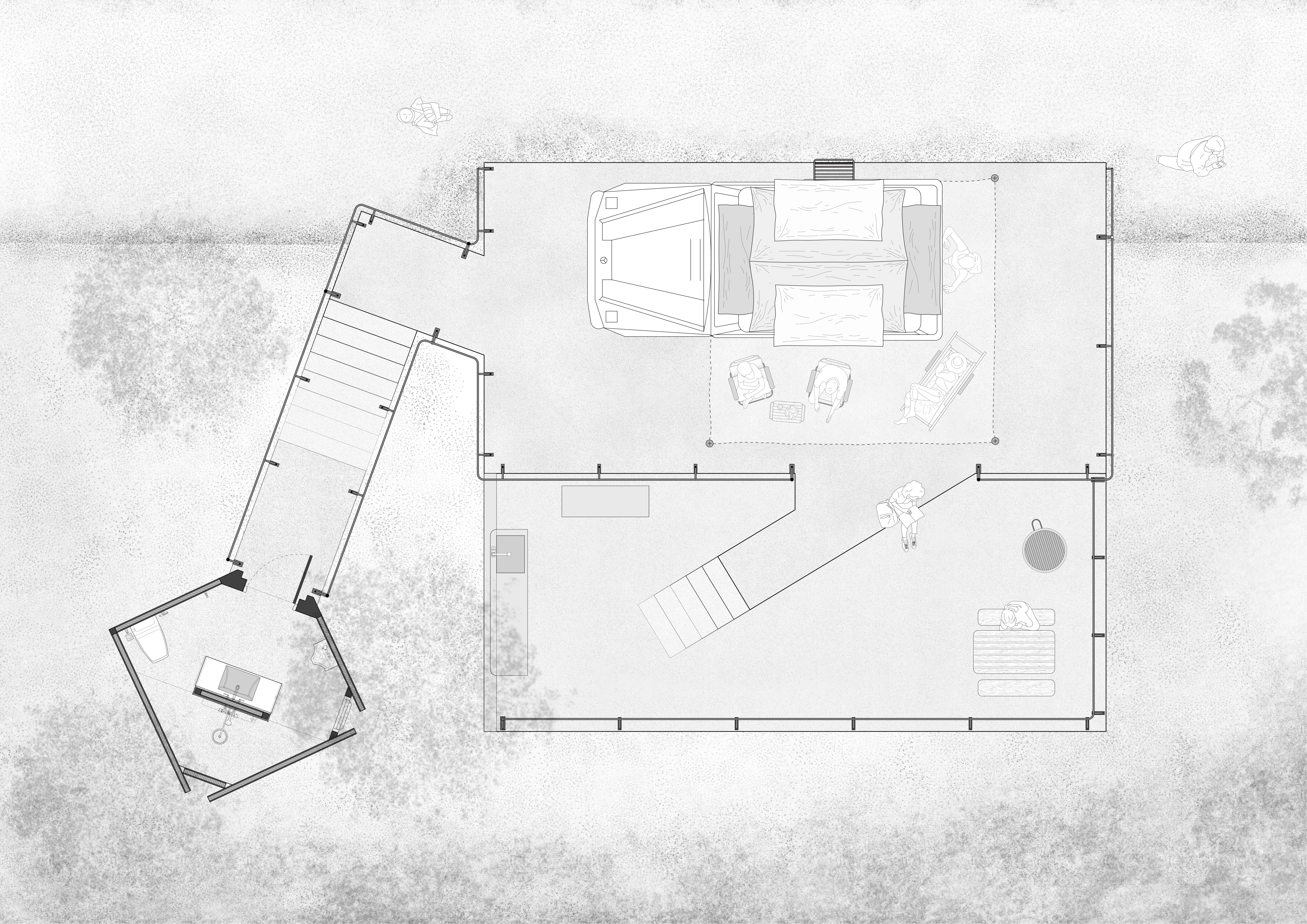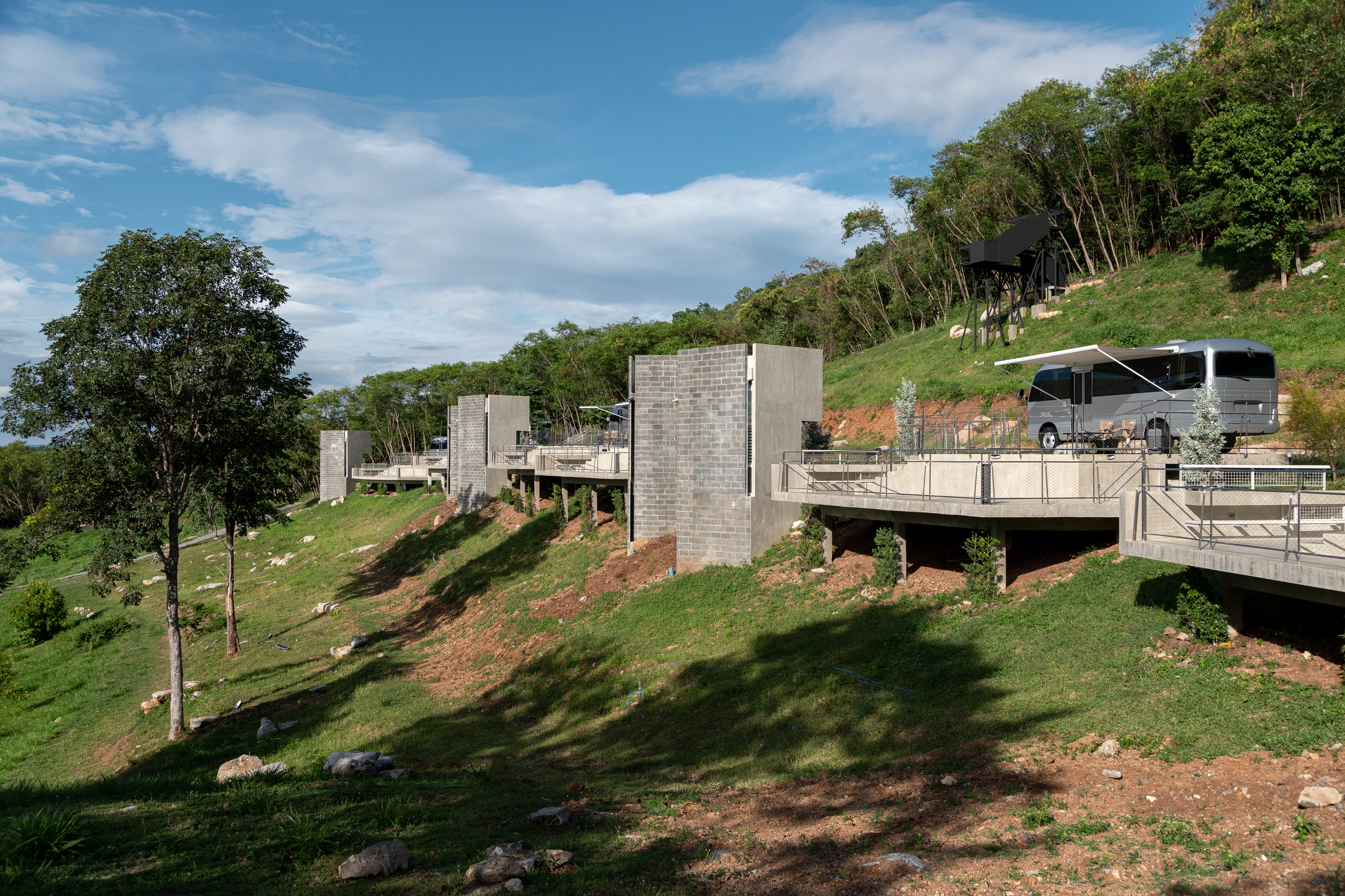최종 목적지는 부지의 가장 높은 봉우리에 위치한 산 정상 캠핑장이다. 6개의 프라이빗 숙박 유닛은 화장실, 팬트리, 주차 공간, 텐트 설치 공간을 갖추고 있으며, 꼭대기에는 전망 데크가 마련되어 칸농프라 계곡과 그 너머의 파노라마를 조망할 수 있다.