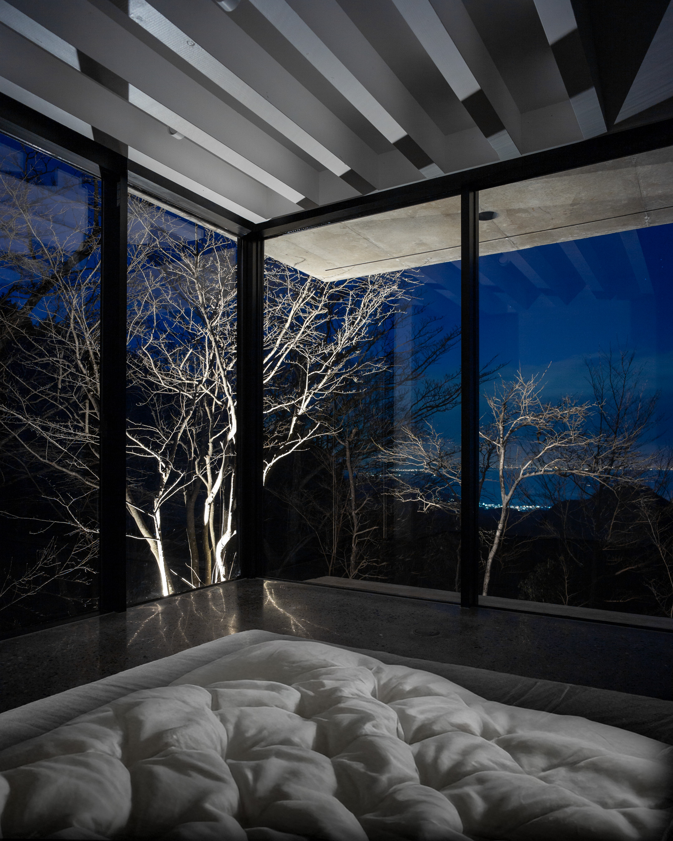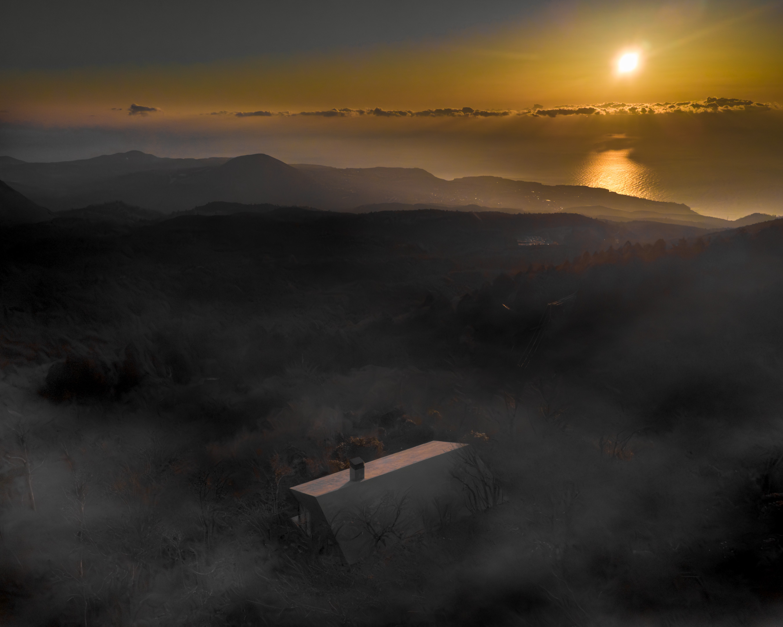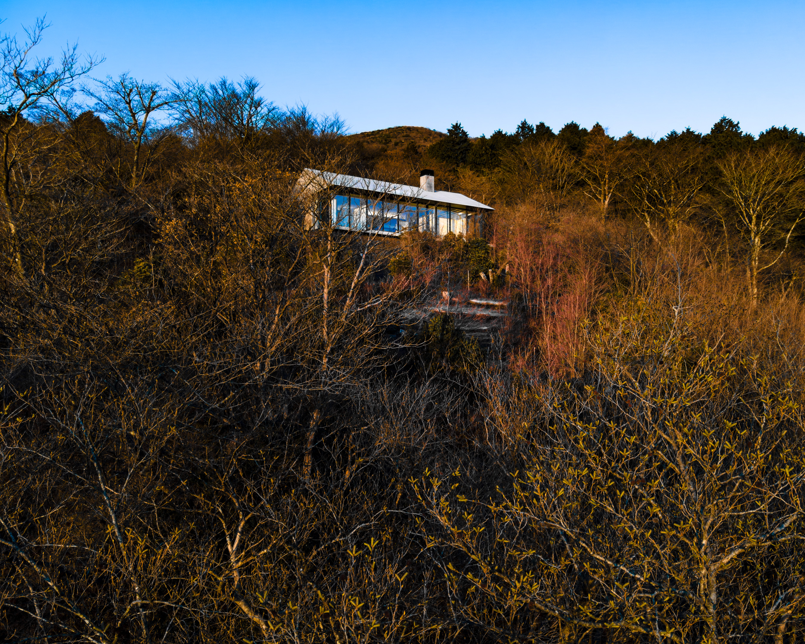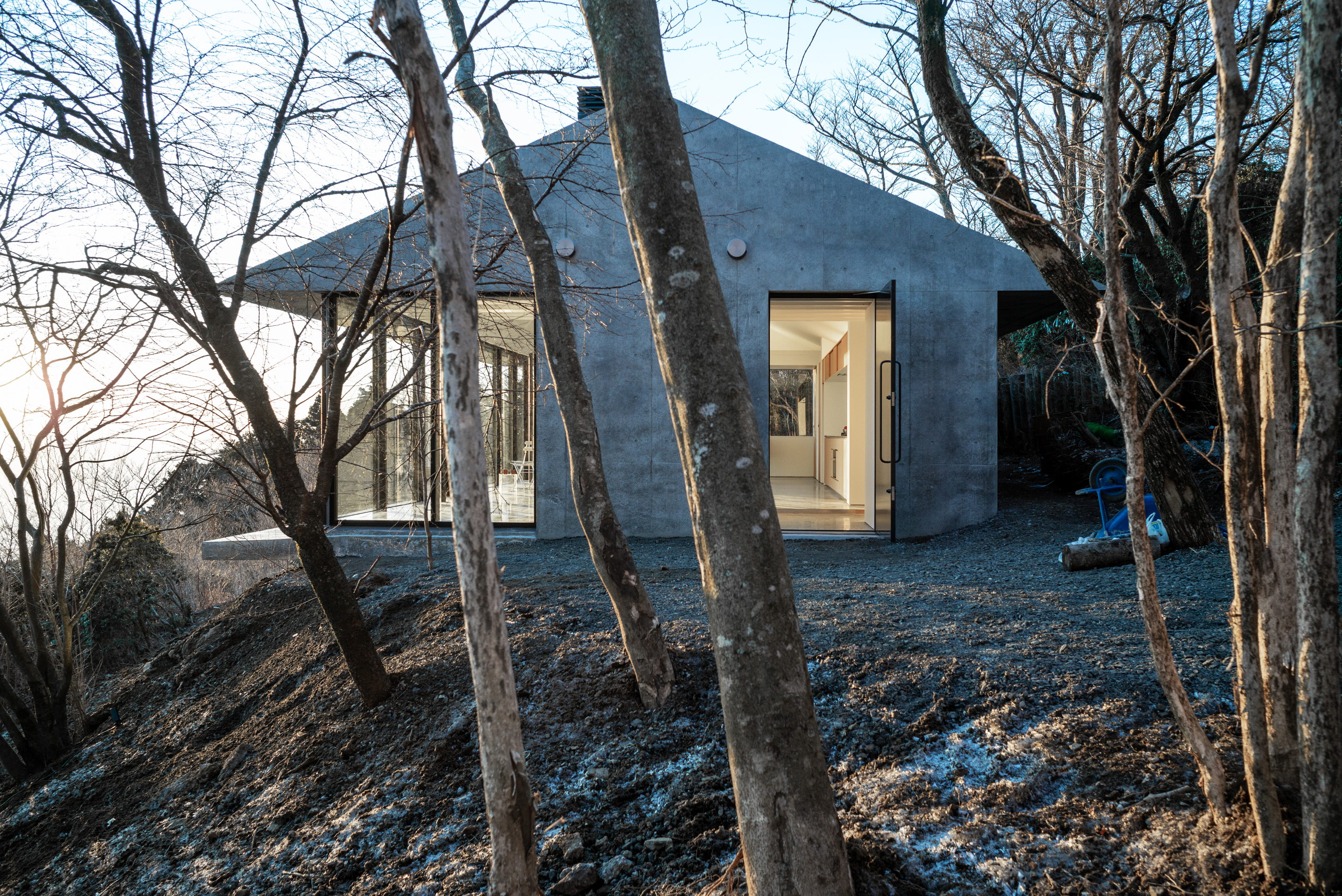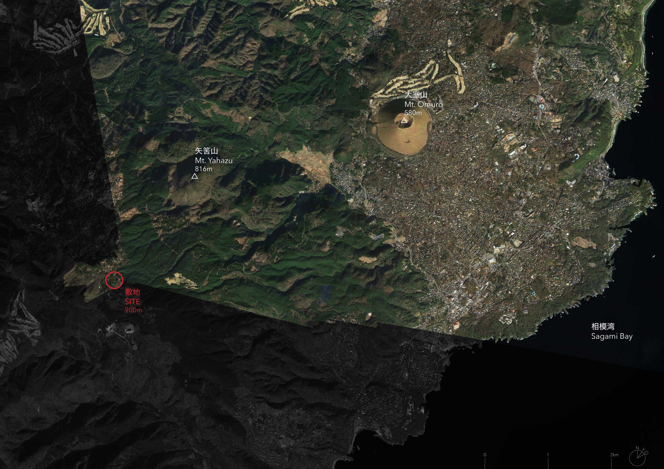 수개월 후, 건축주는 뜻밖의 소식을 전했다. 도쿄에서 세 시간 거리의 이즈 반도에 6,000㎡가 넘는 산비탈을 매입했다는 것이다. 흥미롭게도 날씨가 맑으면 처음 후보지였던 가마쿠라가 멀리 보인다. 그러나 통계적으로 일 년의 절반은 안개에 가려 시야가 흐린 지역이다.