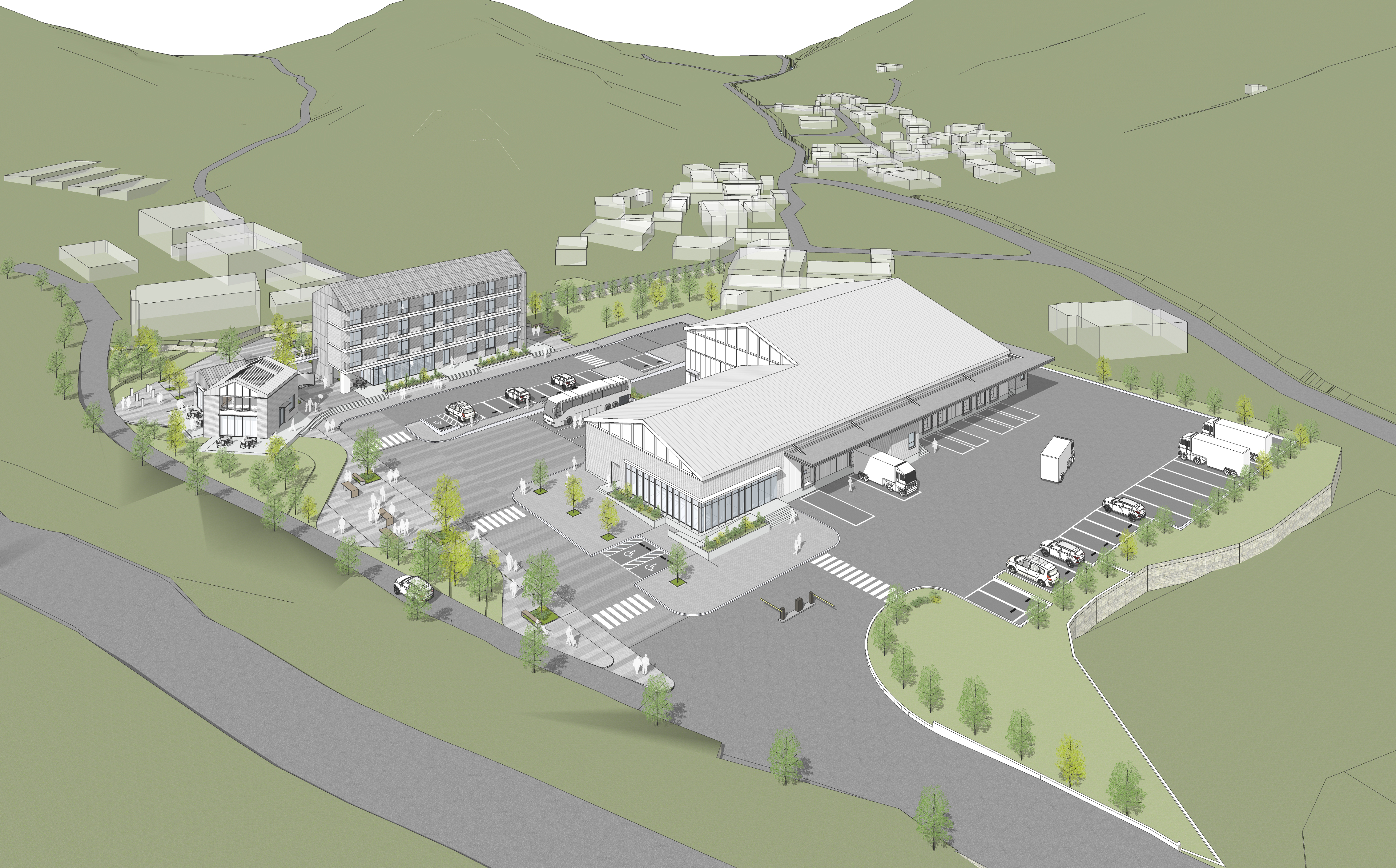 기숙사는 단순한 생활공간이 아니라, 함께 일하는 사람들의 안정을 보장하는 또 하나의 공동체로 계획되었다. 주민의 공유공간과 직원의 기숙사가 마을로 통하는 길 좌우로 놓이며, 서로 다른 일상이 같은 풍경 속에서 어우러지도록 하였다.