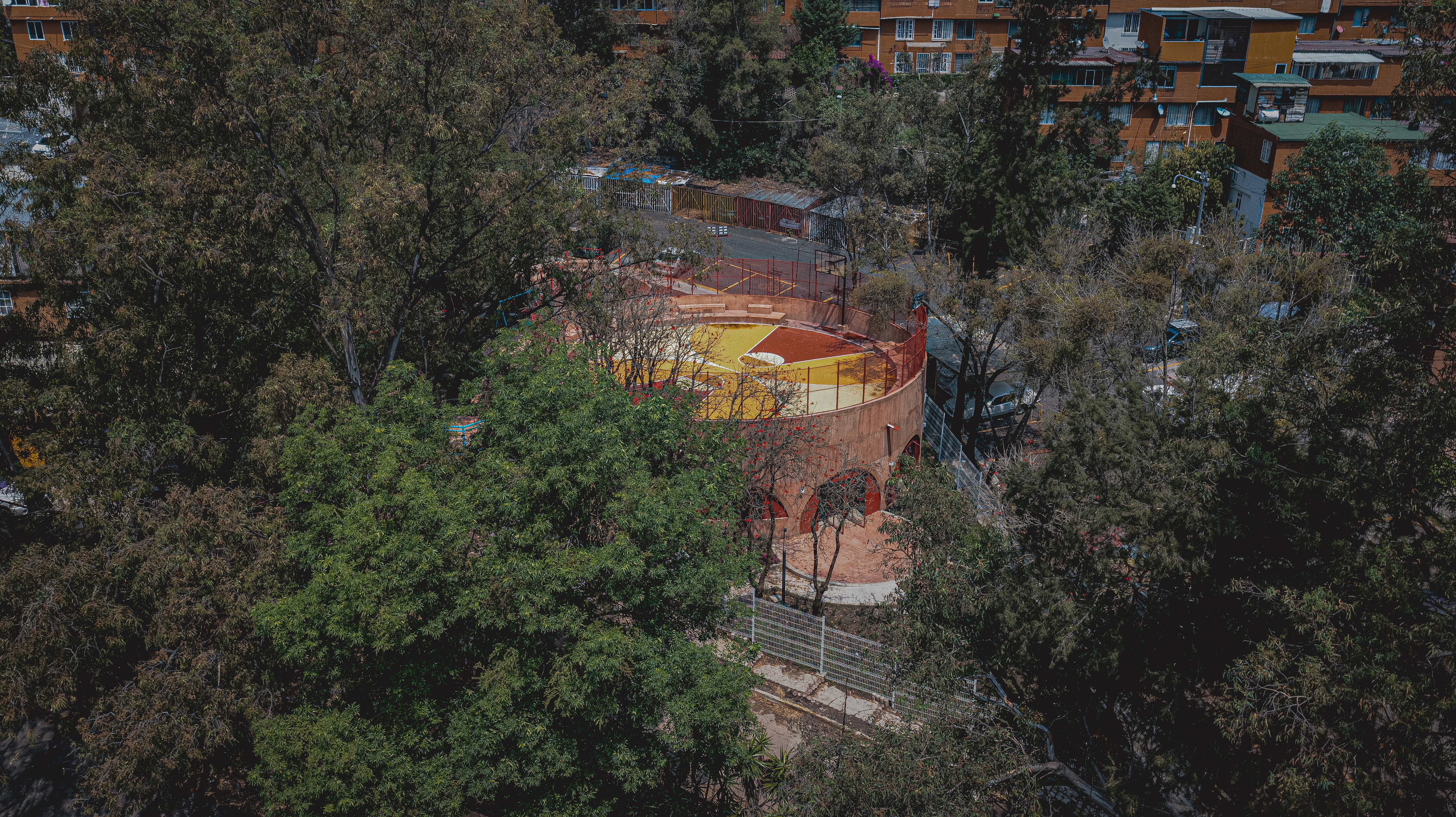 멕시코시티 서쪽 끝, INFONAVIT 산타페 주택단지에서 아마사 에스투디오는 2024년에 진행된 여러 개입 가운데 가장 복잡한 맥락을 가진 프로젝트를 수행했다. 이 단지는 협곡 위에 지어져 고저차가 심한 지형 조건을 가지고 있으며, 이로 인해 연결성과 접근성이 크게 제약받고 있다.