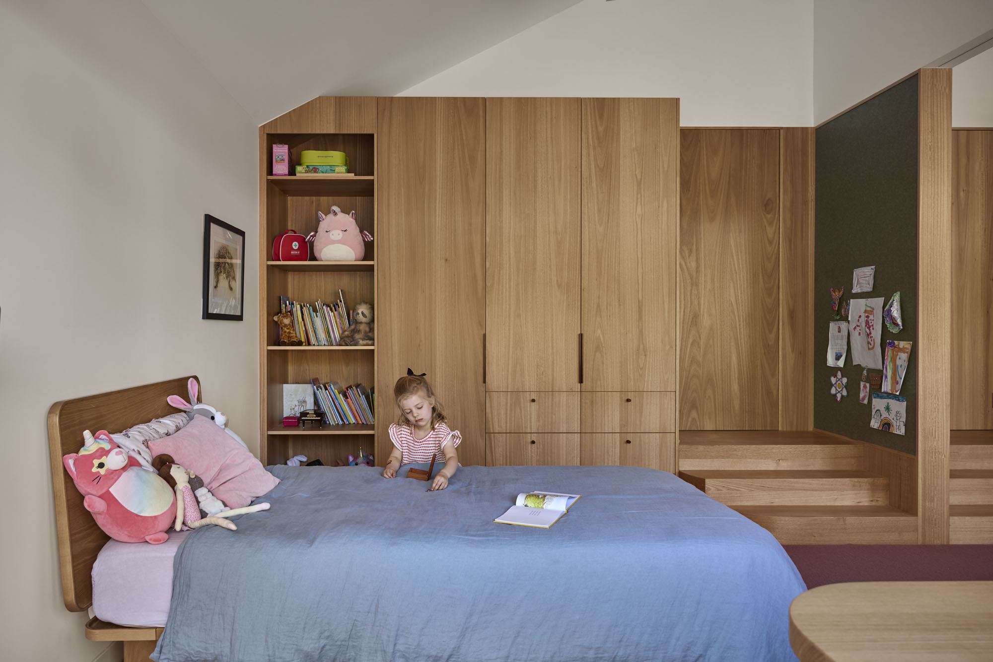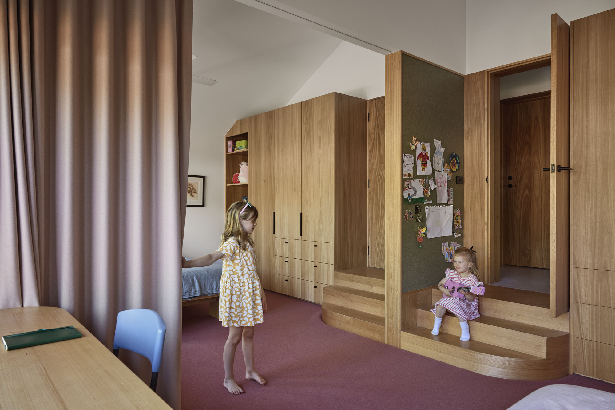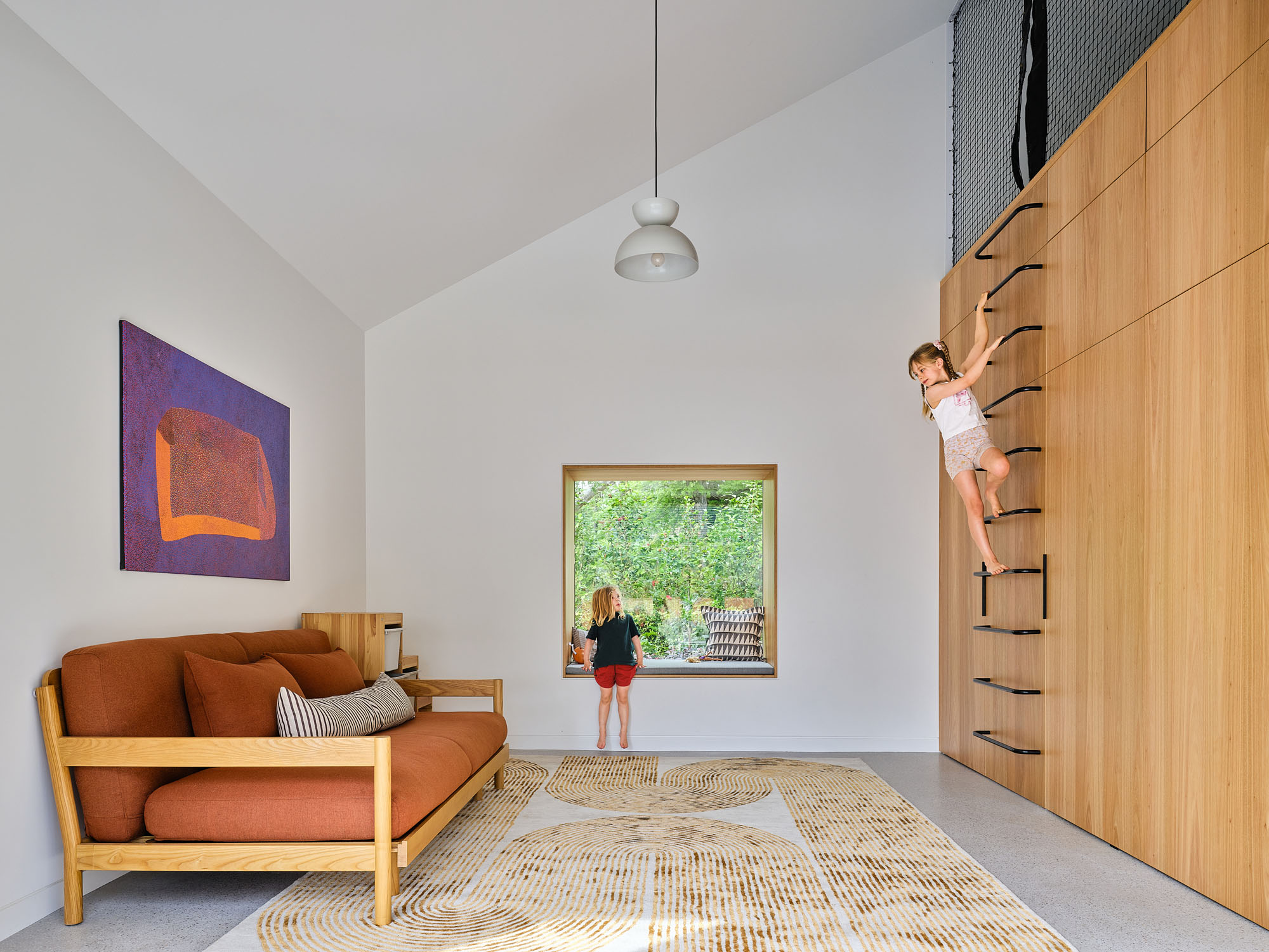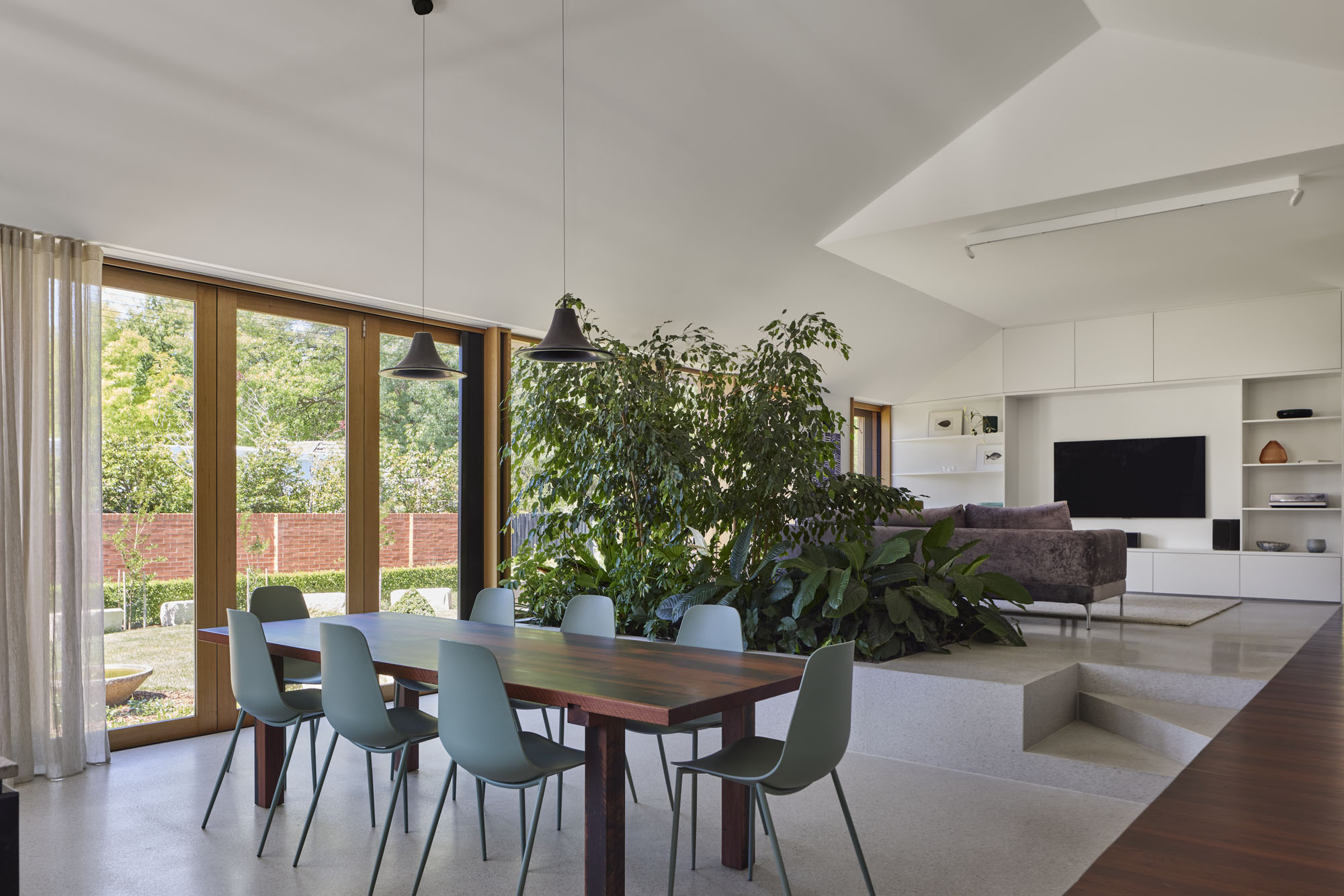 새로운 주택의 핵심은 내부와 외부의 경계를 허무는 공간적 구성이다. 정원은 실내로 끌려 들어와 녹지 오아시스를 형성하고, 모든 방향에서 자연이 보이도록 계획되었다. 특히 아이들의 침실은 동일한 배치와 가구를 갖추고 커튼으로만 분리되어 ‘함께이면서 따로’ 있는 경험을 가능케 한다. 이는 형제자매가 함께 성장하는 사회적·심리적 이점을 반영한 디자인이다.