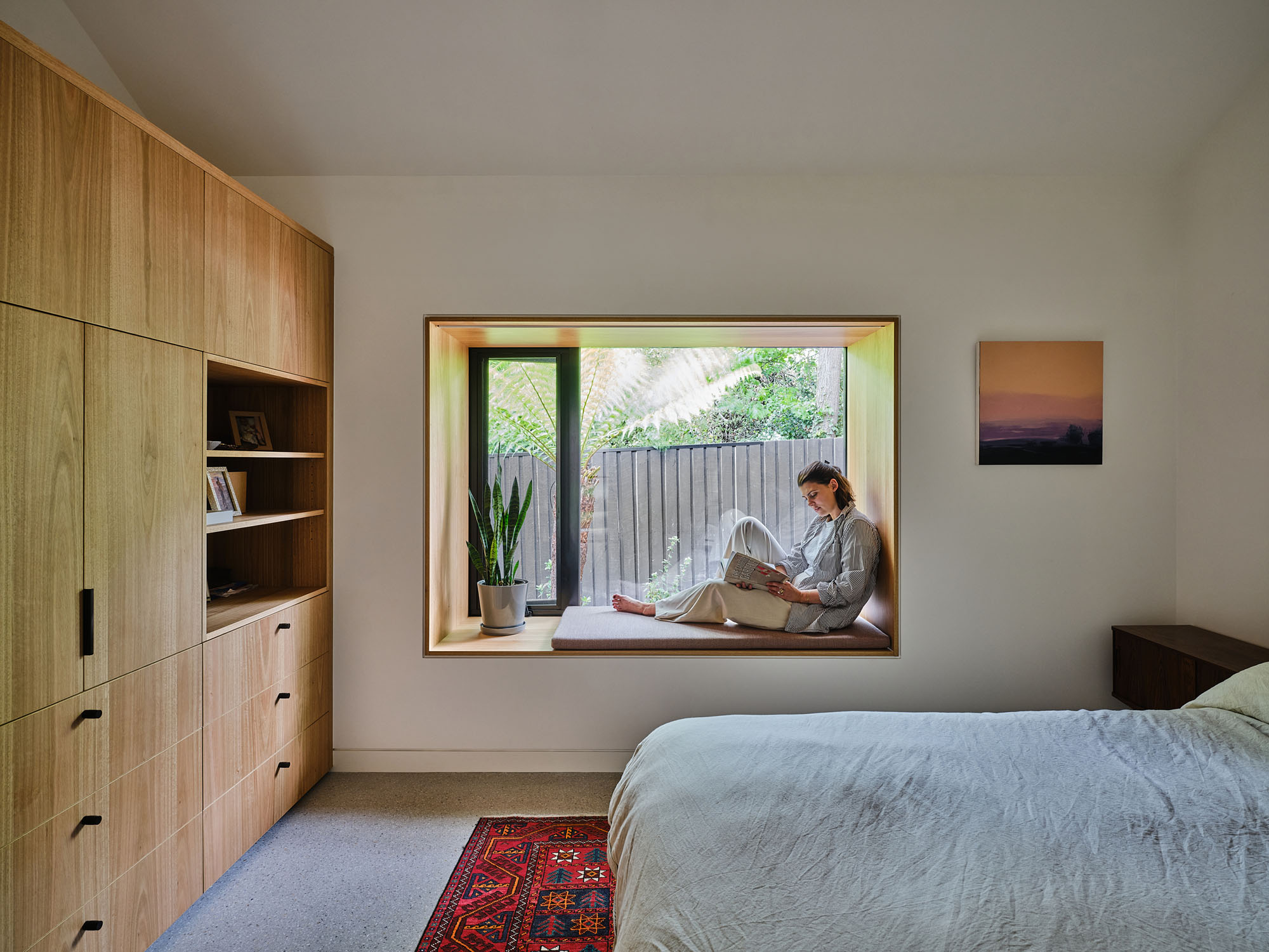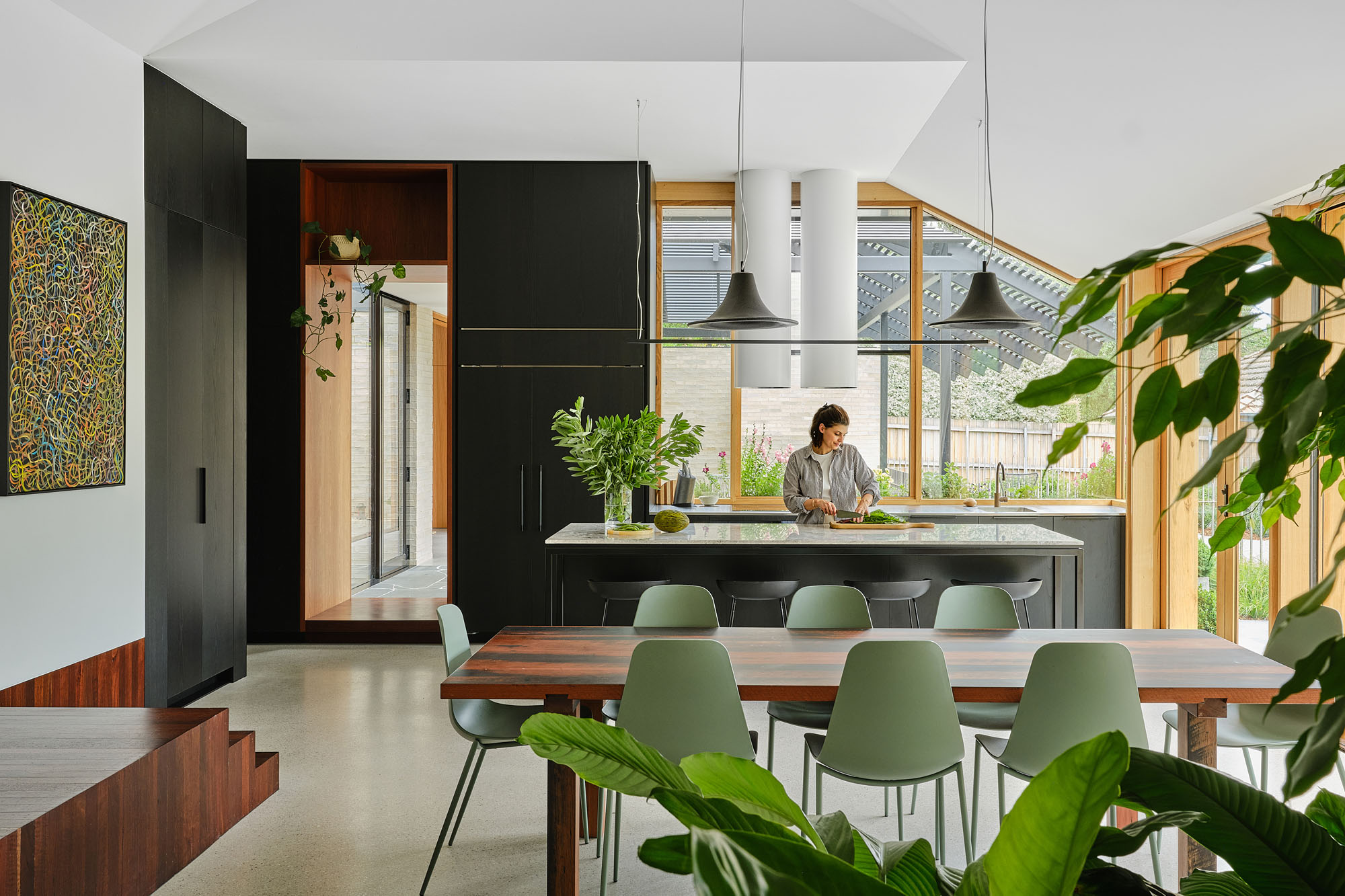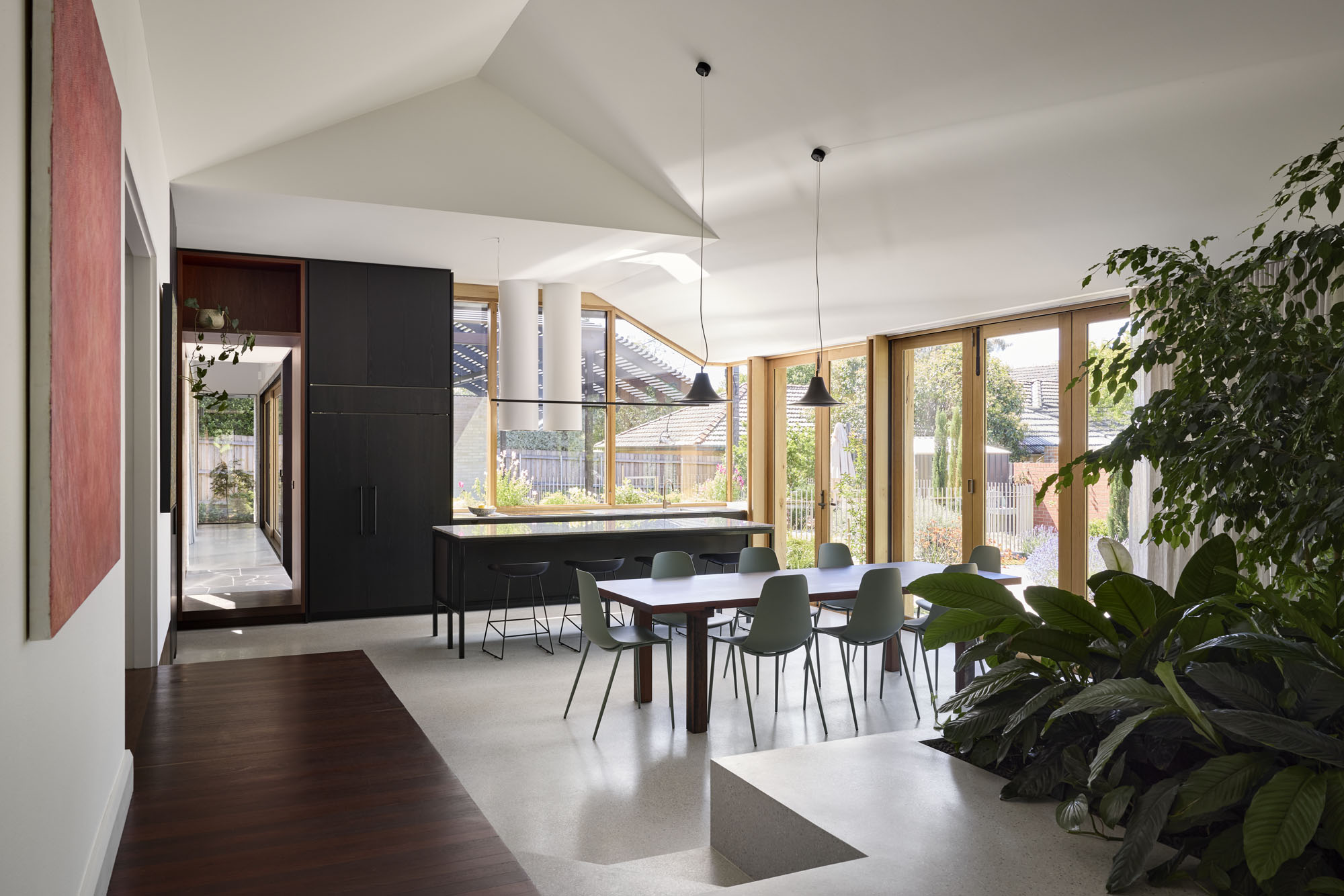 외관은 기존의 지붕 경사와 형태를 모방해 거리 풍경에 겸손하게 자리하며, 내부는 밝고 개방적인 공간으로 놀라움과 발견의 경험을 제공한다. 구조는 기존 적벽돌과 지붕 타일을 재활용하여 탄소를 줄이고, 캔버라의 극심한 기후에 대응하도록 단열·환기 시스템을 강화하였다. 7.7kW 태양광 발전과 배터리, 빗물 저장조, 전기 히트펌프 등을 통해 100% 전기로 운영되는 지속 가능한 주택으로 완성되었다.