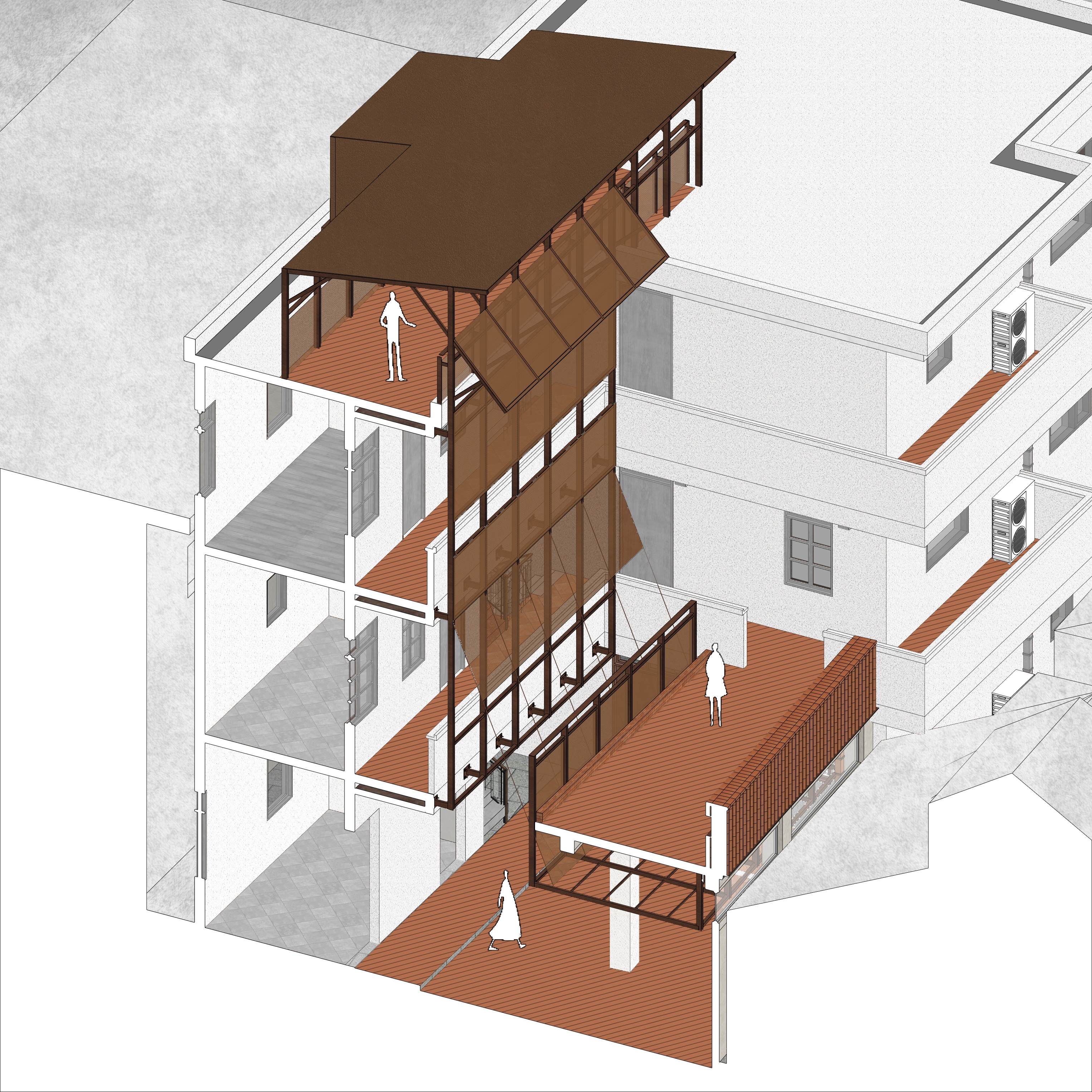- 3번 건물: 기둥 사이에 있던 문과 창을 철거해 안마당과의 연결성을 강화. 옥상은 보강해 전시·활동 공간으로 활용 가능하도록 했다. 계단은 구조 보강 후 보존해 안마당의 시각적 중심축으로 남겼다.