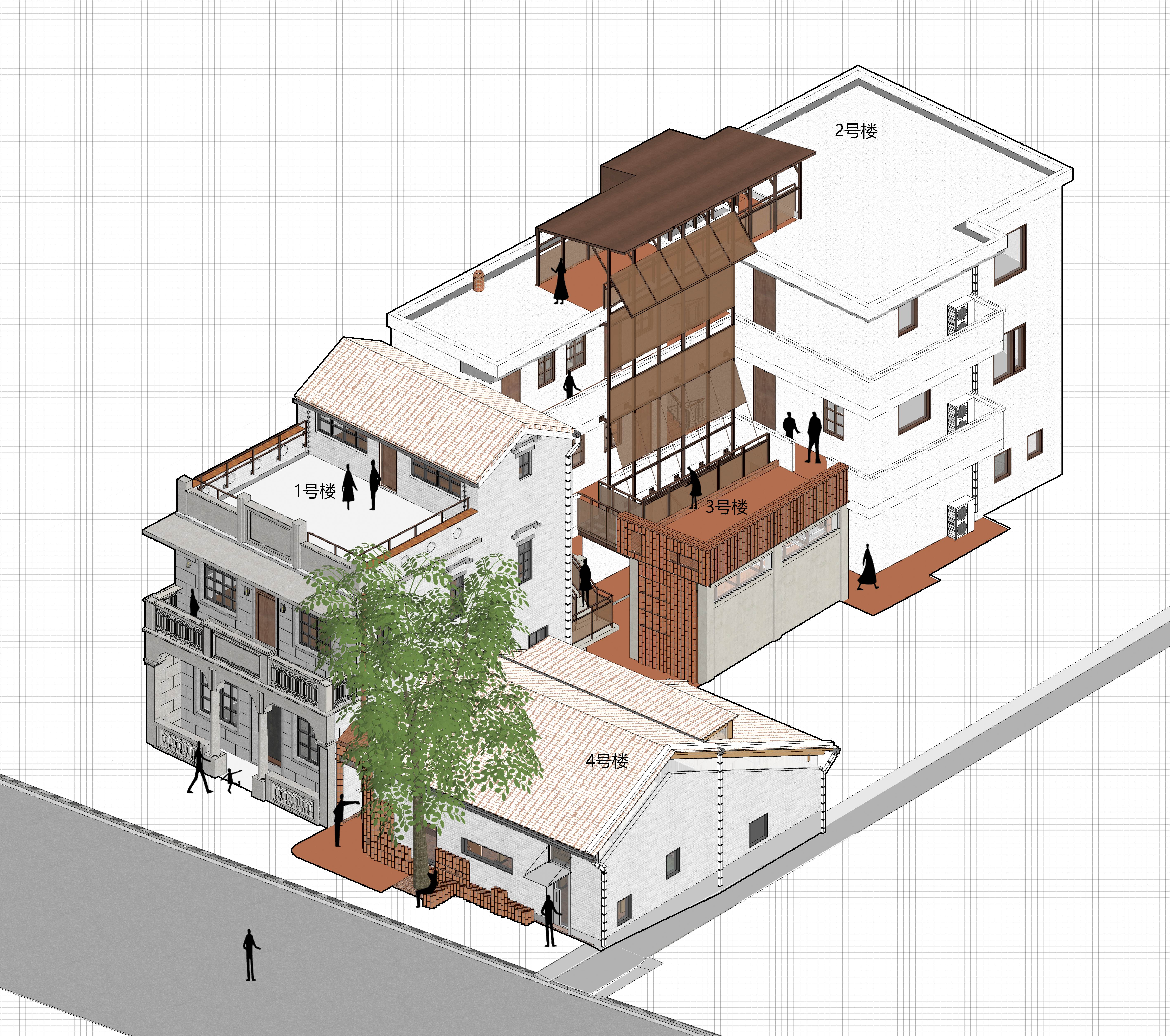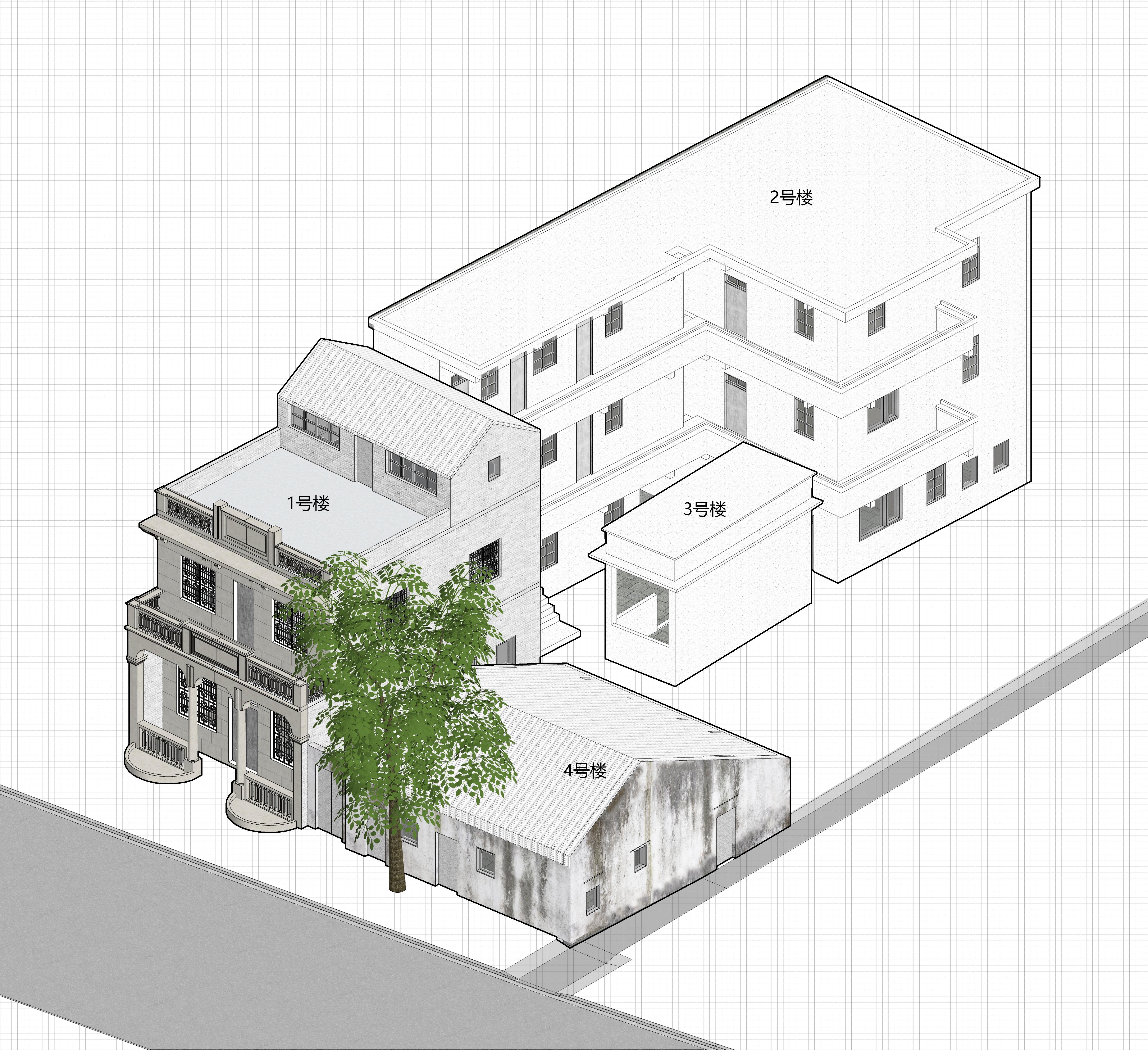 - 1번 건물(전 주강(珠江) 전지부 본부): 외벽 세척과 보수에 집중. 인공석 도장을 제거해 원래의 시멘트 몰탈 마감과 희미한 정치적 구호 흔적을 드러냈다. 부식된 목재는 교체하고 구조 보강을 실시했다.
