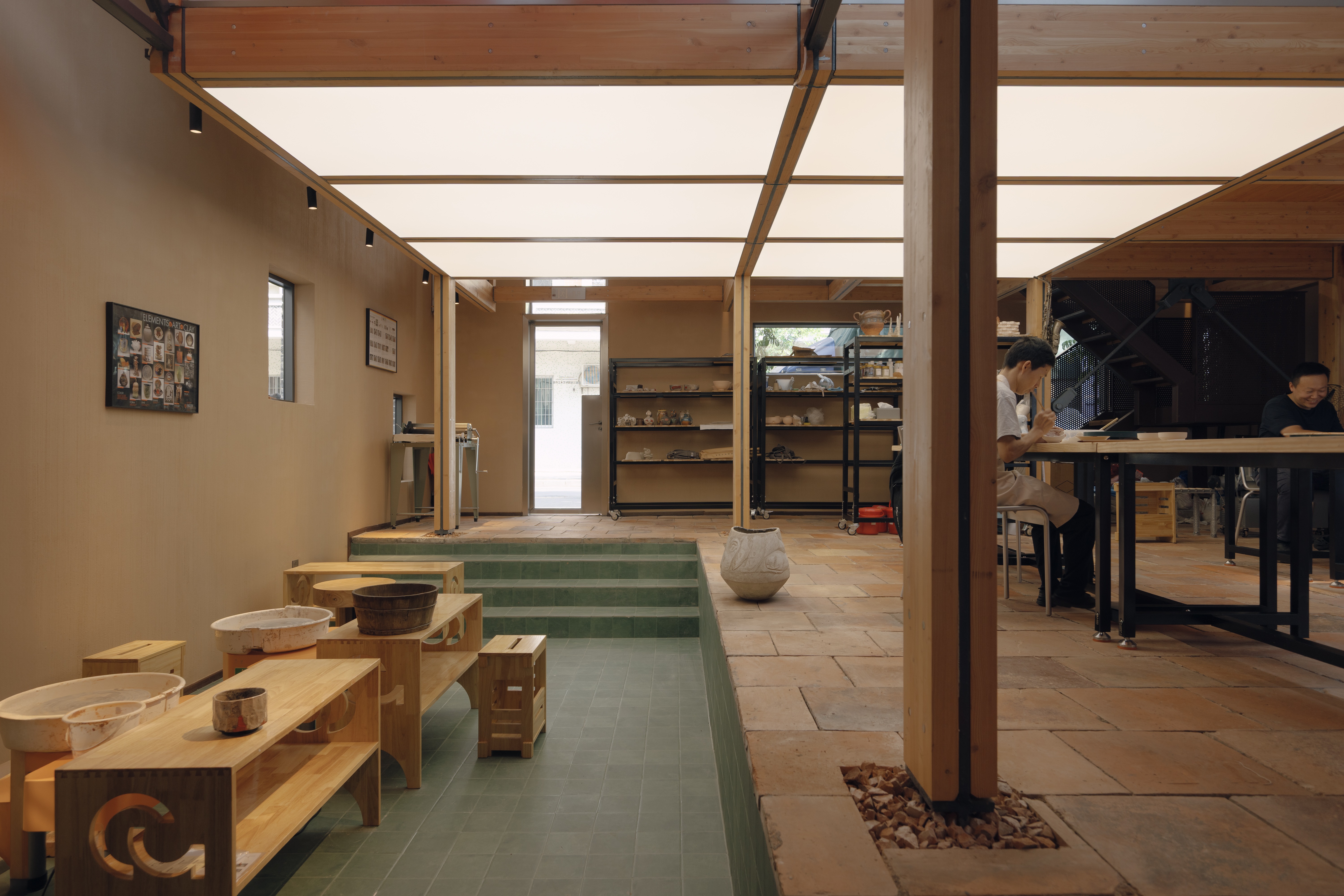 2023년 초, 도예가 리젠션(Li Jianshen)은 포산 난하이구 관야오진 예위안 서로(Yiyuan West Road) 북측에 위치한 다소 눈에 띄지 않는 건물 군락을 이 센터의 부지로 선택했다. 이곳은 마치 세월에 봉인된 듯 조용히 잠들어 있었고, 다시 발견되기를 기다리는 듯한 공간이었다. 관야오는 천 년 전부터 물류와 교역의 길목이었던 만큼, 수십 년간 경찰서·주택 등으로 쓰였던 흔적이 켜켜이 남아 ‘노천 건축 박물관’ 같은 장소로 평가되었다.