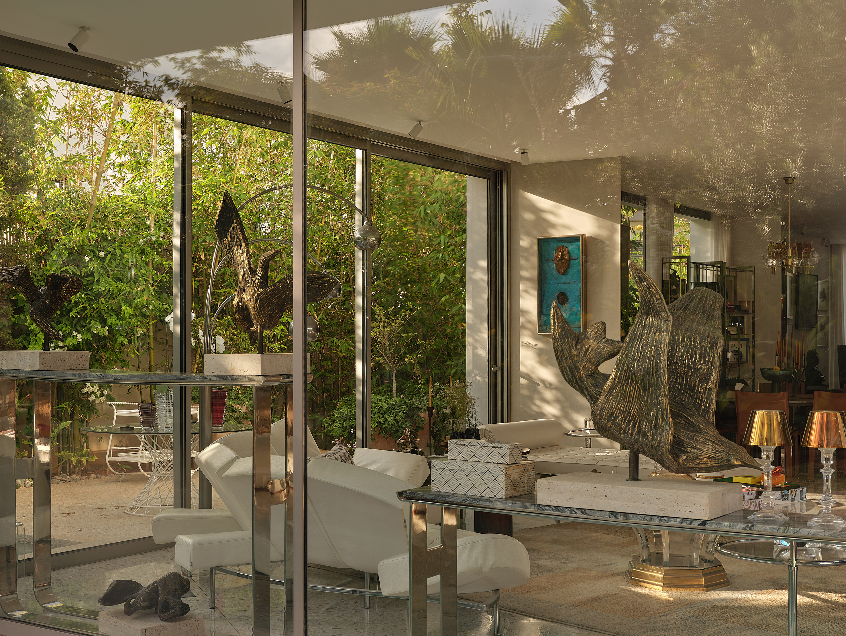 빌라 미로는 카사블랑카의 삼각형 대지 위에 계획되었으며, 의무적인 이격선에 따라 평면의 실루엣이 형성되었다. 이러한 독특한 형태는 목재 격자에 의해 보호된 중심의 나선형 계단을 중심으로 한 구성을 이끌어냈으며, 이 계단은 모든 공간의 핵심이 되었다. 중심 코어는 서비스 공간으로의 접근을 은밀하고 유연하게 조율하면서 가족실을 형성하고, 나머지 공간은 넓고 밝은 리셉션 공간으로 비워둘 수 있도록 했다. 또한 이 코어는 2층의 세 개 침실을 구분하면서도 또 하나의 가족실을 제공한다. 집의 선단에는 수영장이 배치되어 있으며, 대형 유리 슬라이딩 도어를 통해 내부에서도 그 풍경을 경험할 수 있다. 사용된 재료는 절제되면서도 현대적이며, 동시에 따뜻함과 감각적 분위기를 풍긴다. 소유주인 카사블랑카의 예술가는 엄선된 예술 작품과 가구를 더해 집에 특별한 영혼을 불어넣었다.