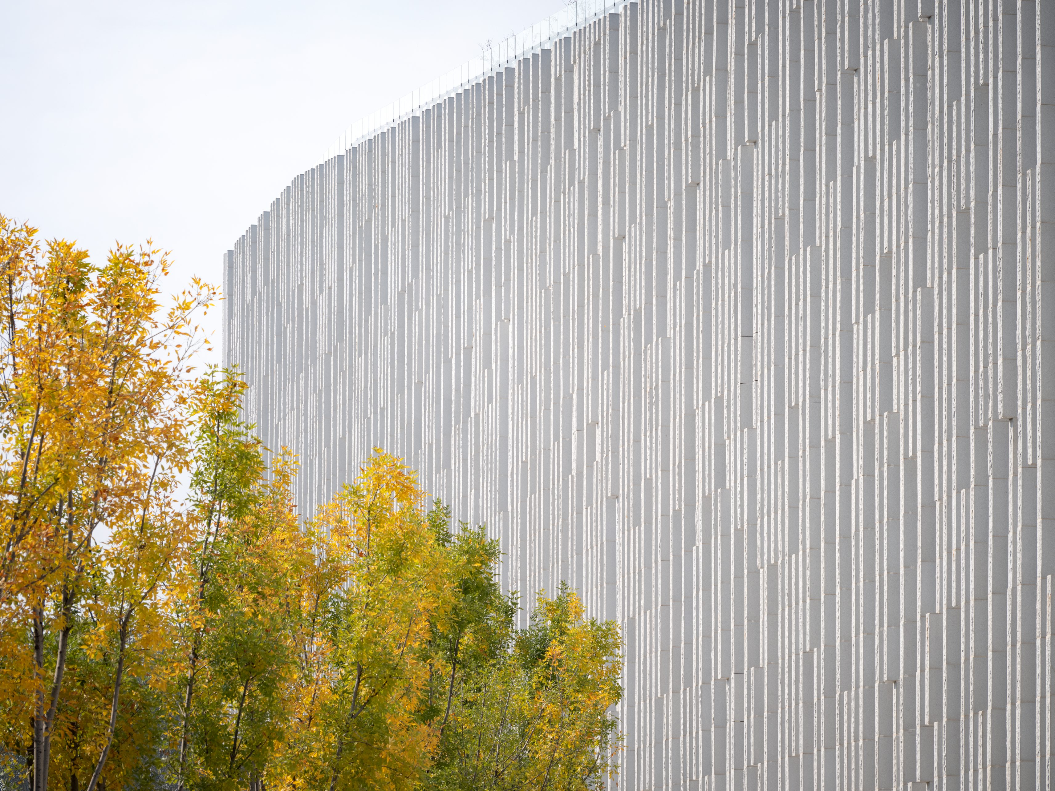 황허 국가문화공원의 중심에 자리한 박물관은 강가의 완만한 지형에서 유선형으로 솟아오르며 주변 녹지를 하나의 전체로 묶었다. 공원의 연장선으로 계획된 박물관의 녹화 옥상은 40m 높이 전망대로 이어져 북쪽의 황허와 남쪽의 정저우 시내를 조망할 수 있다. 옥상에는 산책로를 따라 피크닉 공간, 야외 극장, 전시 공간이 마련되어 관람객이 토착 식생과 함께 강 특유의 경관을 경험하도록 했다.