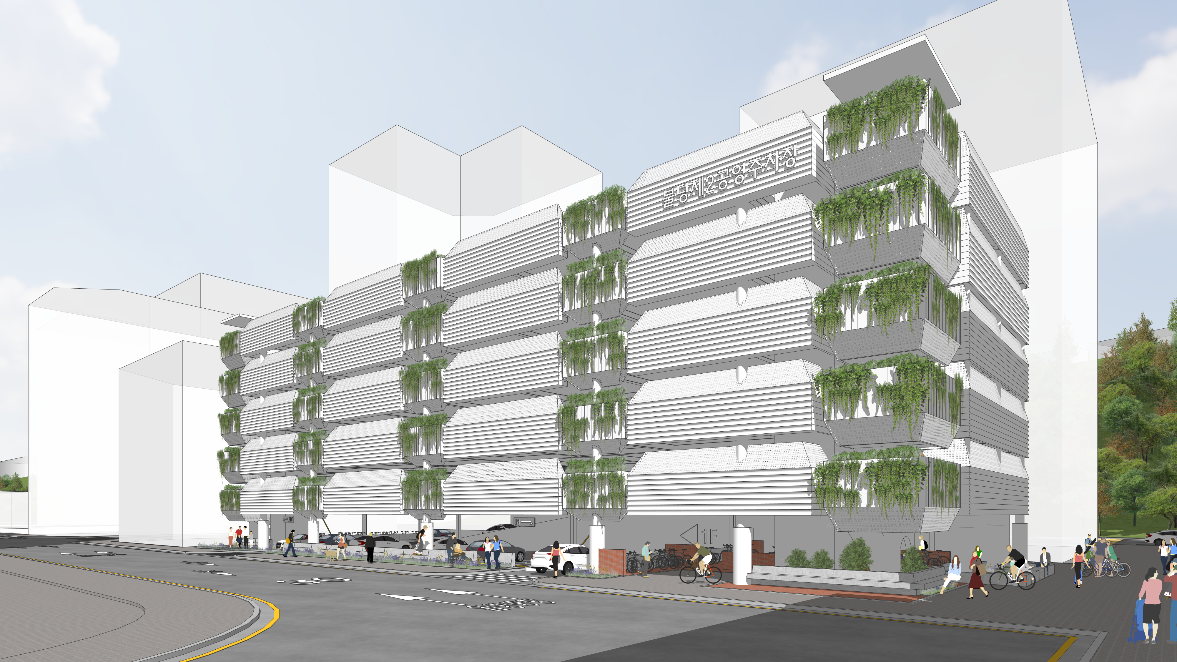 주차장 신축으로 인한 소음·공해 등 부정적 영향을 차단하고, 채광·환기·녹지 등 긍정적 영향은 수용한다. 상업시설과 학원가가 혼재된 도시 맥락 사이에서 건축물은 단순한 주차시설을 넘어 완충의 매개체로 작동한다. 차량 이용자의 쾌적성을 최우선하는 배치, 도시 피해를 최소화하는 입면, 틈을 만드는 조경, 주민을 위한 개방형 프로그램이 이를 뒷받침한다.