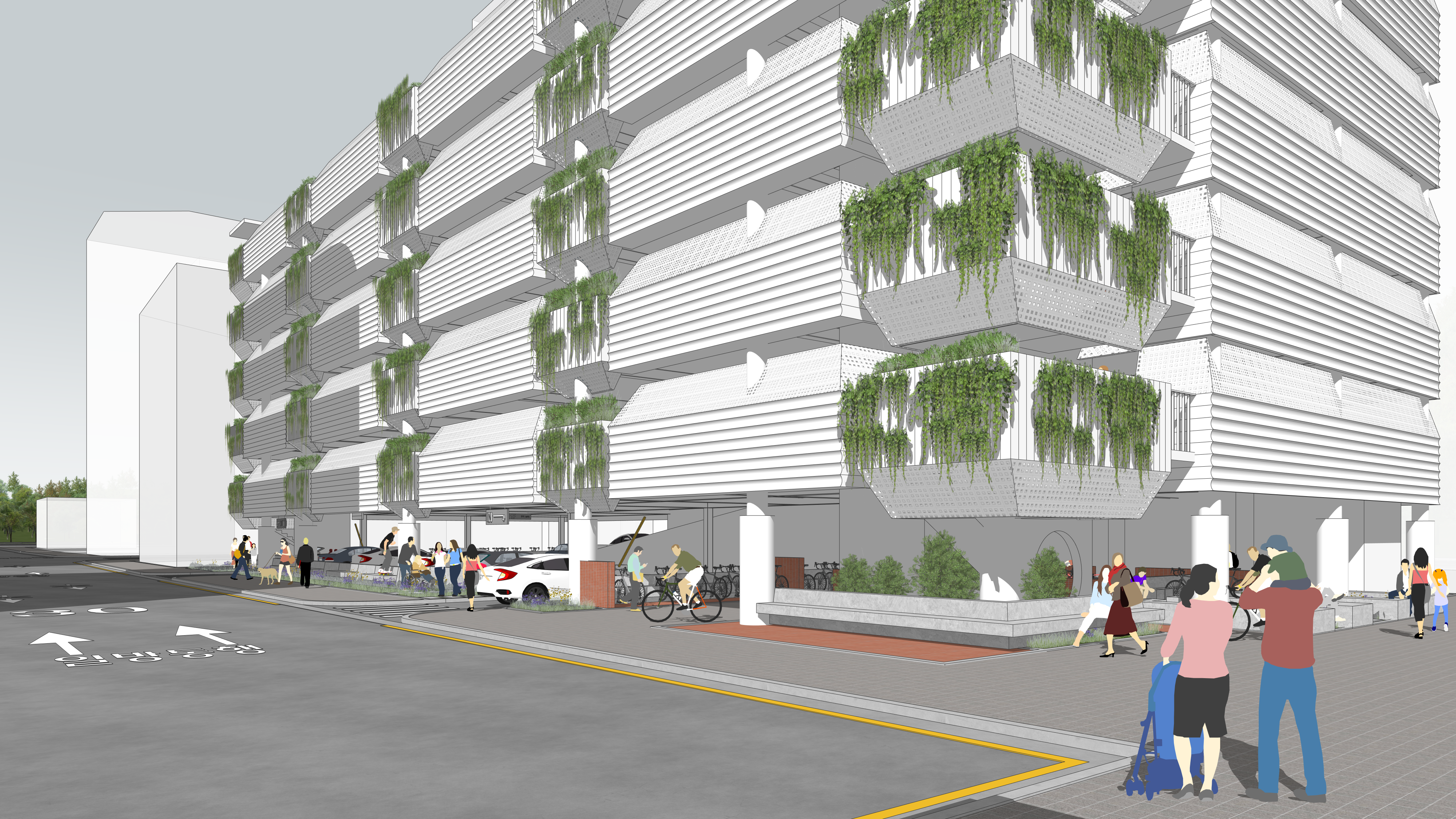 주차장 신축으로 인한 소음·공해 등 부정적 영향을 차단하고, 채광·환기·녹지 등 긍정적 영향은 수용한다. 상업시설과 학원가가 혼재된 도시 맥락 사이에서 건축물은 단순한 주차시설을 넘어 완충의 매개체로 작동한다. 차량 이용자의 쾌적성을 최우선하는 배치, 도시 피해를 최소화하는 입면, 틈을 만드는 조경, 주민을 위한 개방형 프로그램이 이를 뒷받침한다.