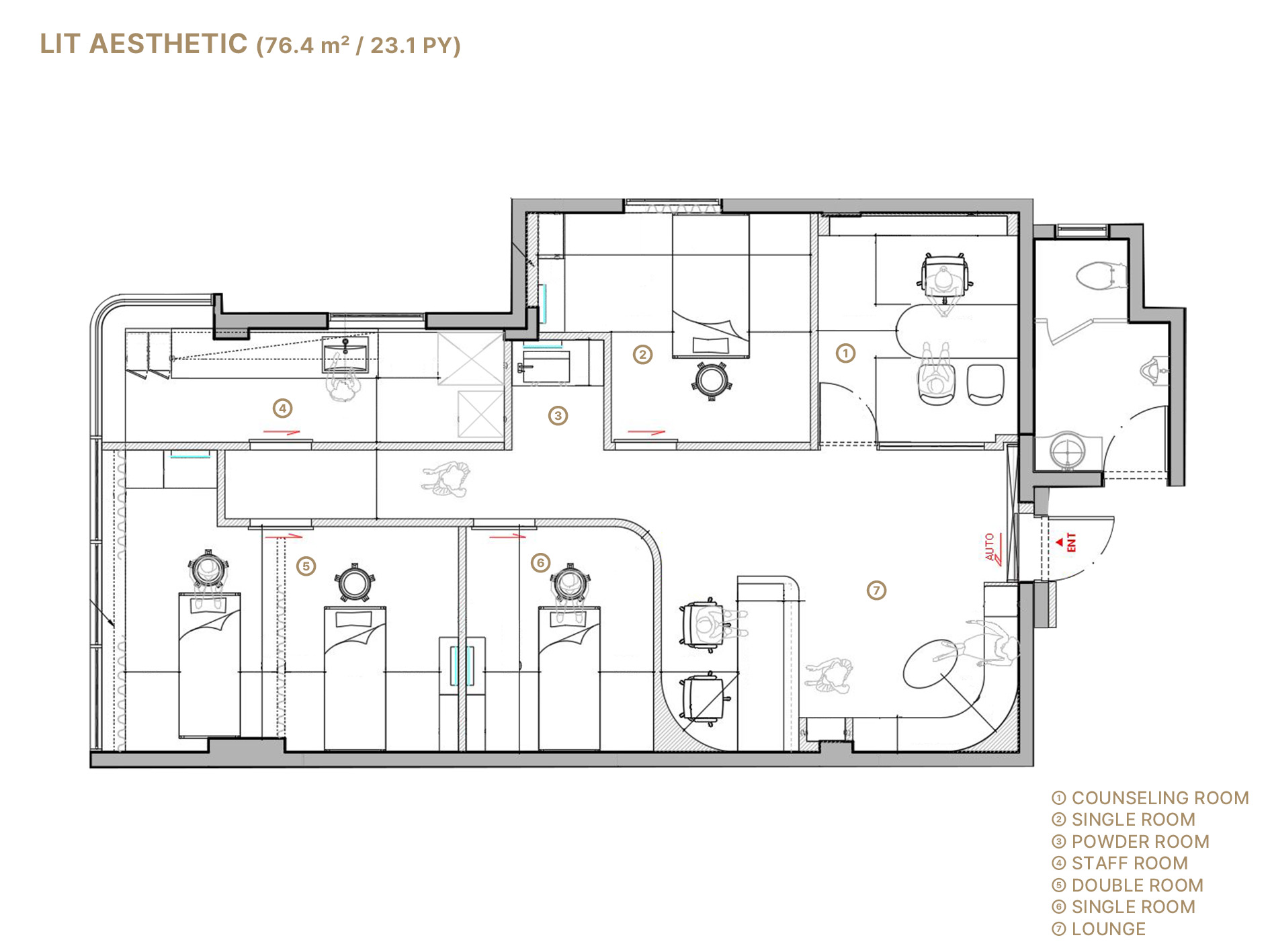 LIT 에스테틱은 뷰티 케어라는 기능성과 공간의 분위기, 객 경험의 조화를 균형적으로 고려하여 설계했다. 뉴트럴 톤과 부드러운 텍스처를 사용해 편안한고 차분한 공간감을 구현했으며, 고객이 몸과 마음을 온전히 맡기고, 오랜 시간 머물어도 심리적인 안정감을 느낄 수 있도록 디자인했다.