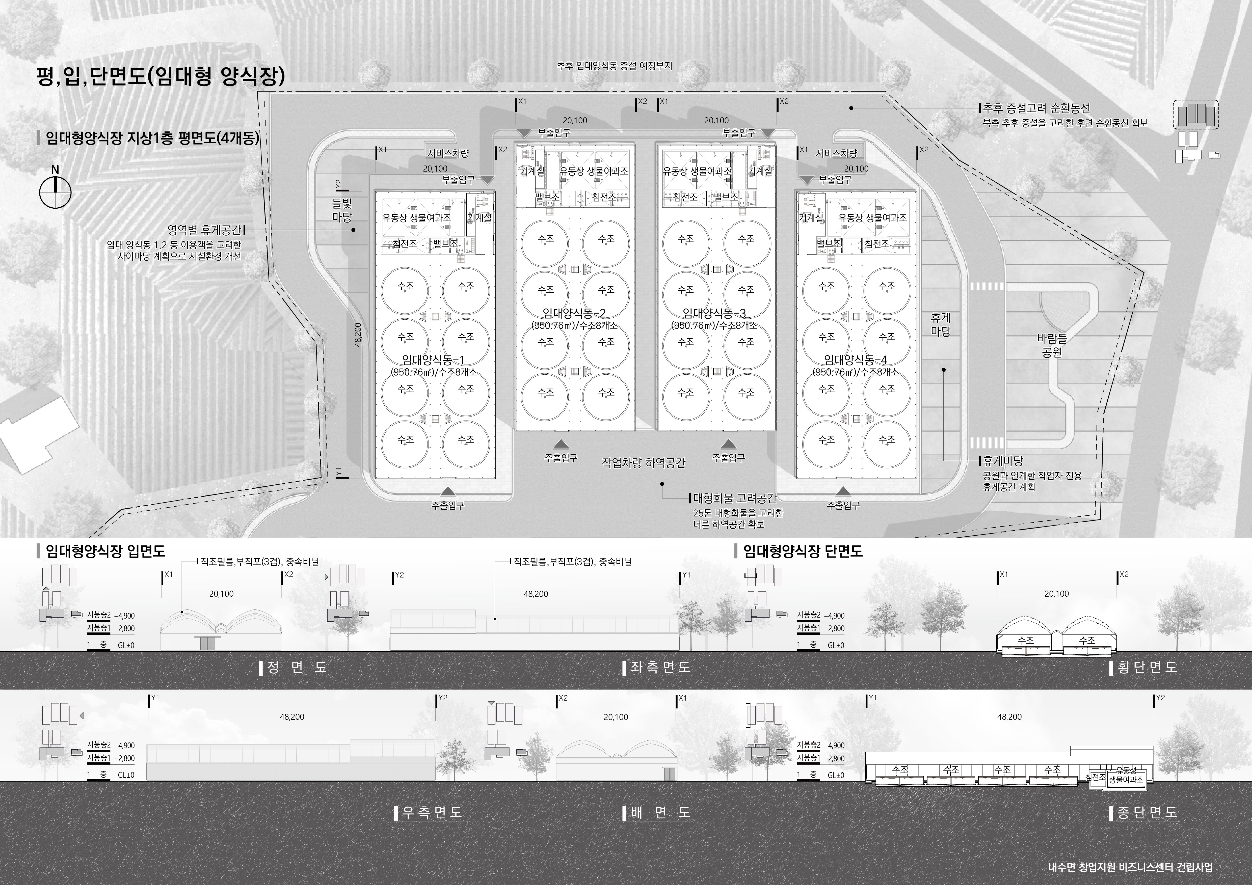 내수면 양식업은 노동집약적 구조로 인해 청년층의 유입이 저조하며, 산업 지속성에 한계를 보이고 있다. 이를 해결하기 위해 수요자 맞춤형 기술 교육, 임대형 스마트 양식장, 고부가가치 창업 아이템 개발이 요구된다. 우리는 청년이 기술을 배우고 창업할 수 있는 커뮤니티 중심의 비즈니스센터를 조성함으로써, 내수면 양식업을 미래 성장산업으로 전환하고 지역에 활력을 불어넣는 공간 혁신을 실현하고자 한다.