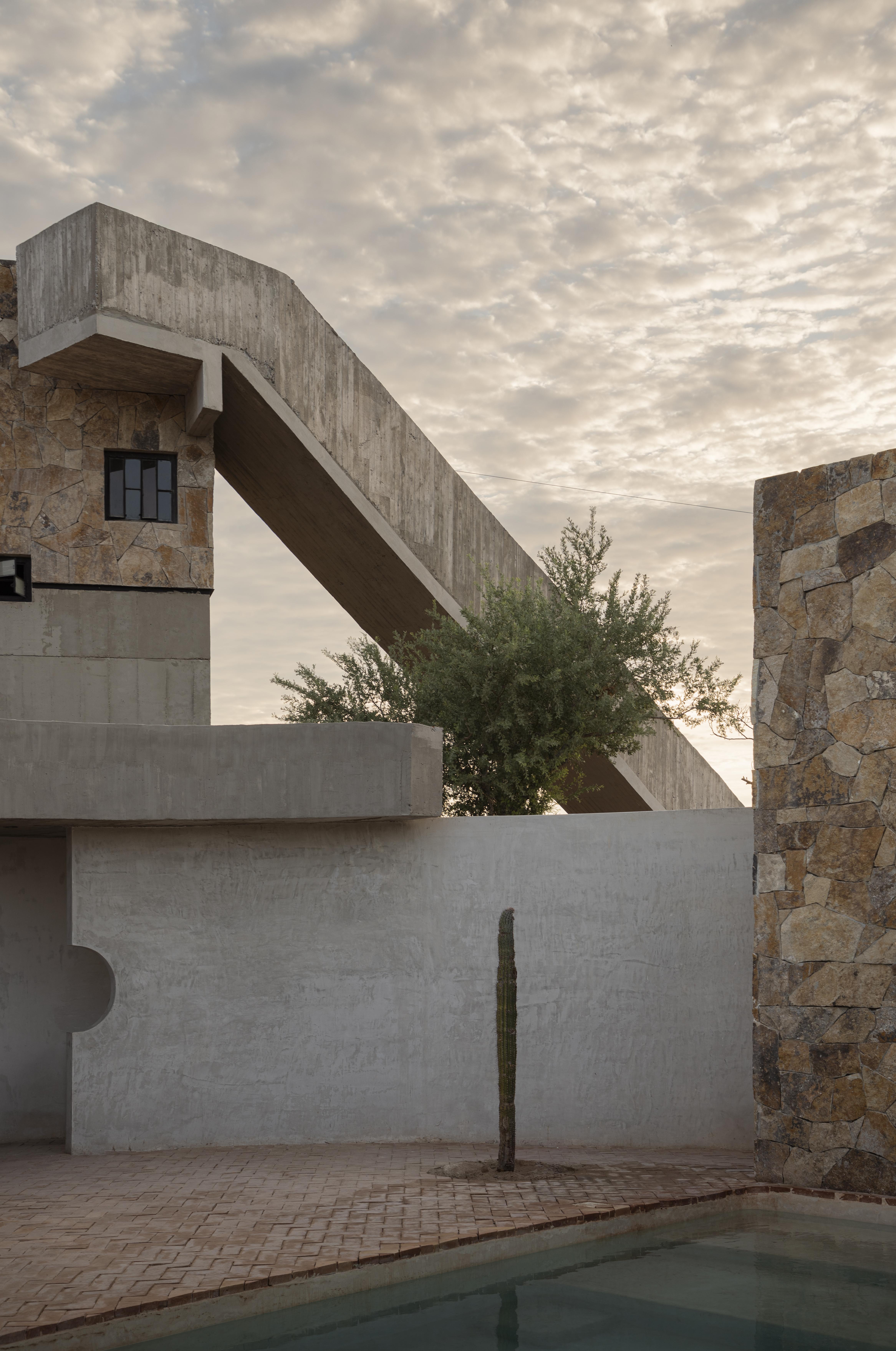 높은 선인장, 굵은 코끼리나무, 뒤틀린 사막 덤불들 사이에 자리 잡은 집은, 땅의 질서에 반응하며 전통적인 거실의 개념을 재정의한다. 1층 전체와 정원, 그리고 모든 나무가 하나의 열린 생활 공간으로 작동한다.