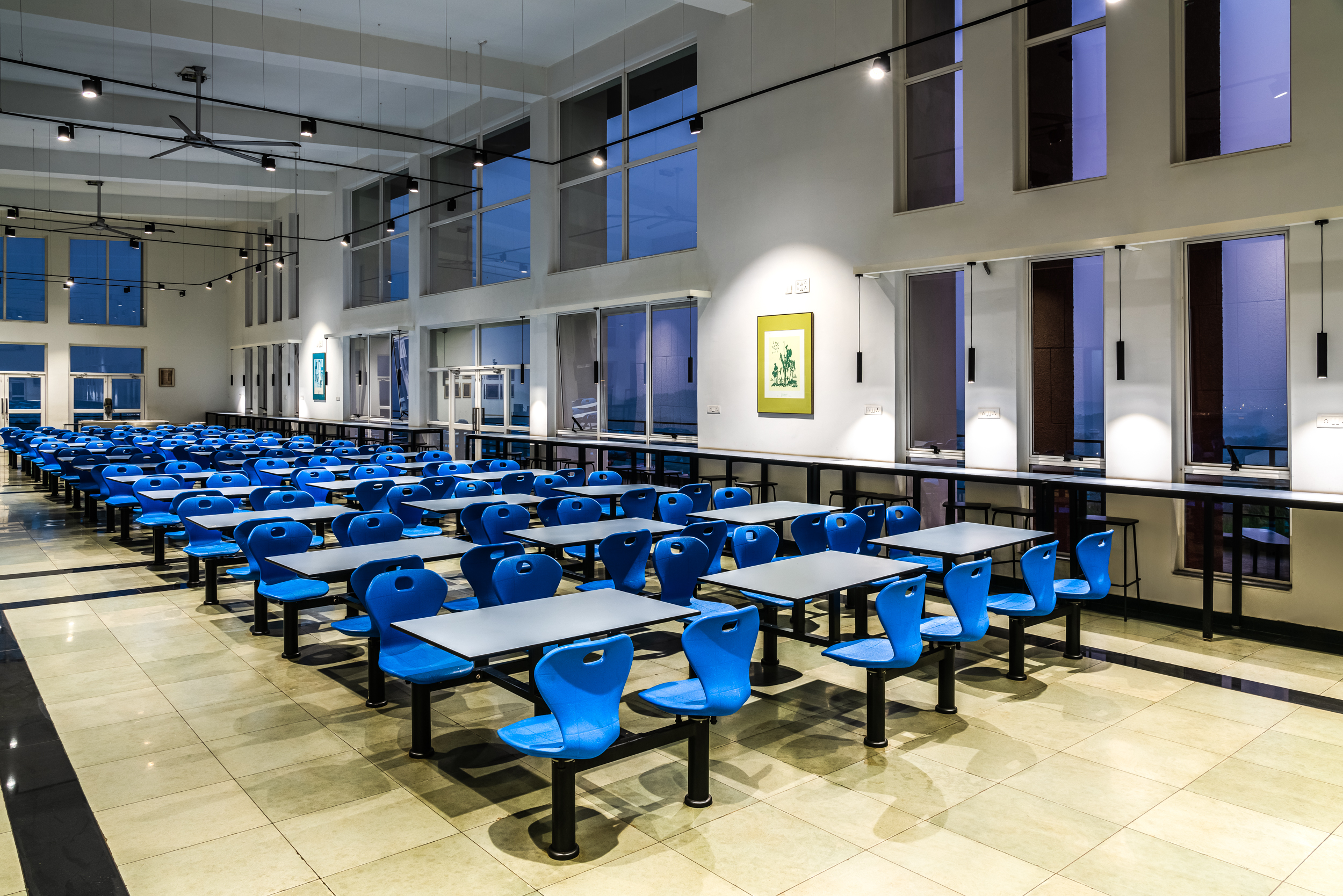 캠퍼스의 핵심에는 학사동(Academic Block) 이 위치한다. 방문객이 처음 마주하는 이 건물은 집회, 행진, 학생 교류가 이루어지는 대형 광장을 중심으로 구성된다. 높은 포털이 열린 중정으로 이어지고, 그 너머로는 주변 산맥이 프레임처럼 펼쳐진다. 중정을 둘러싼 교실, 교수실, 회의실, 학장실 등은 오픈 테라스와 휴식 공간을 두어 자연 속에서의 사색과 교류를 가능하게 한다.