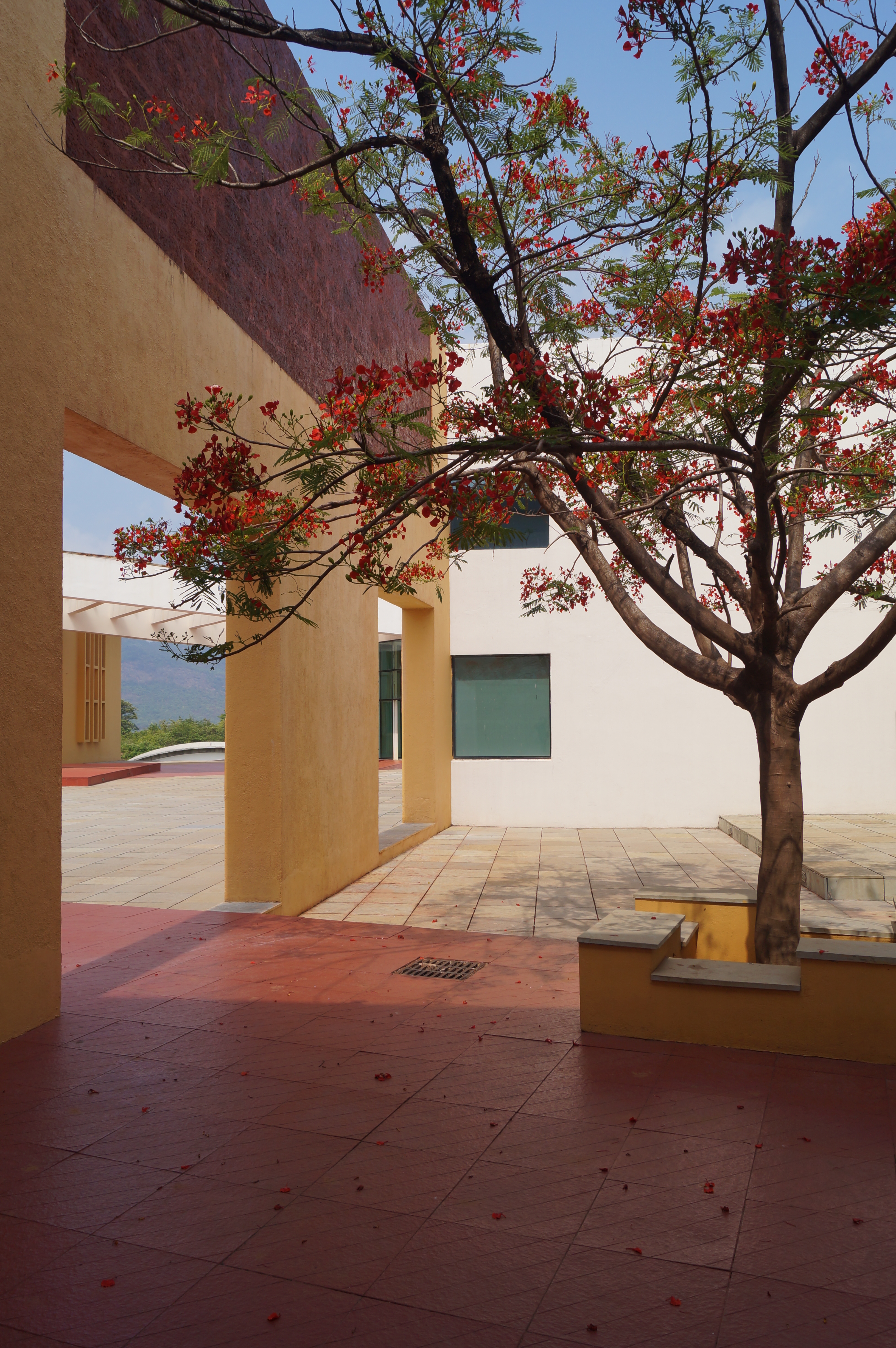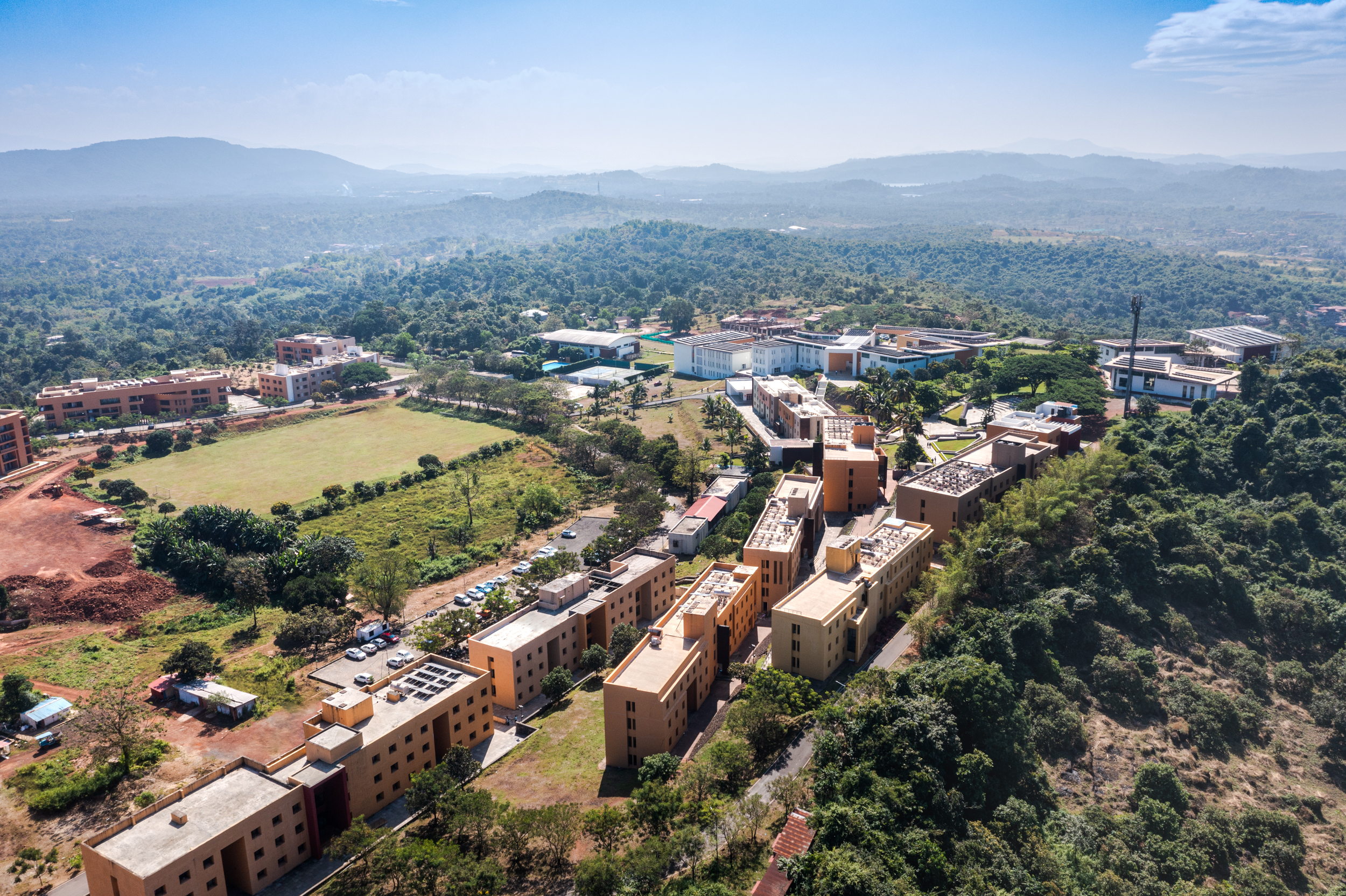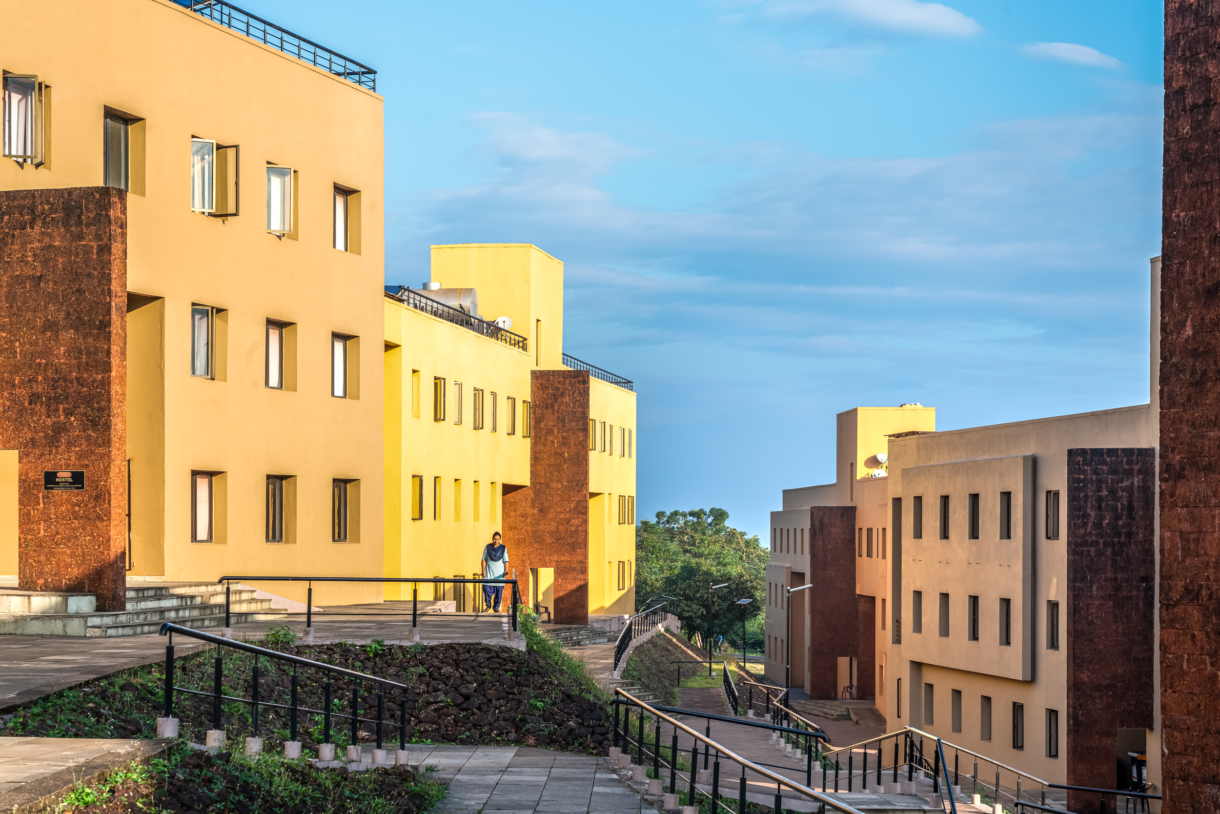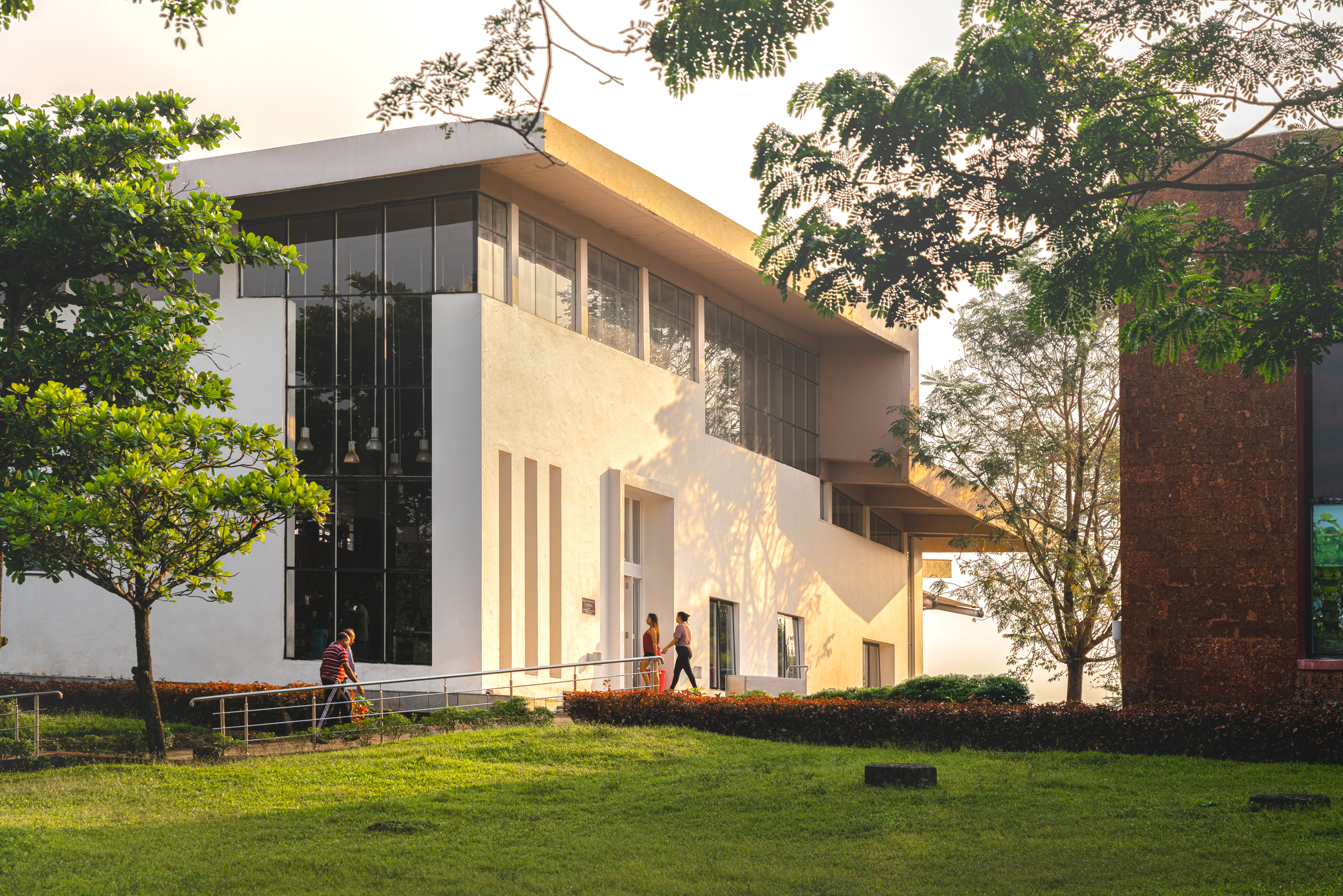 서부 가츠 산맥의 기슭, 50에이커(약 20만㎡) 부지 위에 자리한 고아 경영대학(Goa Institute of Management) 캠퍼스는 건축·조경·지속가능성이 유기적으로 통합된 현대적인 교육 환경이다.