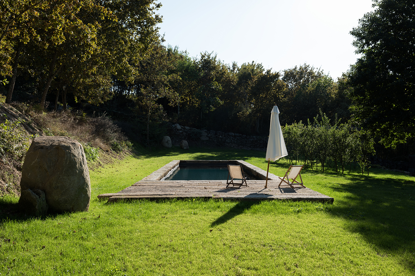 프로젝트는 기존 건물을 복원하면서 이를 주거와 사회적·여가 공간으로 변모시키는 데 초점을 맞췄다. 기존의 입면과 높이를 유지하면서, 현대적 주거 환경에 맞는 새로운 공간을 구성했다. 넓은 창과 문을 통한 공간적 개방감이 자연 채광과 환기를 보장하며, 자연 자원을 적극 활용한 옛 건축 지혜를 드러낸다. 중앙 난방 시스템이 도입되었으나, 기존 공간의 성격을 해치지 않도록 신중하게 설계되었다. 전기 설비는 벽을 훼손하지 않고 린넨으로 감싼 인증된 케이블을 사용해 외부에 설치되었으며, 모든 장비는 도자기로 제작되었다. 다른 기반 시설들은 천장에 집중 배치되었고, 상층에서는 지붕 속에 설치되어 목재 천장을 해치지 않도록 했으며, 하층에서는 천장 내부에 배치하여 수백 년 된 바닥을 보존할 수 있도록 하였다. 훈제실은 완전히 복원되었고, 놋쇠로 제작된 벽난로가 추가되었다. 화장실이었던 공간에는 두 개 층을 연결하는 계단이 설치되었고, 새로운 욕실은 기존 공간의 창을 활용하면서도 원래의 구조를 쉽게 복원할 수 있도록 설계되었다. 하층에 있던 동물 우리와 농기구 보관 공간은 정교한 목공 작업을 통해 새롭게 조성되었으며, 전통적 분위기를 유지하면서도 현대적 편안함을 제공한다. 구조 보강을 위해 농장에서 말라 있던 밤나무들을 재활용하여 기둥과 보를 제작하였다. 창틀 역시 전통적 방식을 따르면서 밤나무를 이용해 제작되었다. 수영장은 마른 저수지를 해체한 화강암을 재활용해 만들었으며, 전통 석조 기술이 반영된 절묘한 접합부를 통해 과거와 현재의 긴장감 속에서 새로운 균형을 찾았다.