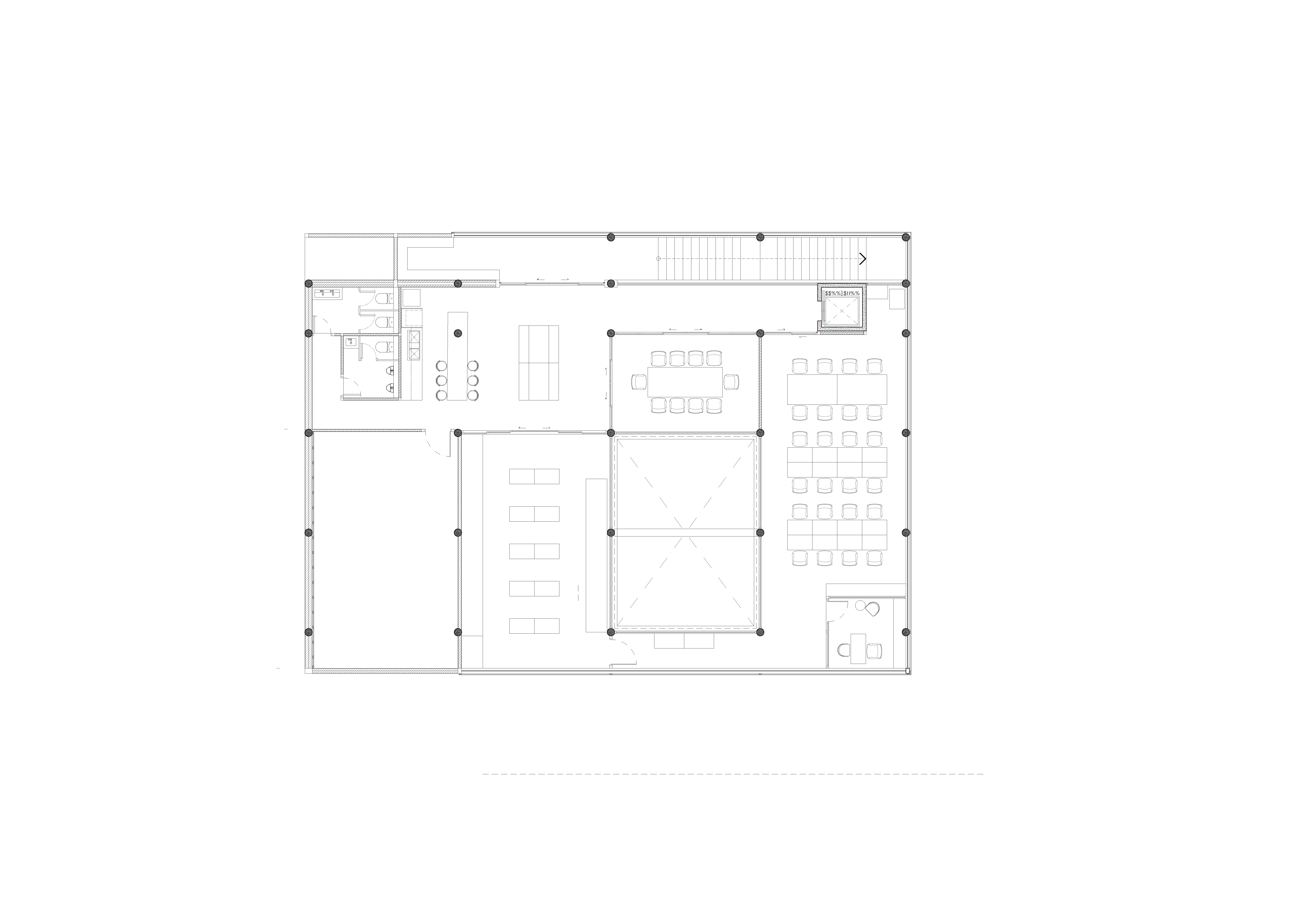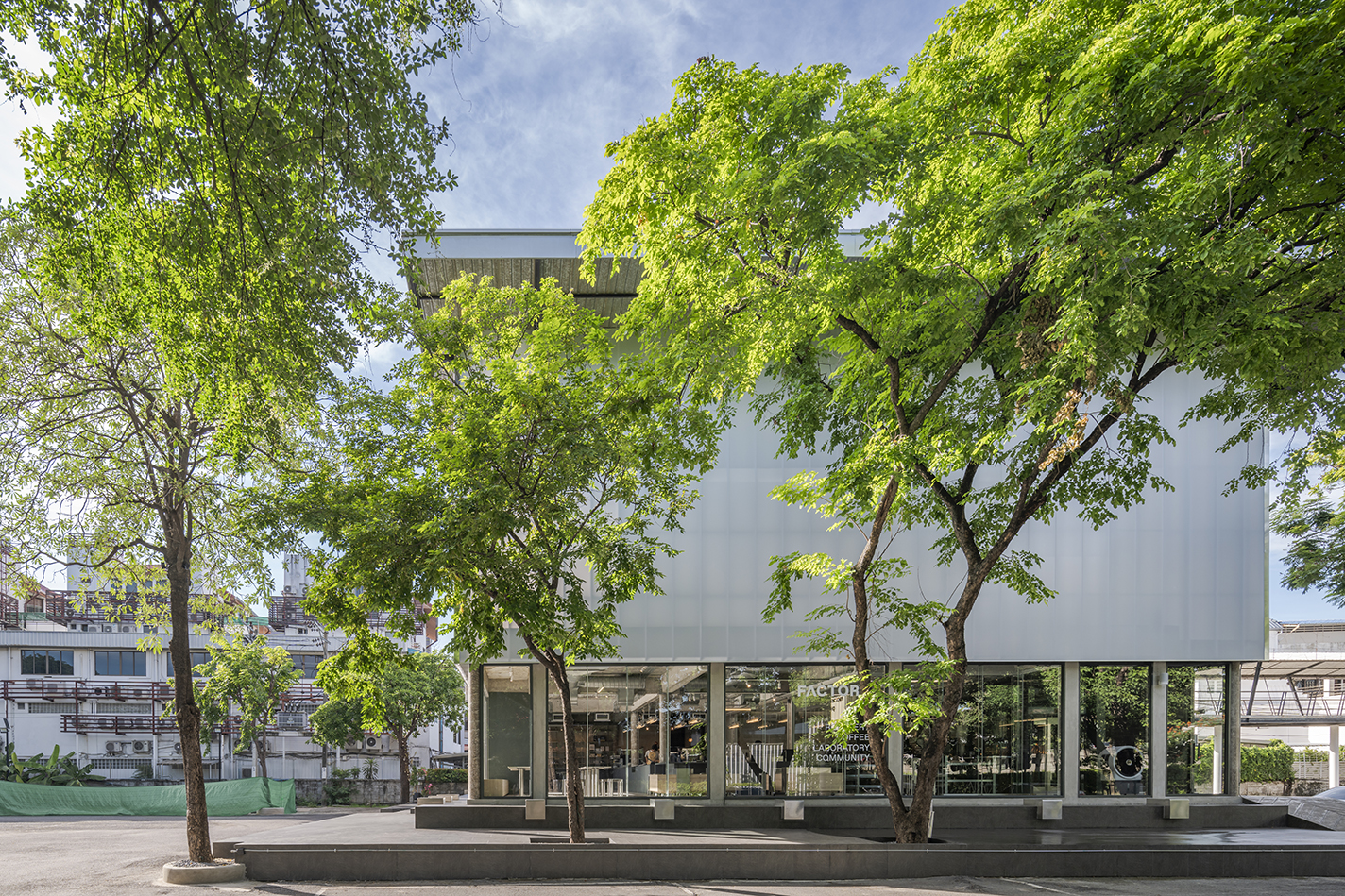 이전에는 폐쇄적이고 답답했던 구조가, 세 면의 벽을 개방하고 외관 전체를 반투명 폴리카보네이트로 감싸는 방식으로 재탄생했다. 이 소재는 햇빛을 부드럽게 확산시키는 동시에 우수한 단열 성능을 갖추고 있다. 2층에는 천창 형태의 개구부(보이드) 를 만들어, 자연광이 1층 카운터까지 깊게 스며들도록 하여 구조적 효율성과 공간적 개방감을 모두 확보했다.