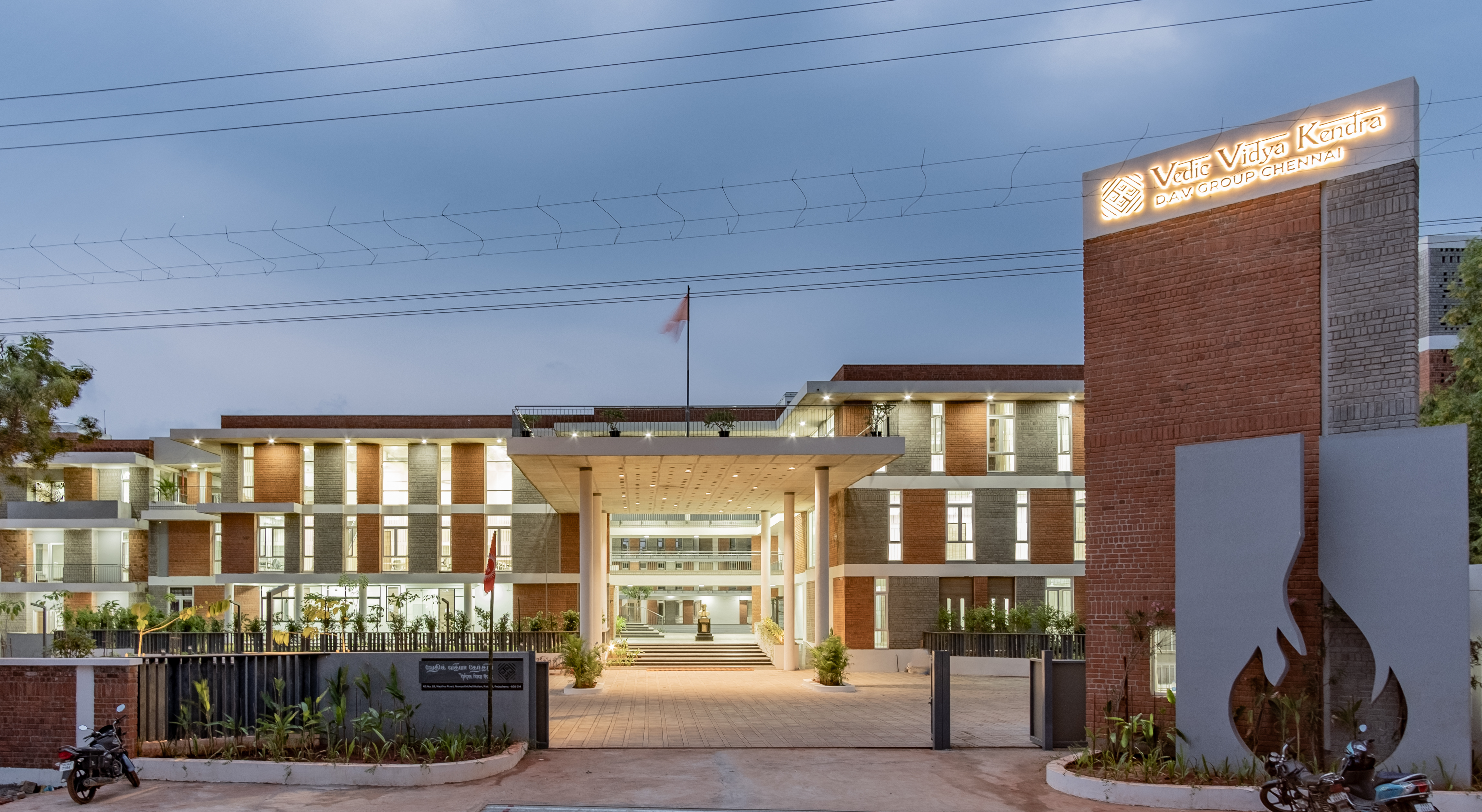 베딕 비디야 켄드라는 자기 학습과 발견, 웰빙, 성장을 촉진하도록 설계되었다. 건축 재료와 공간, 모든 형식이 교육, 영성, 공동체의 가치를 구현하도록 구성되었다.