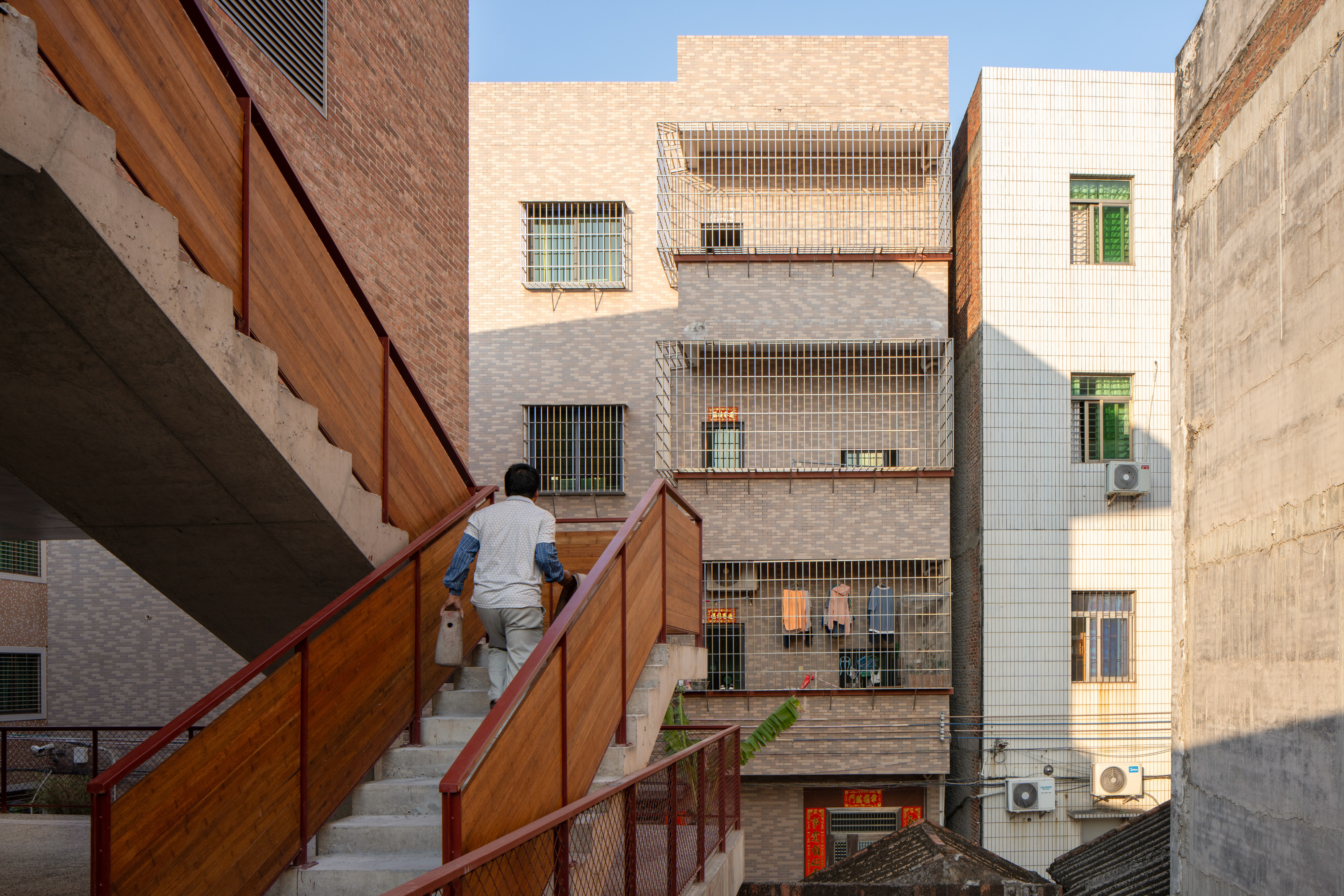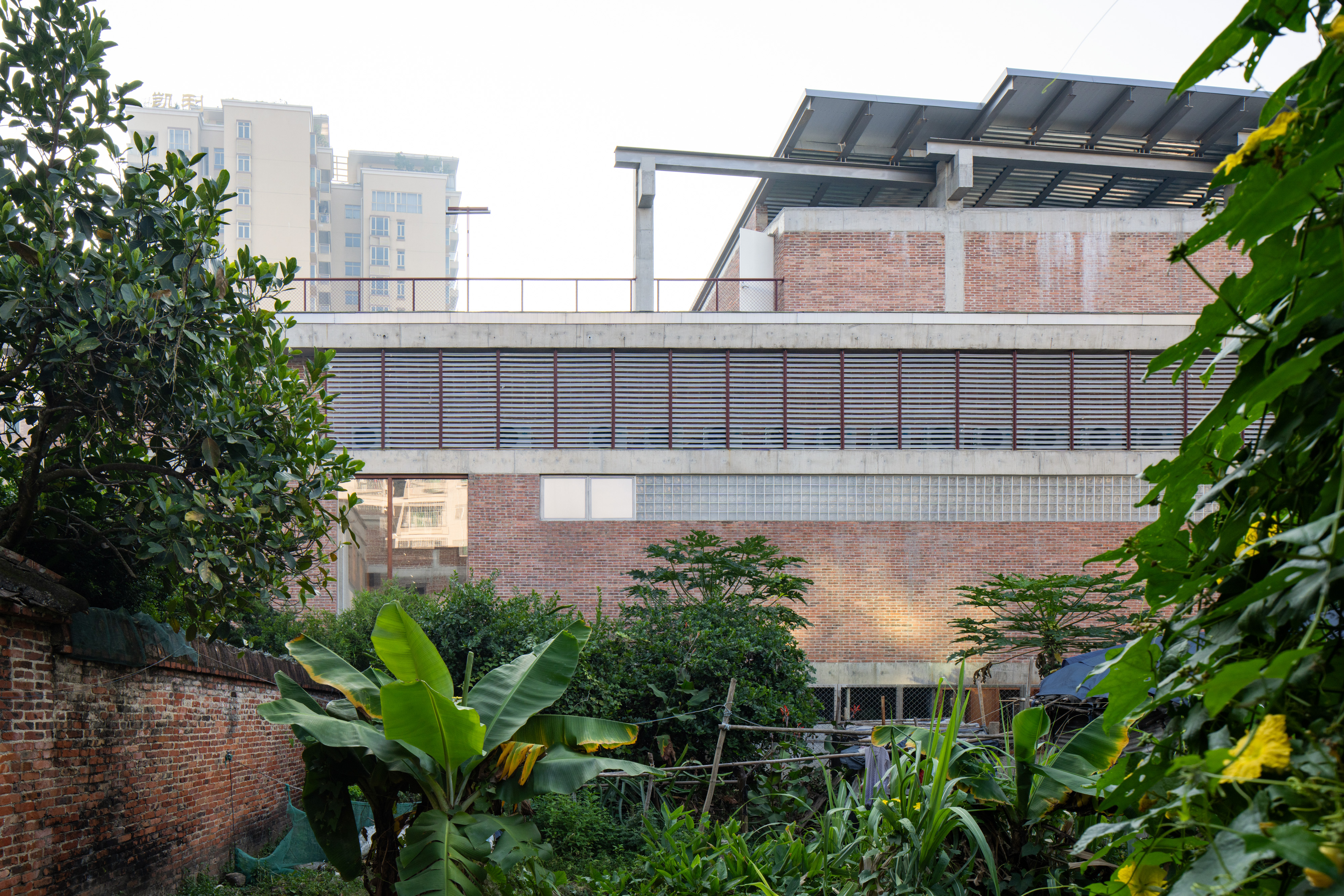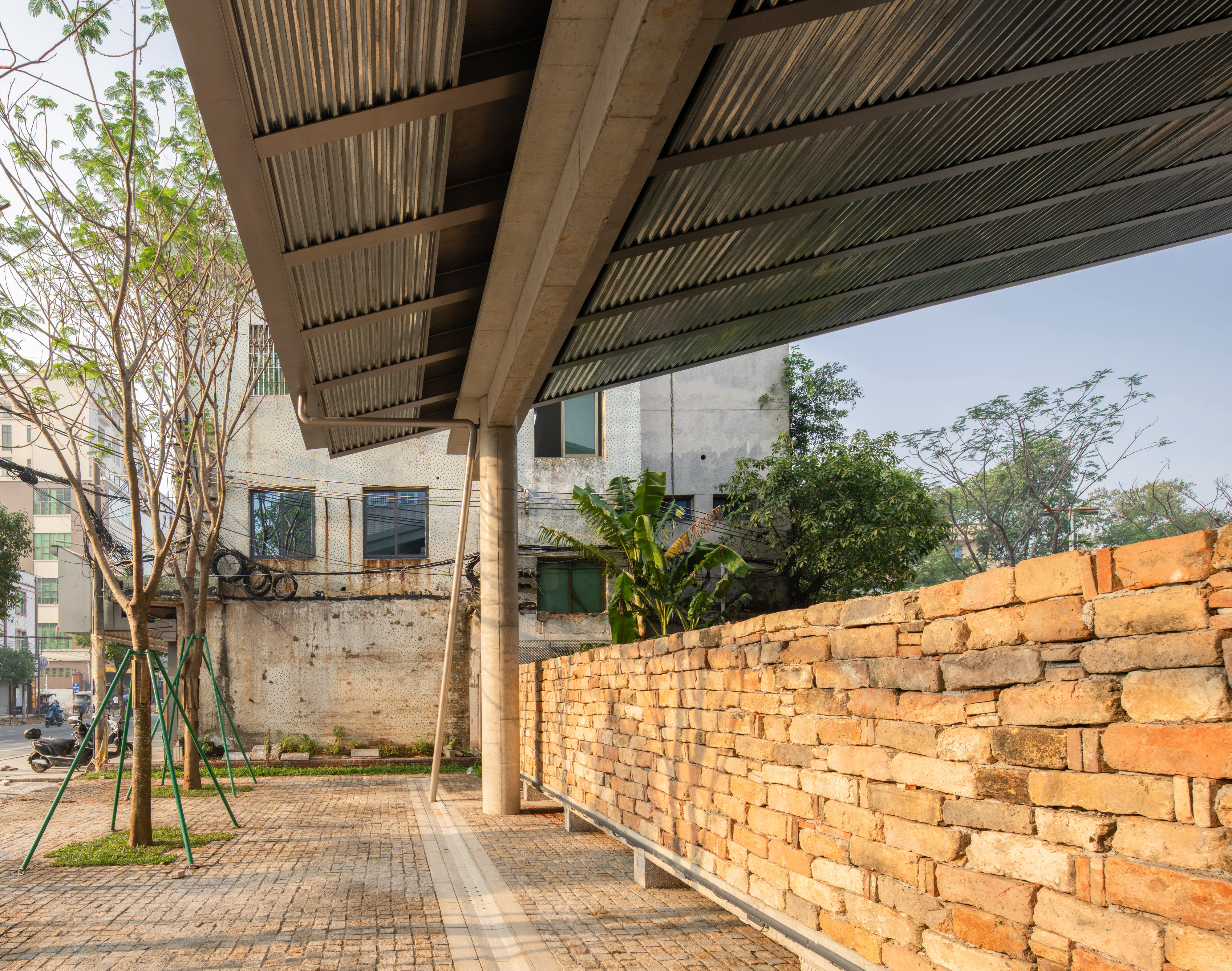 건축가는 공간적 프로토타입을 통해 문화적 기억을 표현한다. 메인 스트리트를 향해 낮게 드리운 처마는 사찰의 툇마루를 연상시키며, 올라가는 계단과 점점 높아지는 지붕은 전통 사찰의 감성적 공간 구성을 반영한다. 지붕의 철골 구조와 콘크리트 본체 사이의 분리감은 구조적 요소를 노출하면서도, 조상당(祖堂) 목구조의 상징을 암시한다. 입구 전면에는 명나라 시대 벽돌 836장이 장식되어 있으며, 그 아래에는 옛 성벽 터가 남아 있어 ‘고고학적 전시’의 내러티브를 통해 장소의 시간적 층위를 드러낸다.