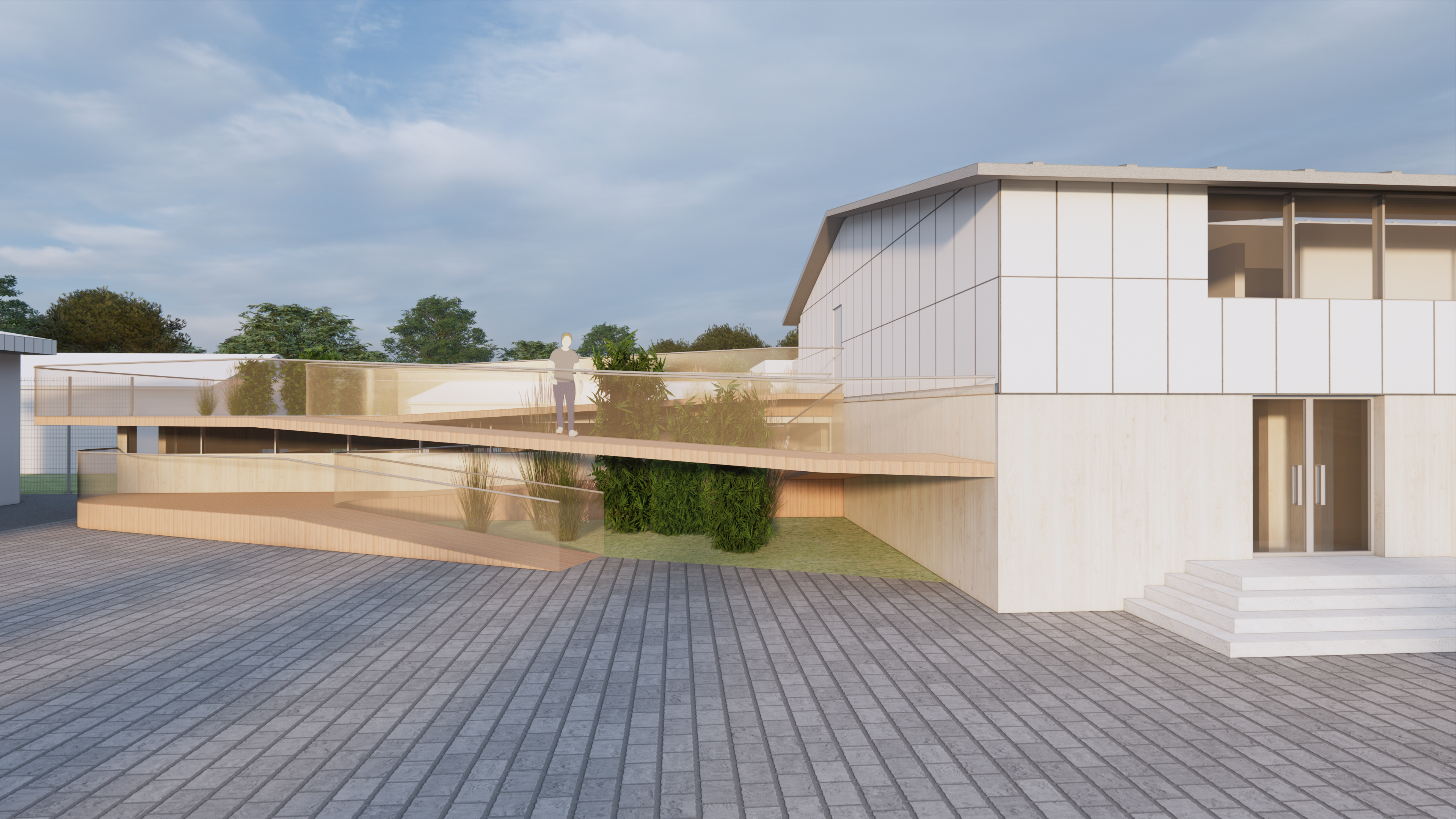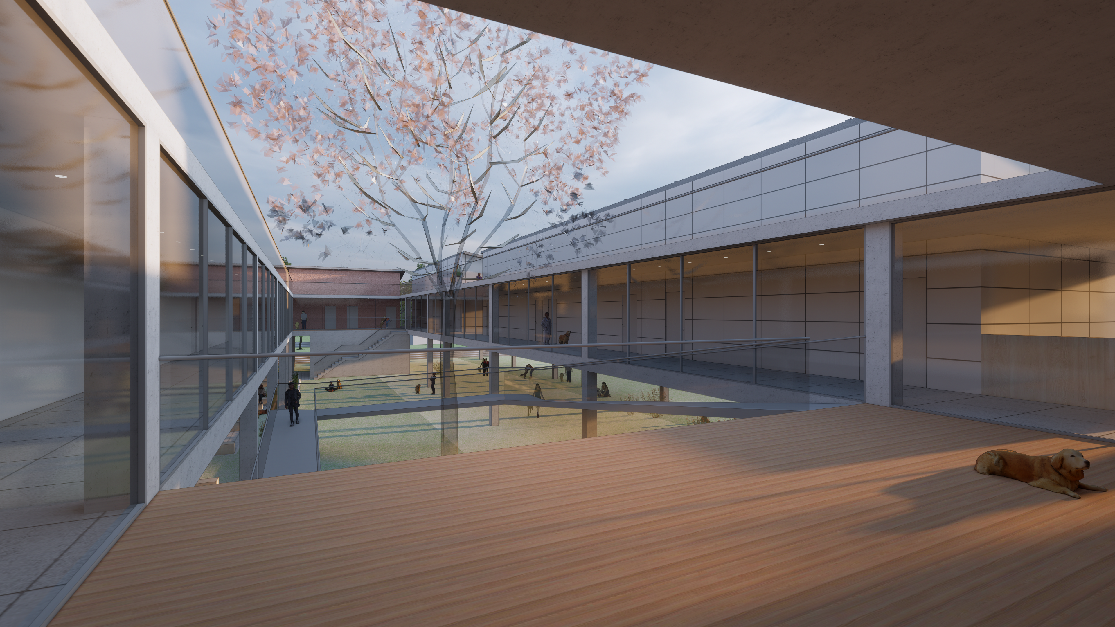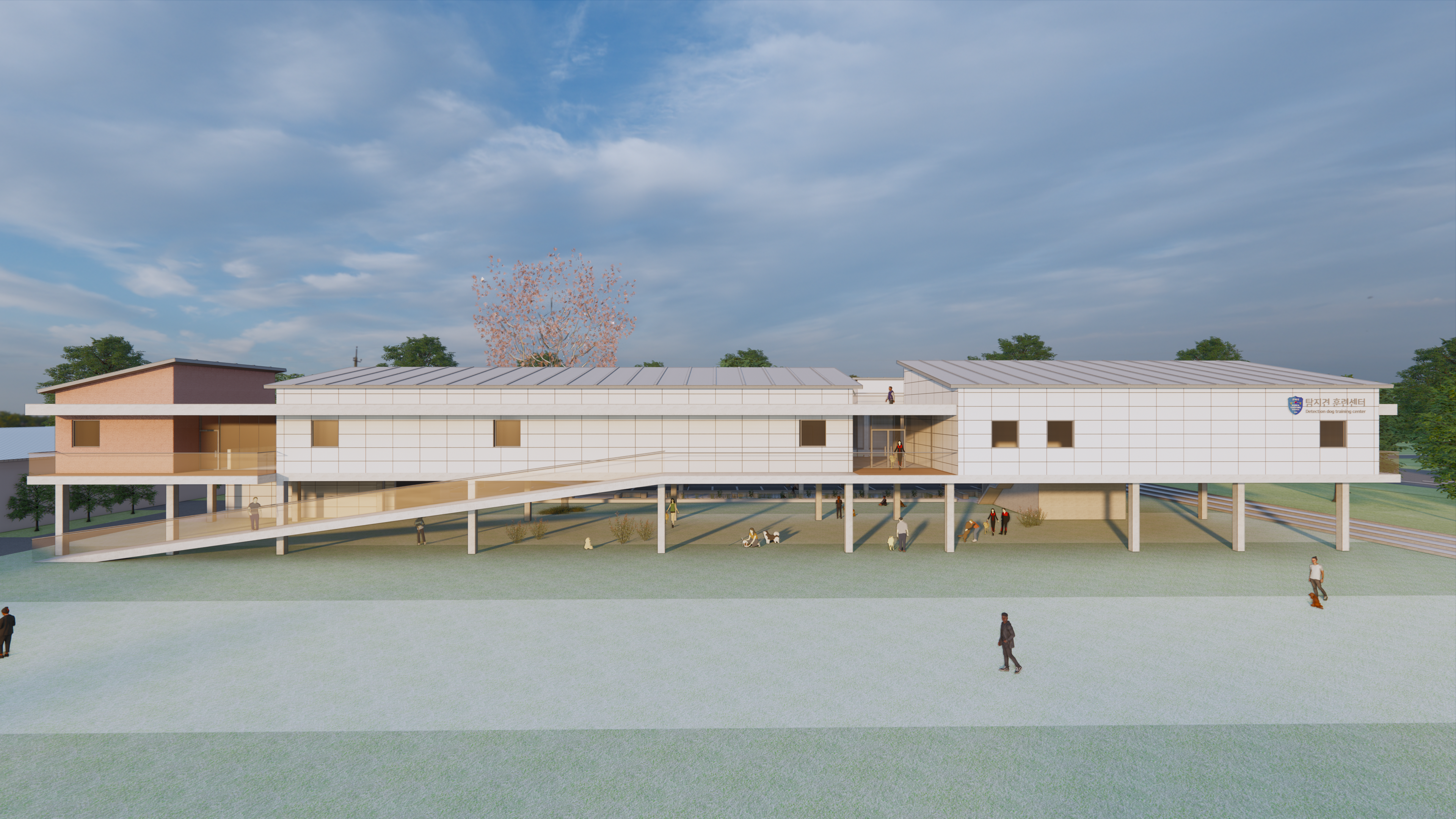 단지의 외부공간과 건물이 유기적으로 연계되며, 각 공간이 자연스럽게 이어지는 탐지견훈련센터