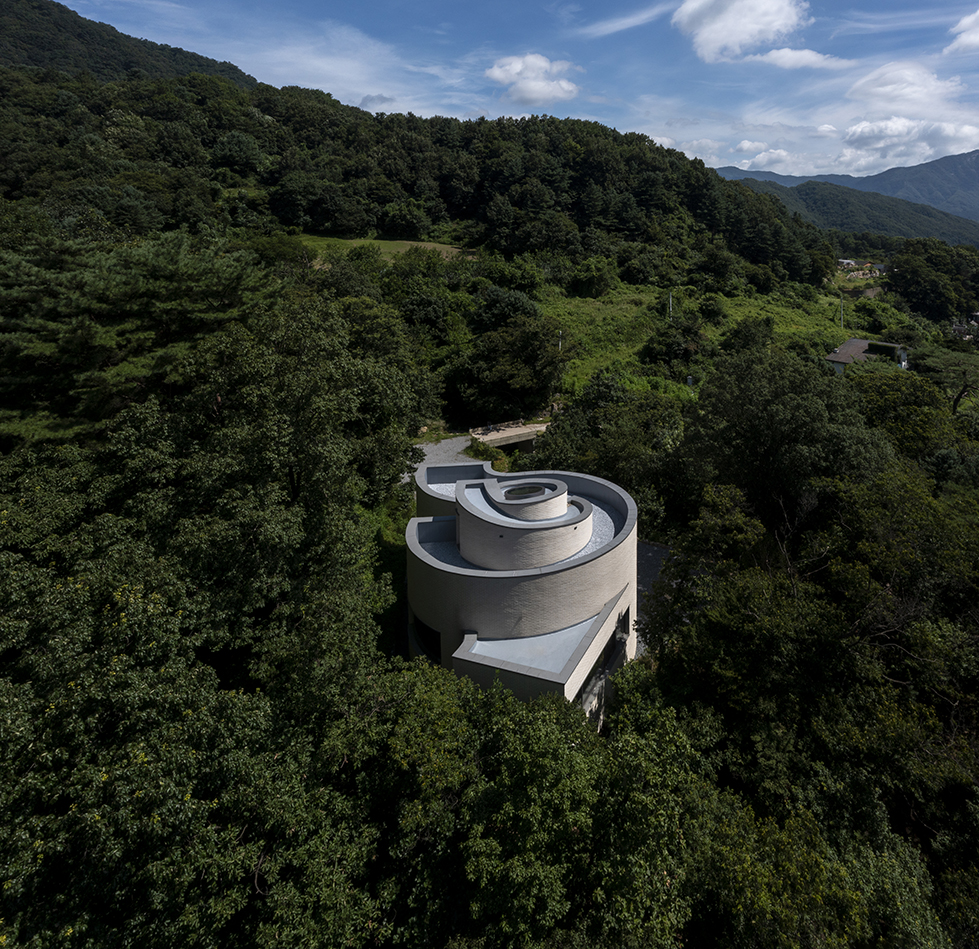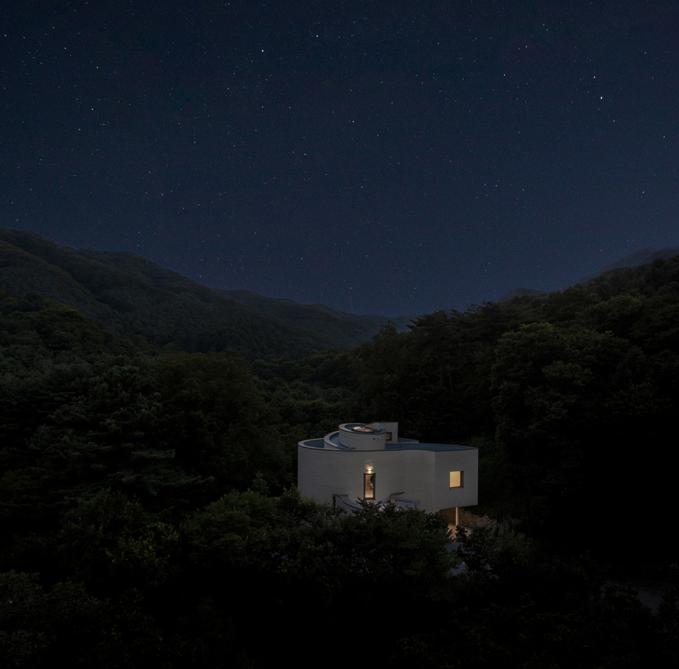 본격적으로 설계를 시작한 건 2020년이었다. 이 환경을 해치지 않을 건축물은 어떤 것일지 고민한 끝에 그것은 태초의 자연과 인간이 만나 만들었던 가장 원초적인 집의 형태일 거라는 생각에 도달했다. 그리고 에스키모의 이글루나 몽골의 게르에서 원초적 집의 형태로 원형인 집을 찾게 되었다. 중앙에 추위를 피할 수 있는 불이 있고 모든 가족이 동그랗게 모여 앉으면 위계가 없는 평등한 공간이자 기능으로 분할 되지 않고 다양한 행위를 담아내는 공간이 된다. 원은 가장 완벽한 기하학 형태이기도 하다. 그 형태는 처음 이곳에 와서 모든 방위의 자연과 빛을 담아내고 싶다는 욕심을 풀어주는 열쇠이기도 했다. 원형의 공간은 특정 방향으로 열리지 않고 모든 방위에 공평하게 받아들여 주는 형태이다.