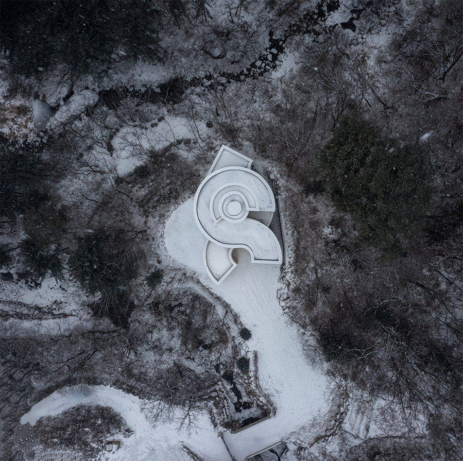 건축물이 땅에 자리 잡으면 처음엔 어색하다. 아직 환경의 일부가 되지 못했기 때문이다. 시간이 가고 낙엽도 쌓이고 덩굴도 올라오고 하면 비로소 땅에 자리 잡기 시작한다. 시간이 많이 흐르면 이곳에 원래 있던 커다란 바위처럼 보이리라 상상했다. 세월의 흔적을 담아내기 위해서는 자연에 가까운 재료를 사용하고 싶었기에, 그 외피는 흙으로 만든 벽돌을 사용했다. 베이지색의 벽돌은 시간이 가면 주변의 색들에 물들어 자연의 일부가 될 것이다.
