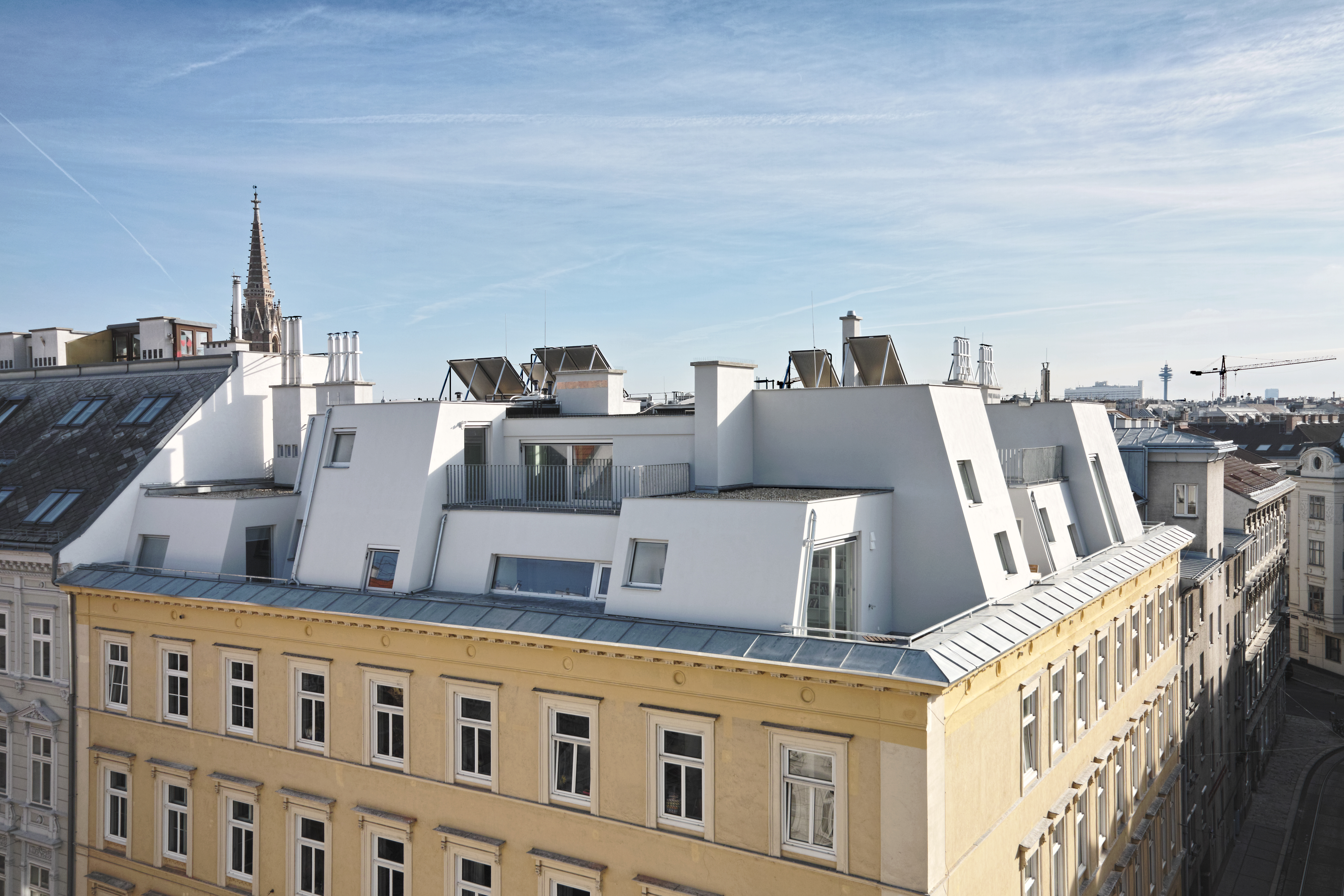 이 프로젝트는 도시의 밀도를 높이면서도 높은 주거성을 유지한 사례이다. 건물주의 아들을 중심으로 한 건축 공동체가, 빈의 19세기 후반 그룬더차이트(Gründerzeit) 양식 건물의 다락층을 새로운 주거 공간으로 전환했다. 거리에서는 거의 보이지 않지만, 지상 16m 높이에서 펼쳐지는 이 독특한 세계는 도시 전경을 한눈에 조망할 수 있다.